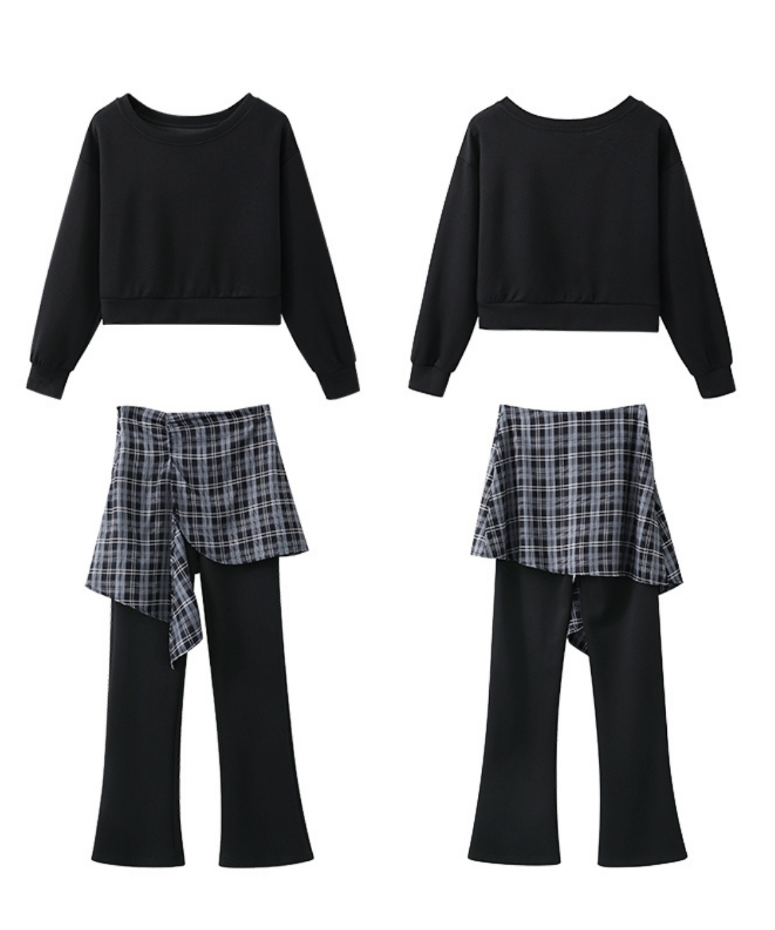 オフショルダートップス+チェックレイヤードパンツ 2点セット