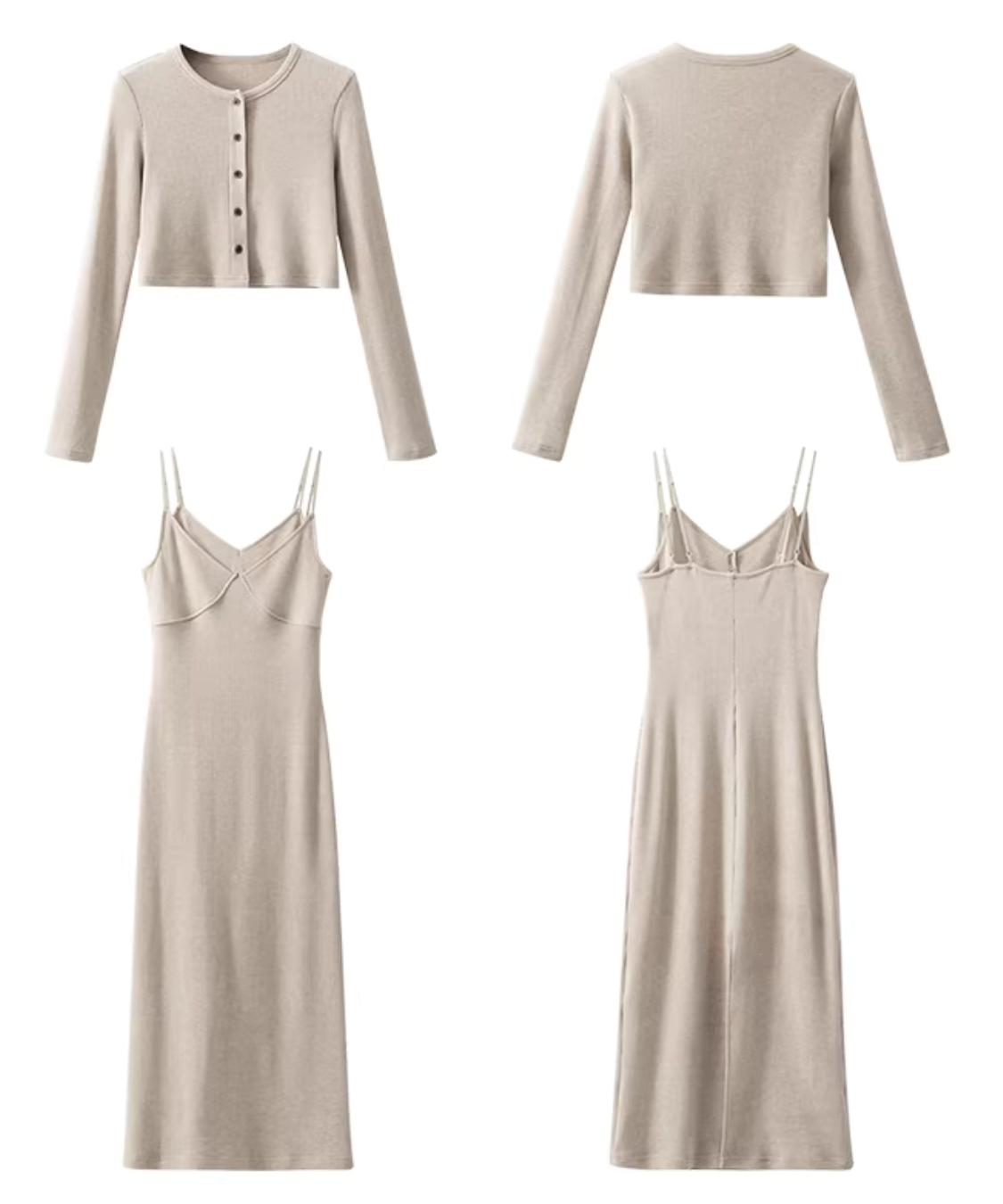 ニットキャミワンピース+ショートカーディガン 2点セット