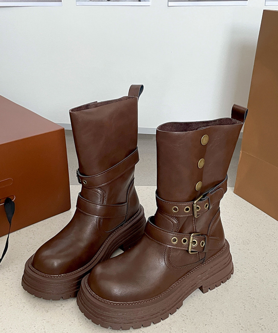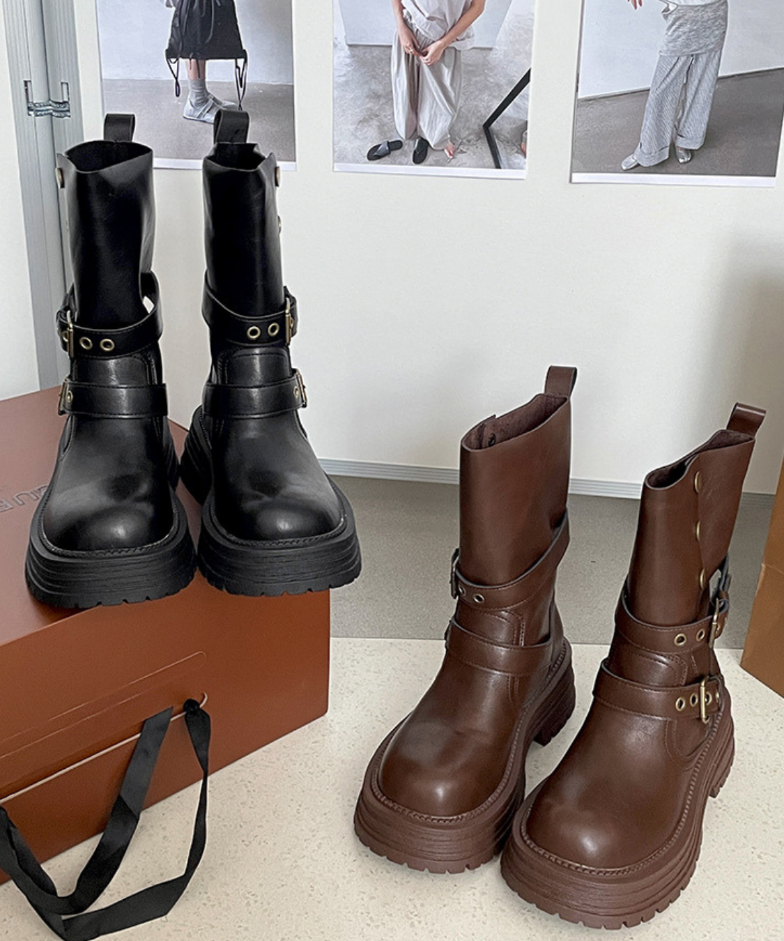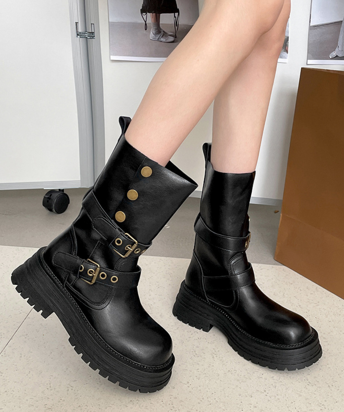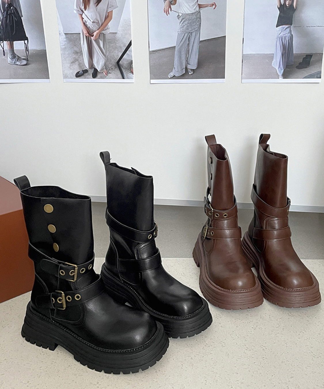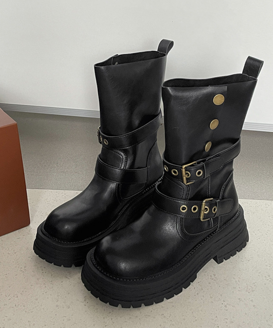 厚底なのに安定感バツグンで、脚長効果も◎ゴールドのボタンがアクセントになって超可愛い!
