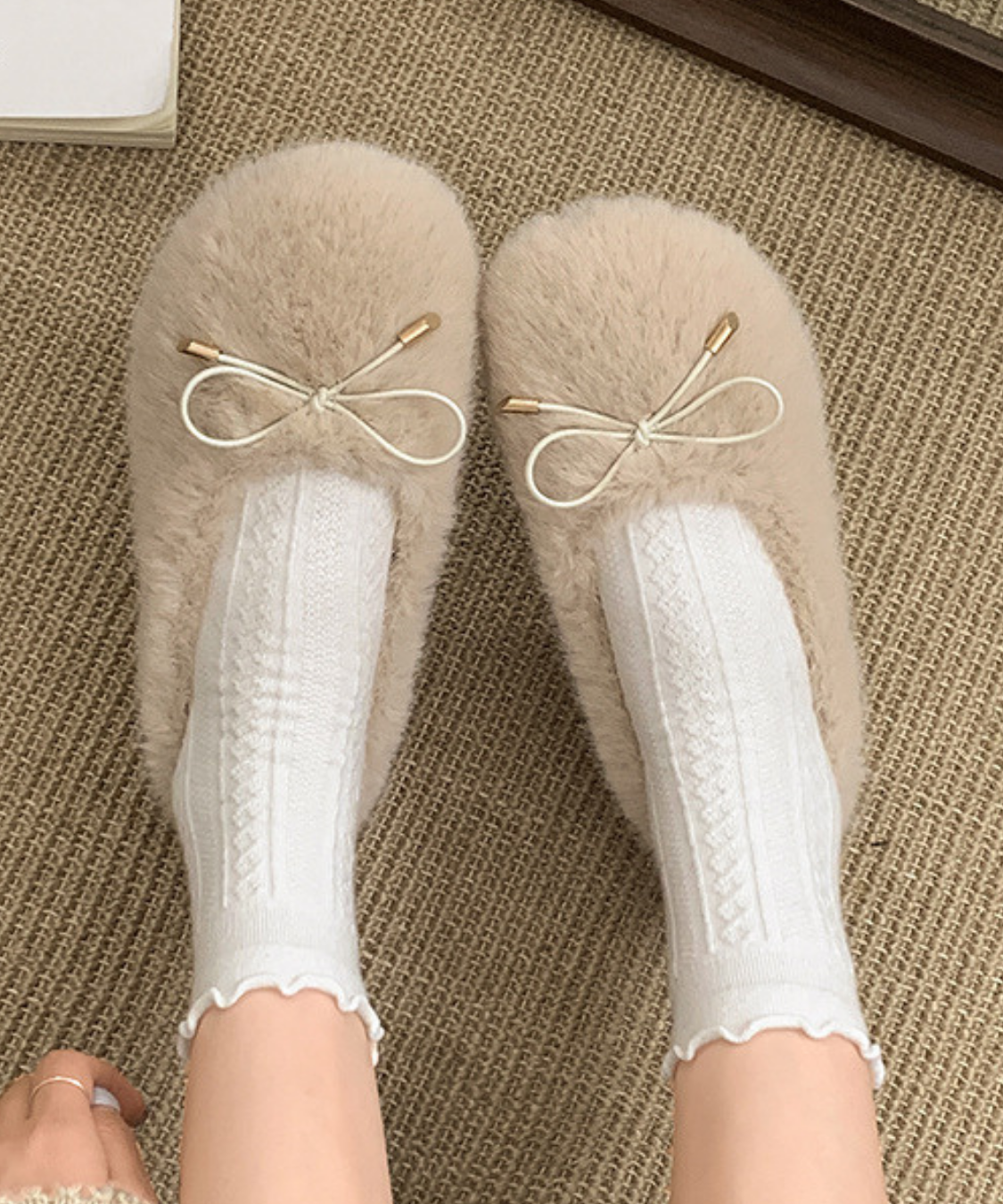 見た目も履き心地もふわっふわ!リボンのさりげなさが上品で、足元から女の子っぽさ出せます🎀