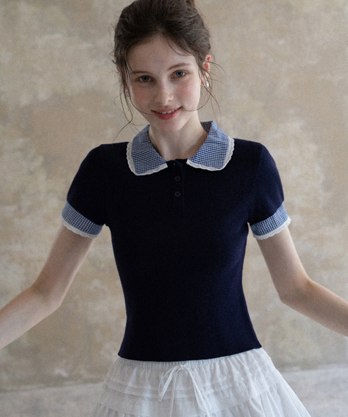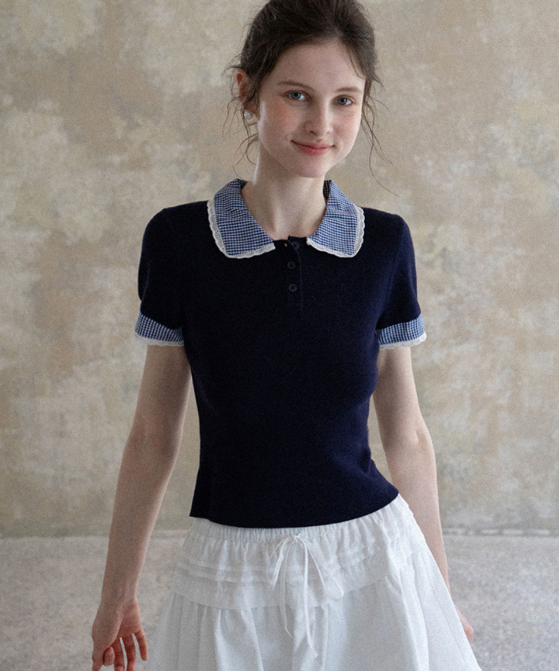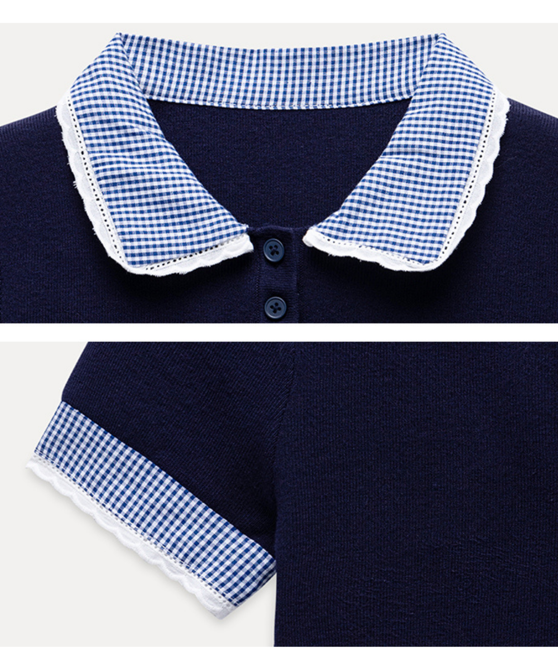 襟と袖のチェックがアクセントになってて、一枚でおしゃれに決まる!フィット感も◎でスタイル良く見えます