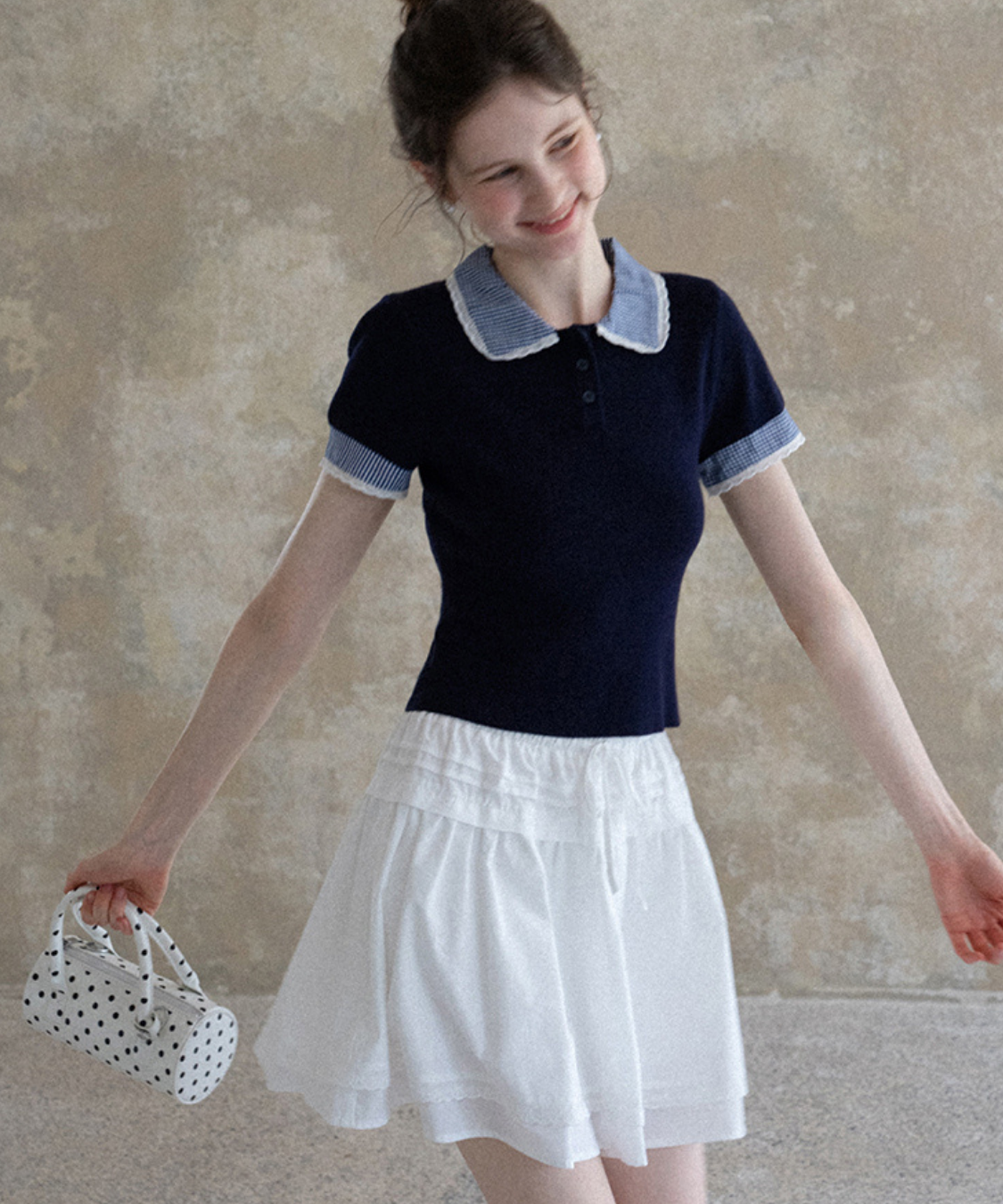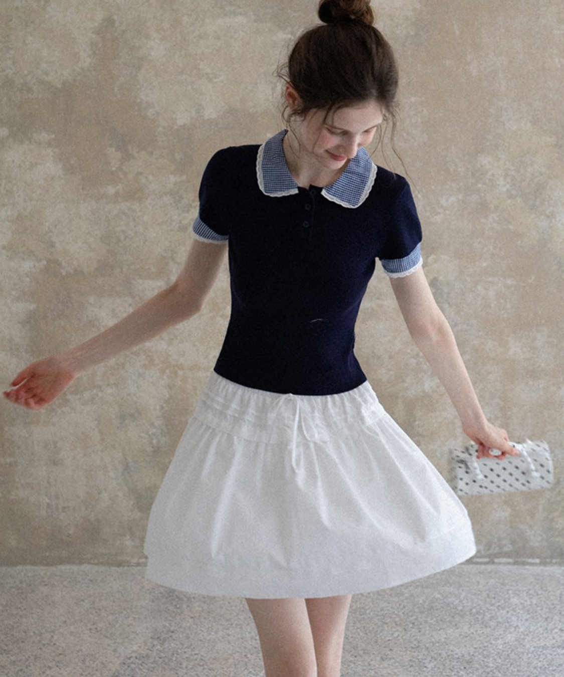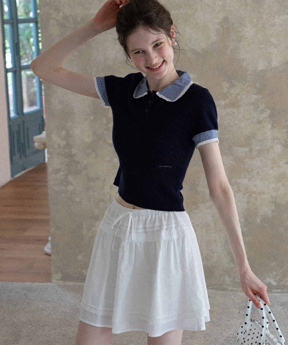 襟と袖のチェックがアクセントになってて、一枚でおしゃれに決まる!フィット感も◎でスタイル良く見えます