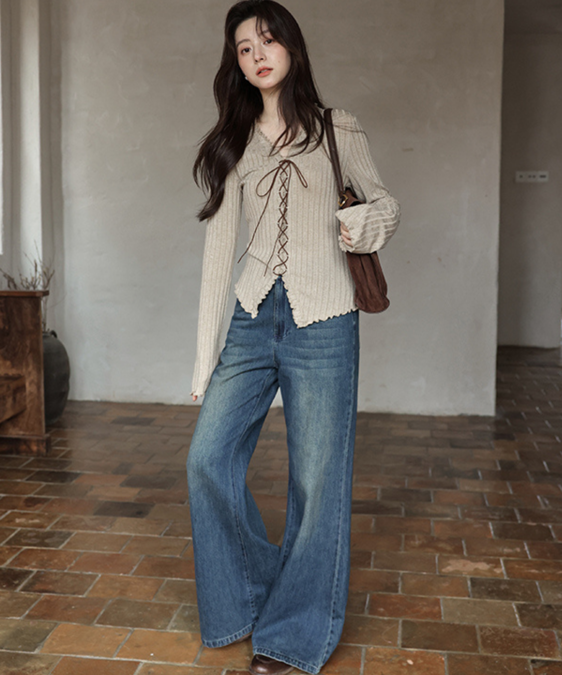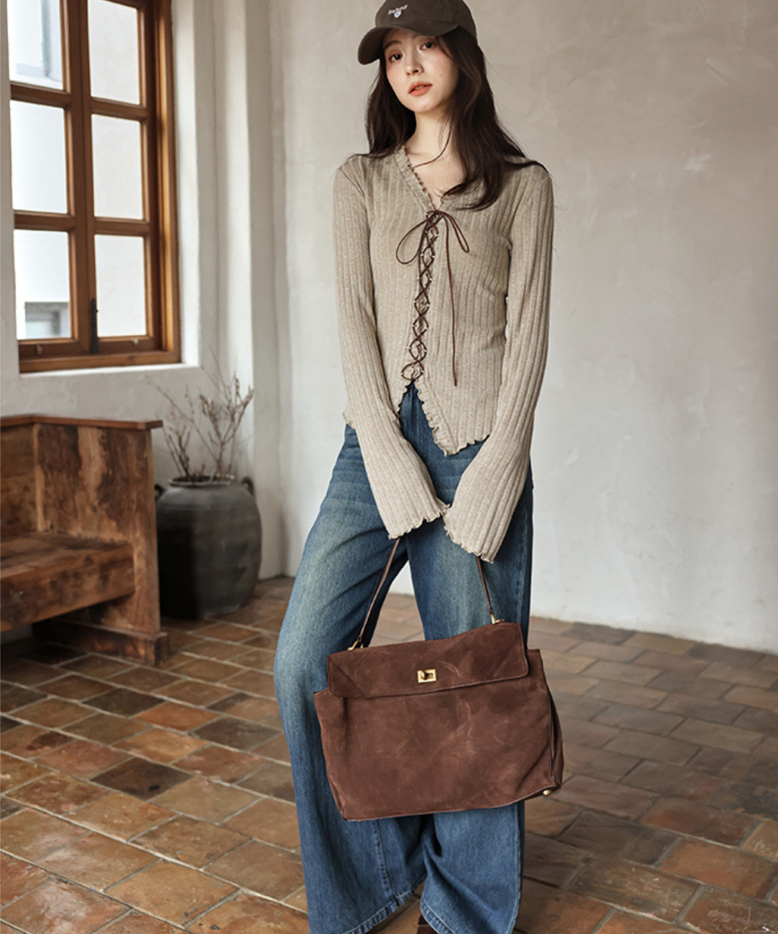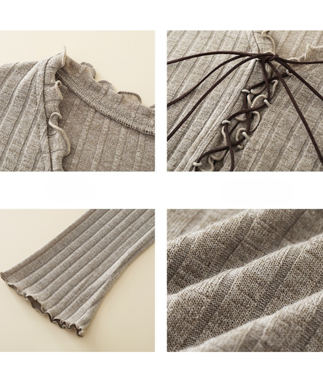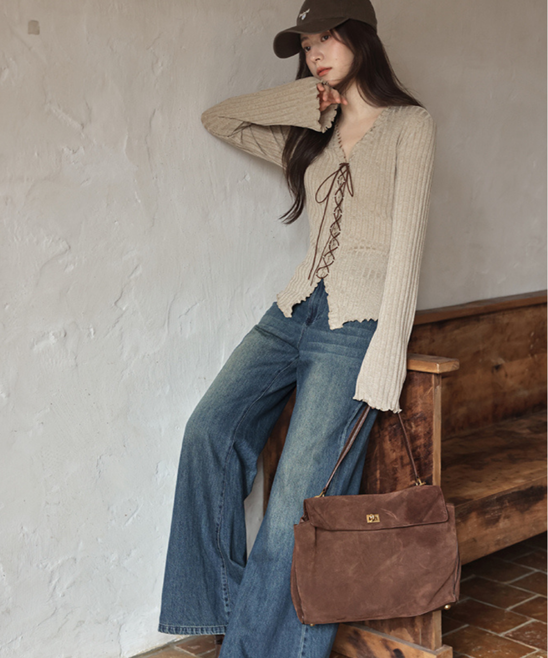 レースアップデザインが視線を引く、フェミニンムード漂うリブカットソーです。