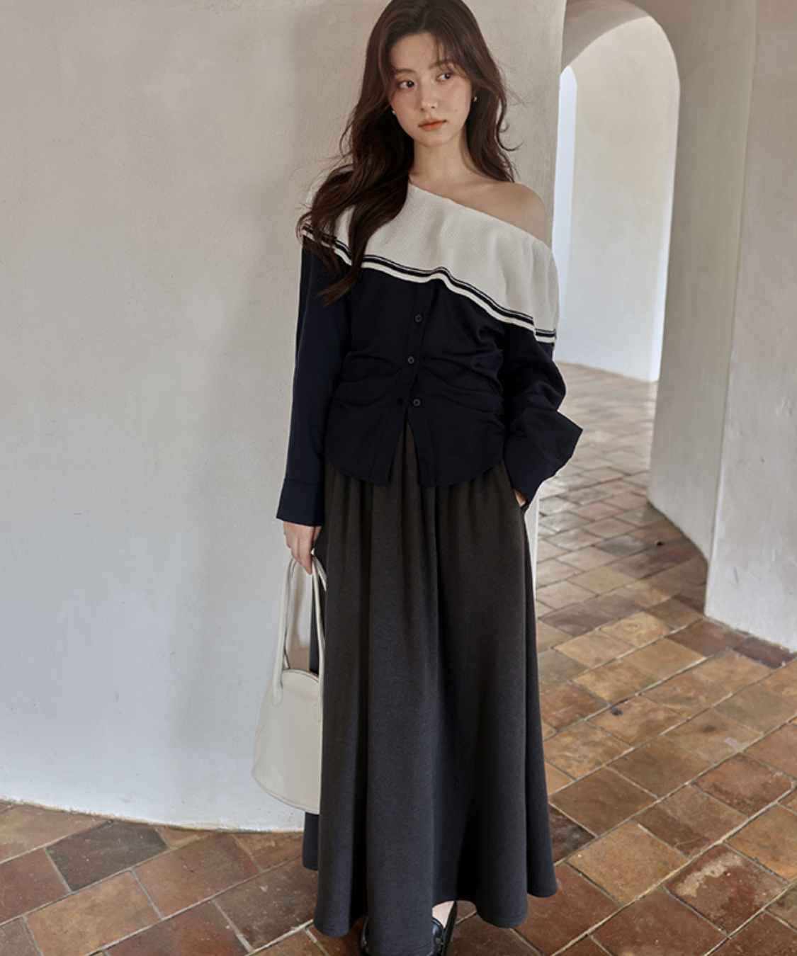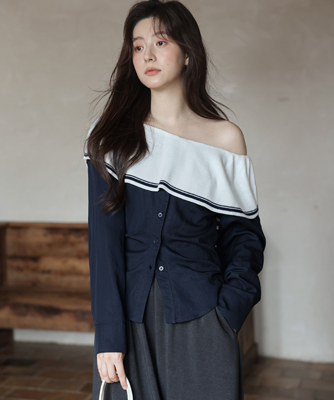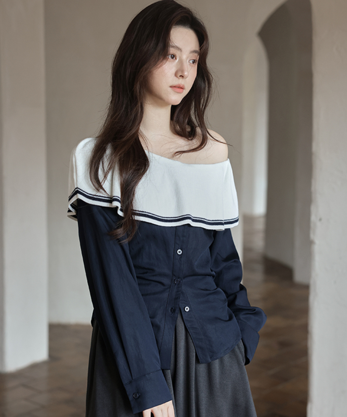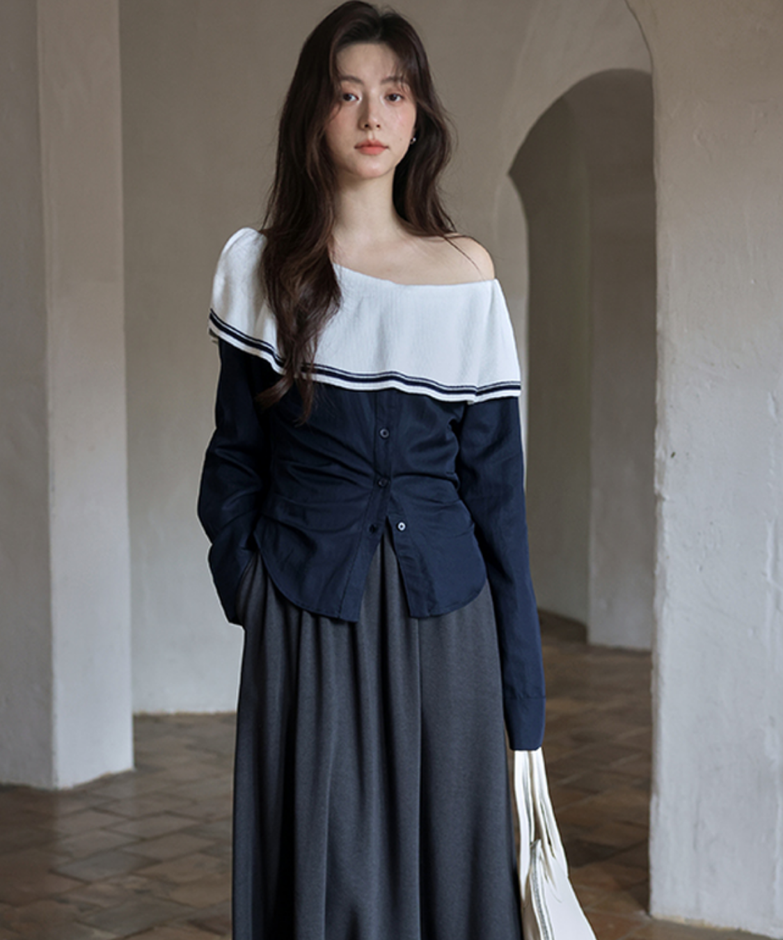 セーラーカラー風のラウンドヨークが華やかなアクセント♡