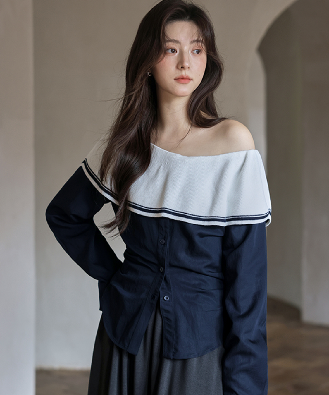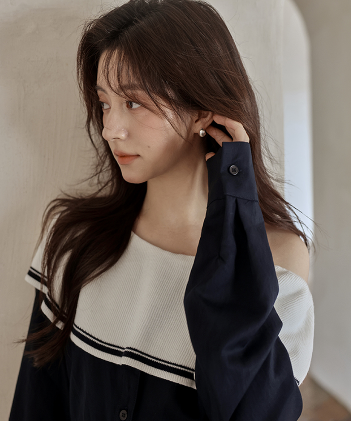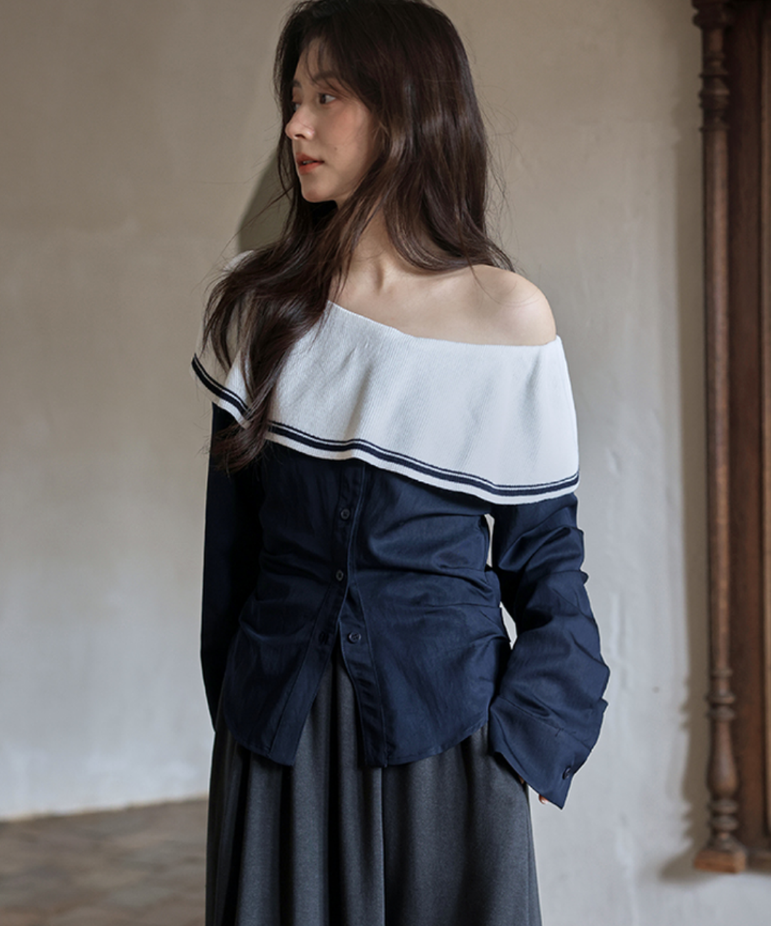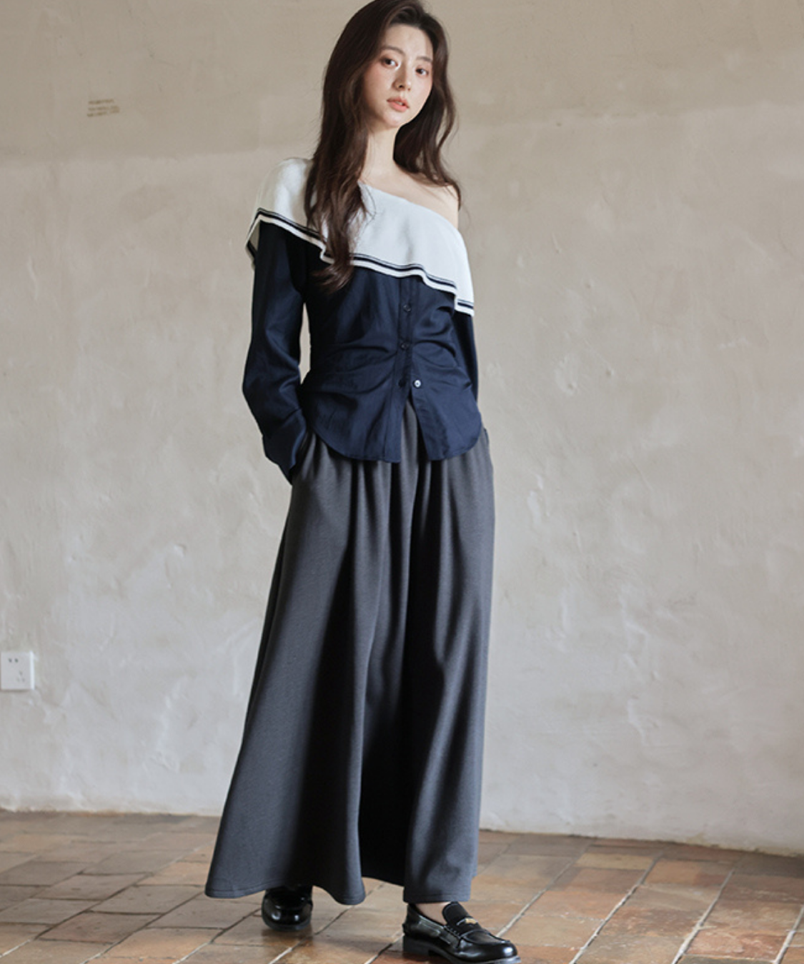 セーラーカラー風のラウンドヨークが華やかなアクセント♡