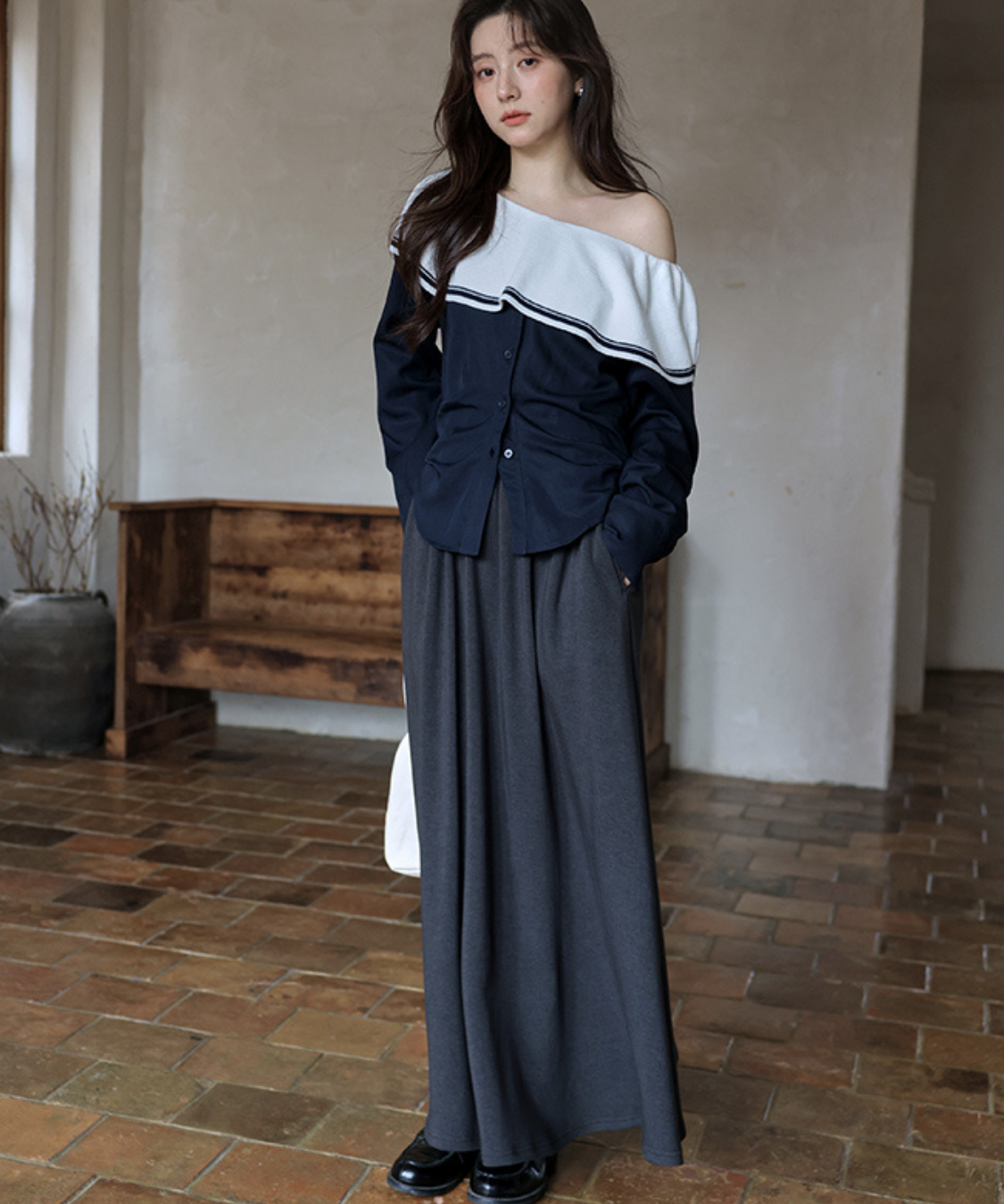 シンプルなボトムと合わせるだけで、女性らしい抜け感スタイルが完成します◎