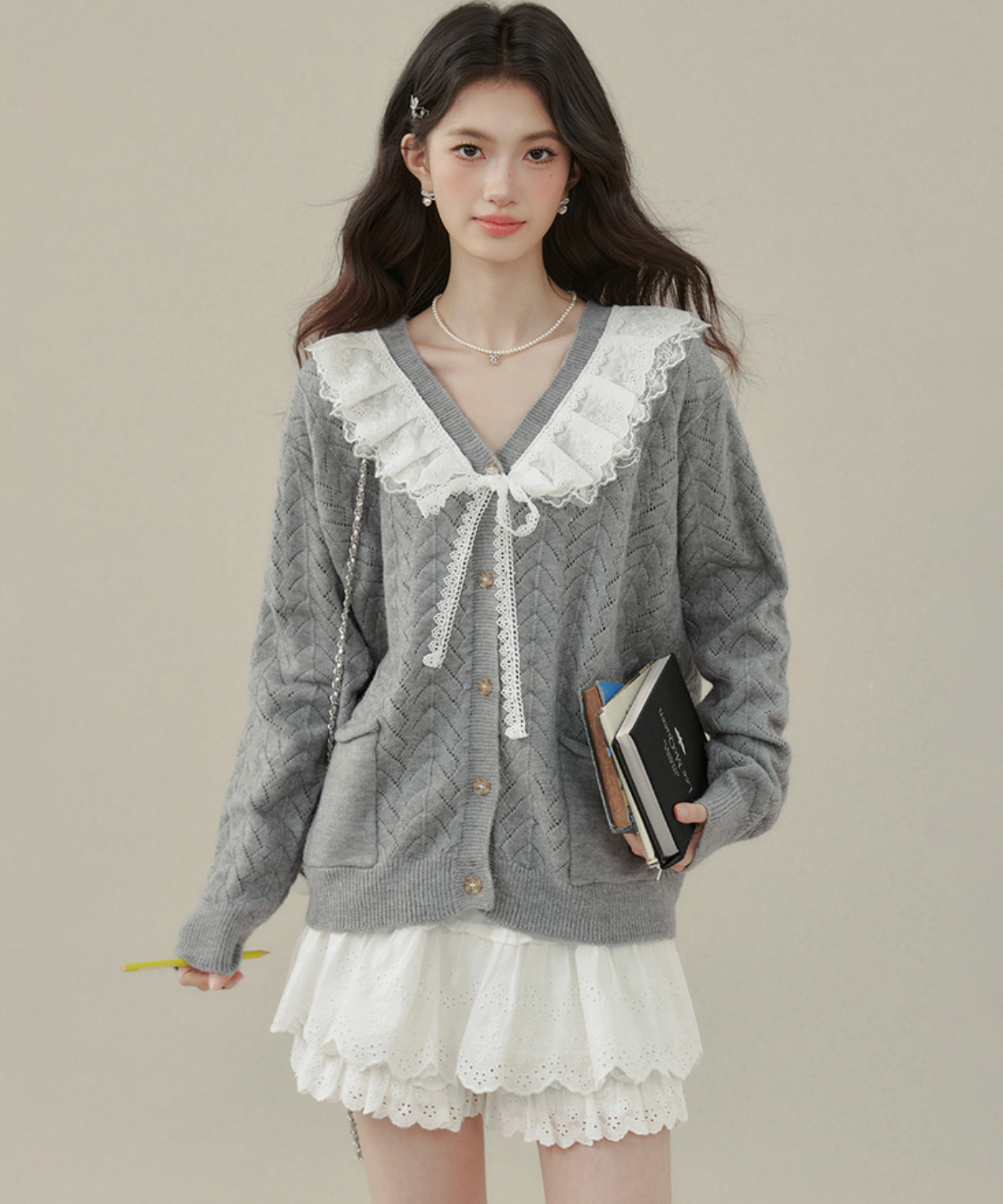 フリルもリボンも盛れて最高✨シンプルなコーデに羽織るだけで華やかになるから、忙しい朝にも助かってます!