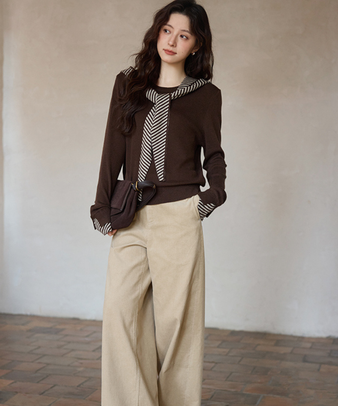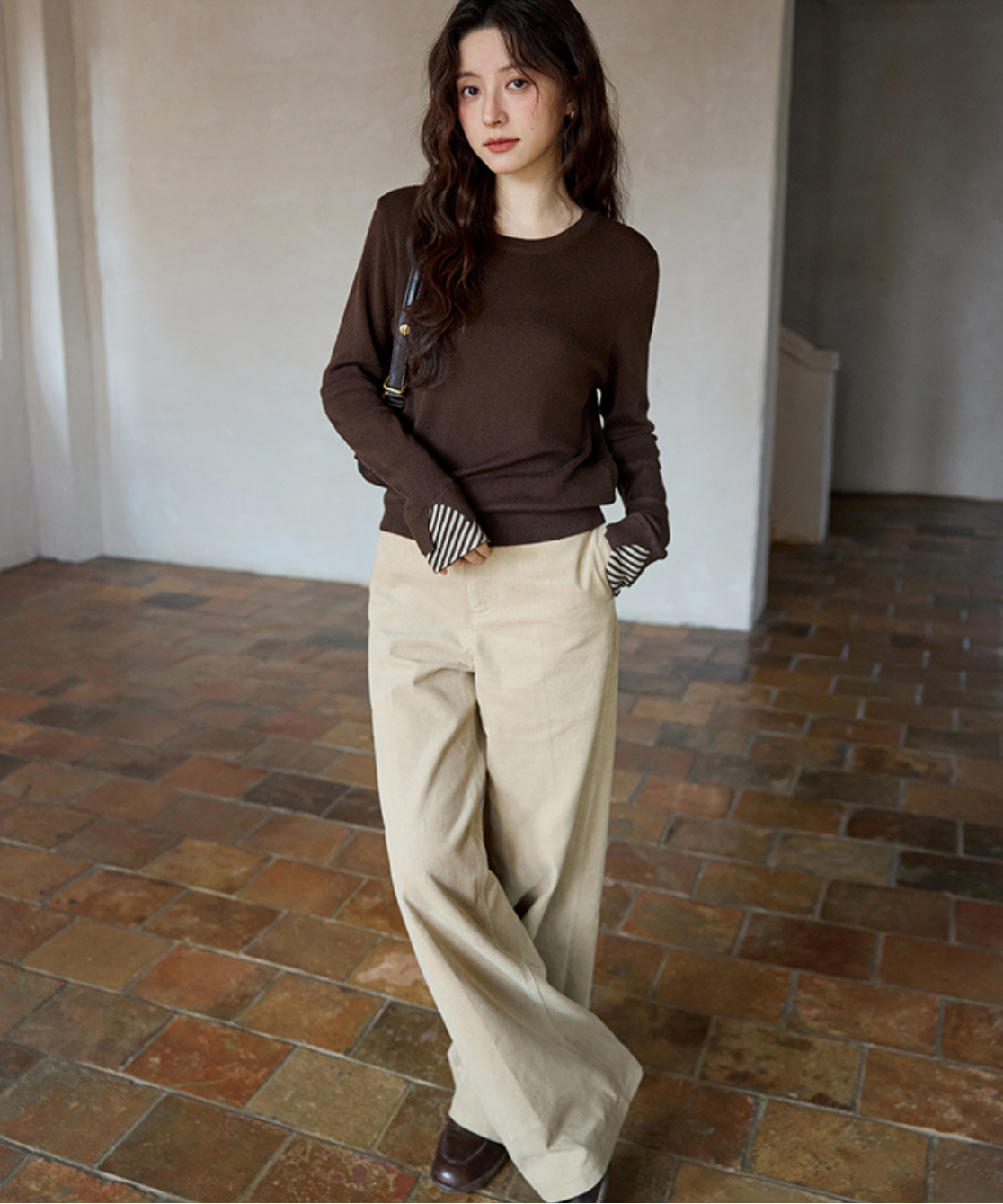 ボーダー柄がアクセントになり、シンプルながら着映えするスタイリングに♡