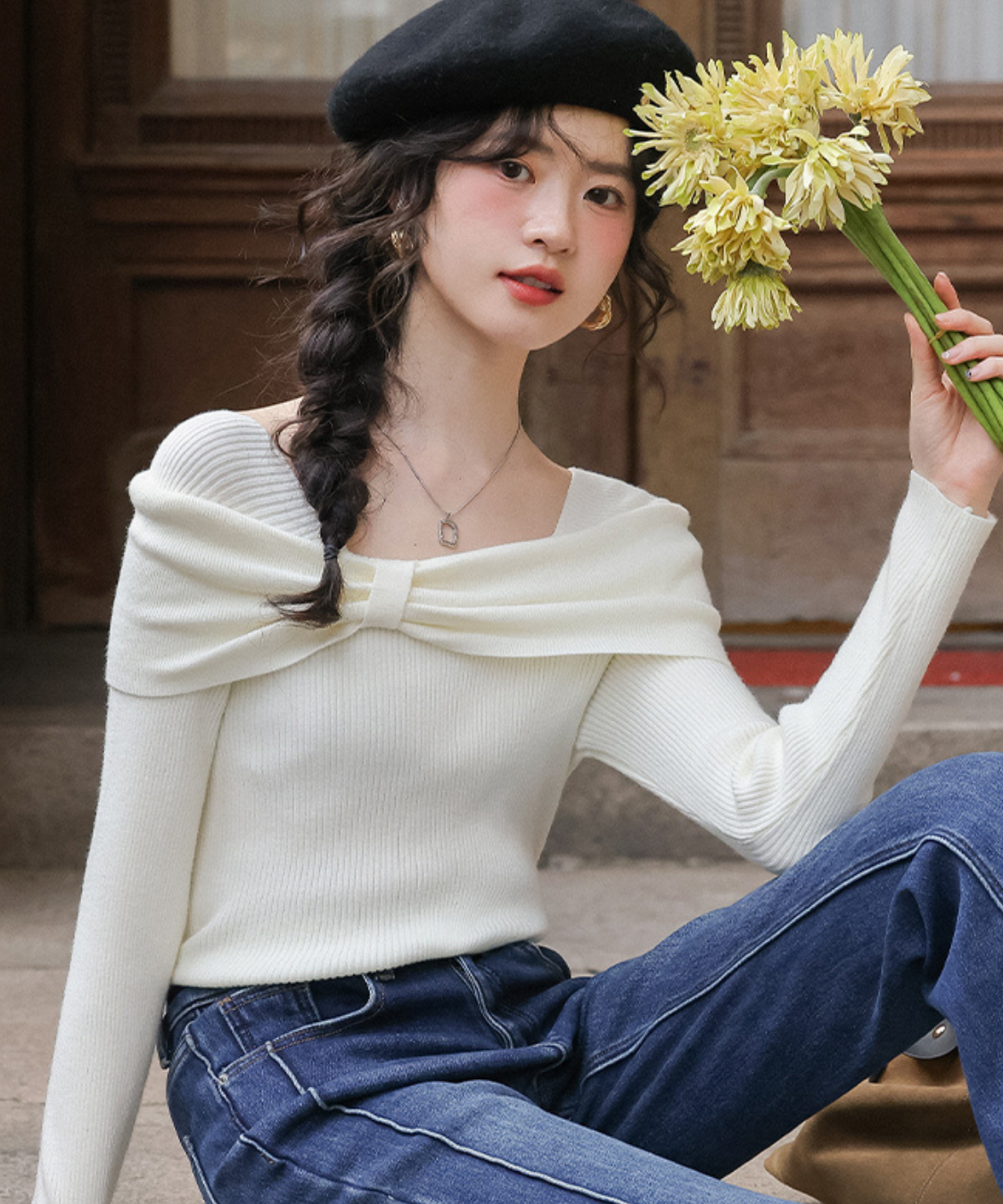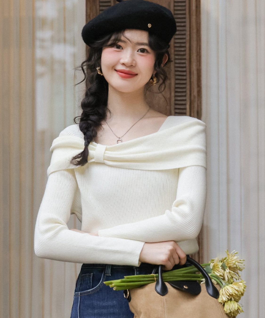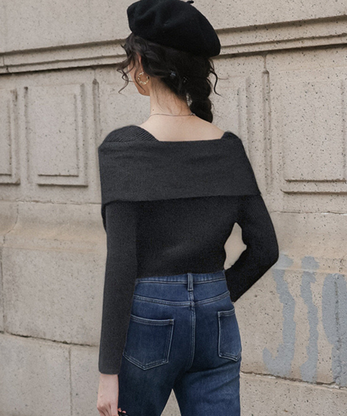 デコルテを美しく見せてくれるオフショルデザインのリブトップスです。