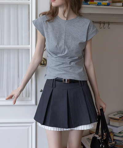 レイヤードとプリーツが絶妙に可愛くて、ベルトでウエストもスッキリ見える!