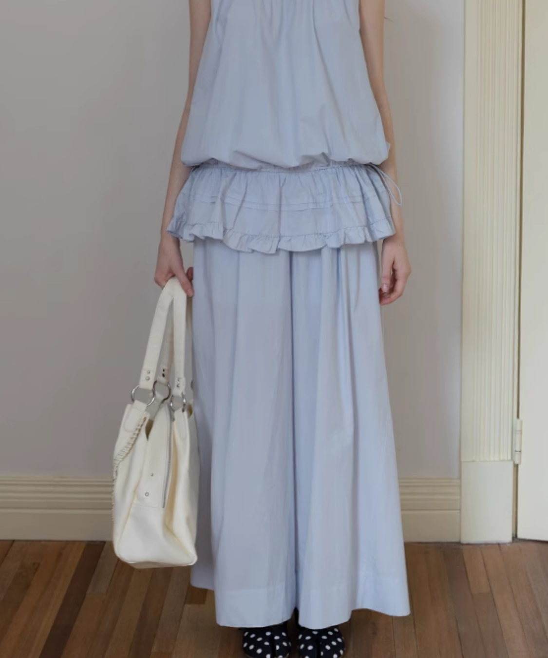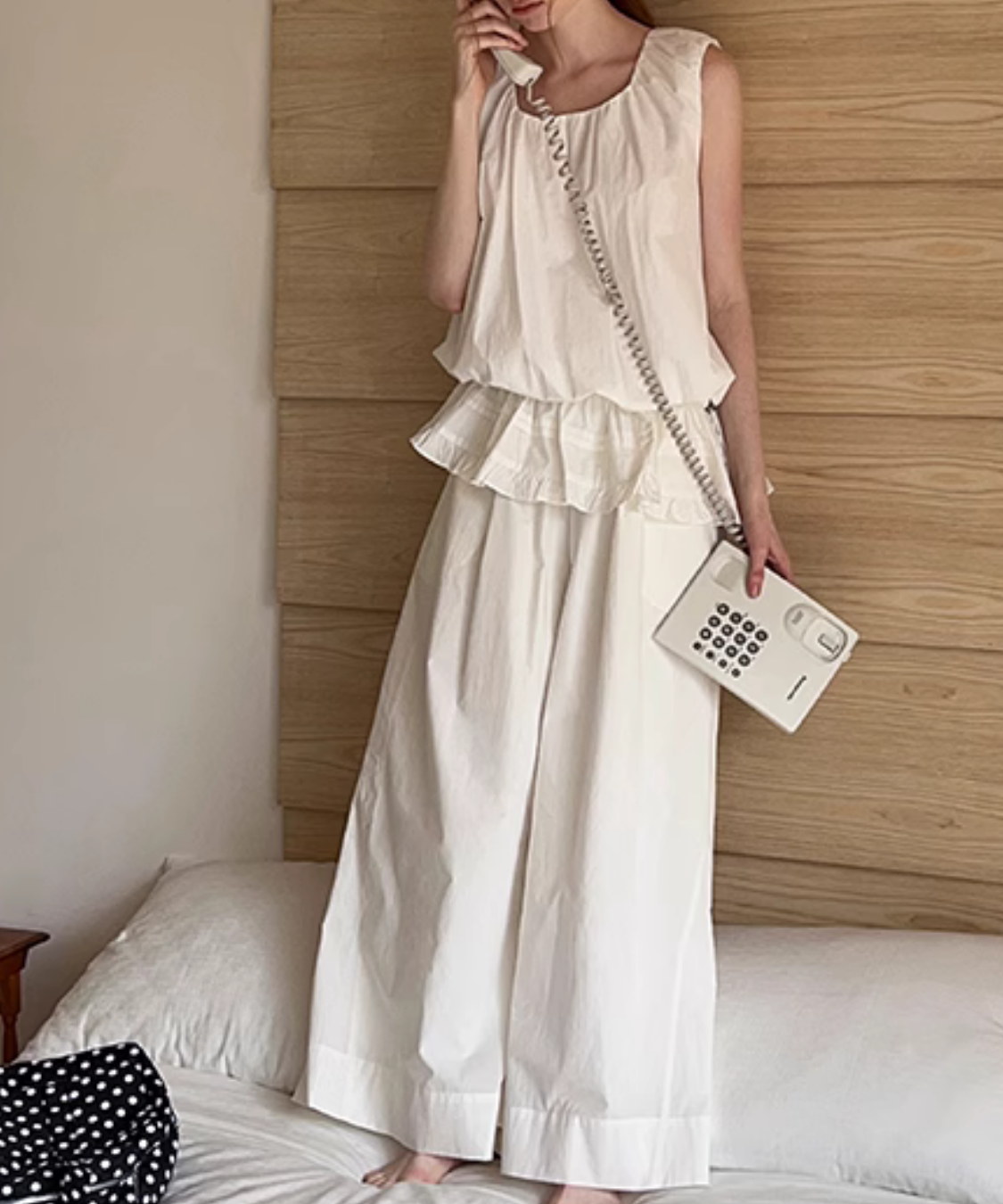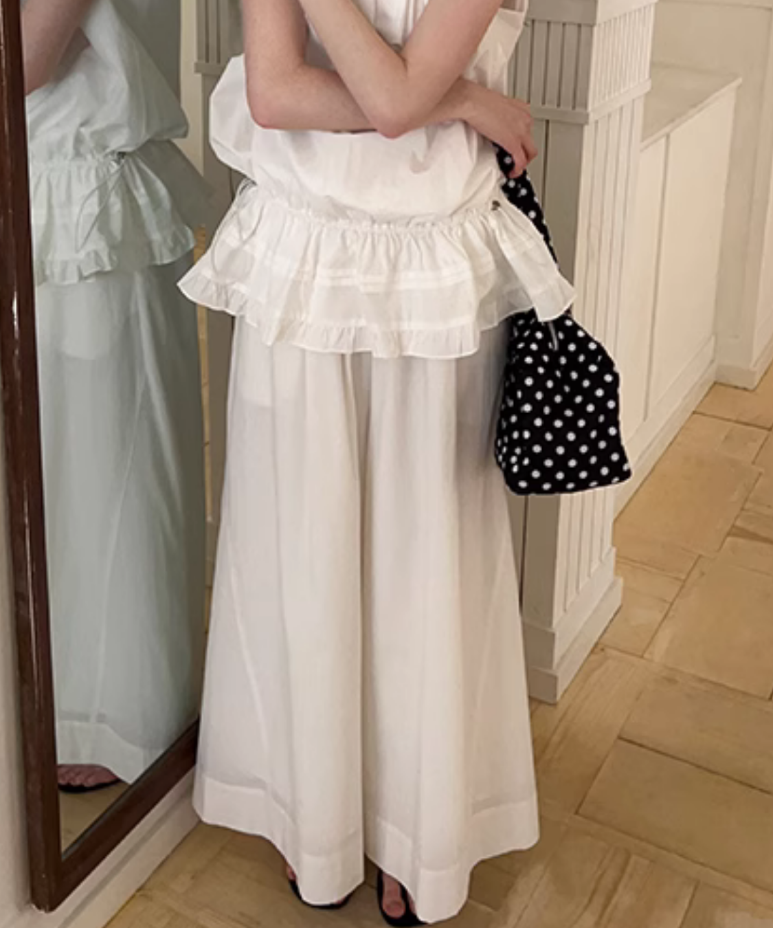 裾切り替えワイドストレートパンツ(セットアップ可)