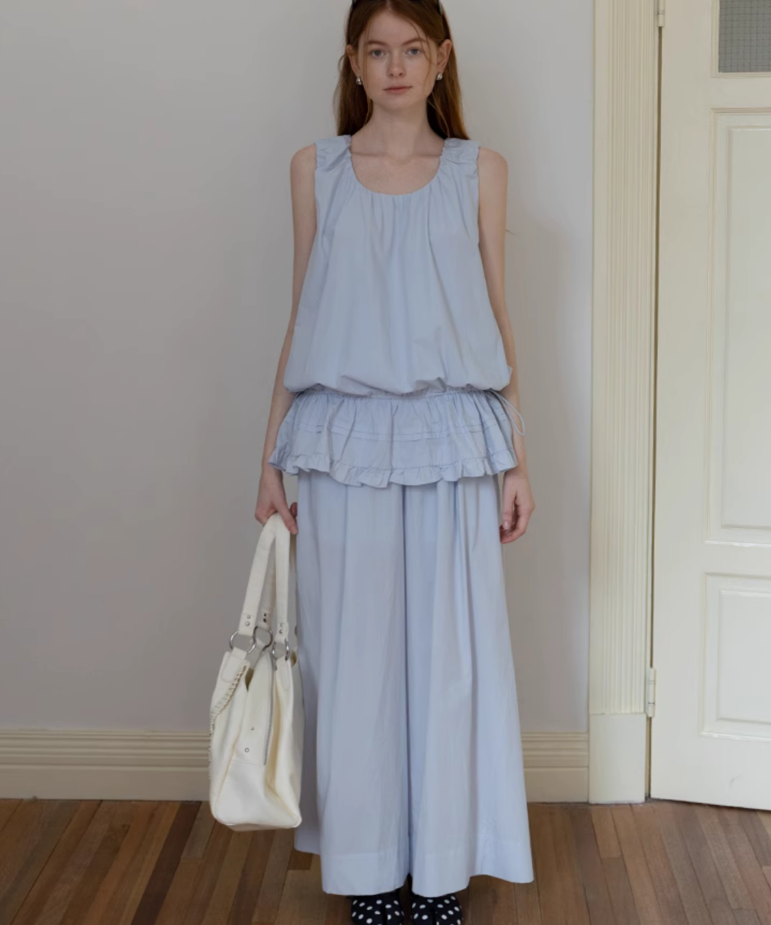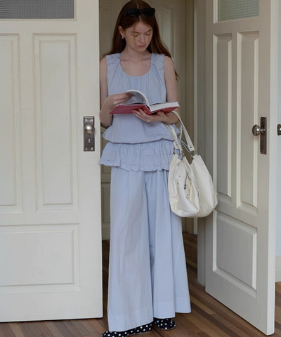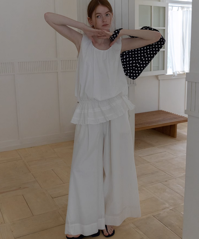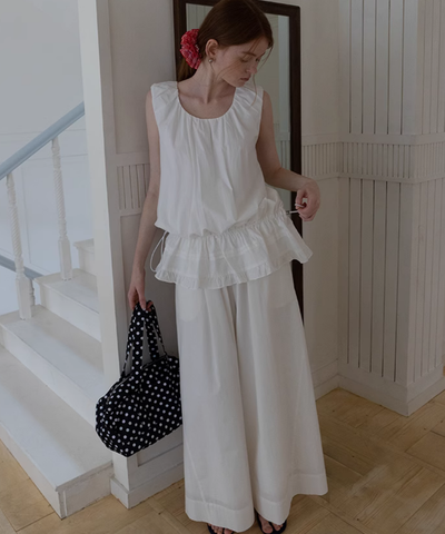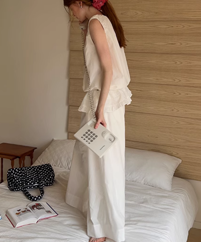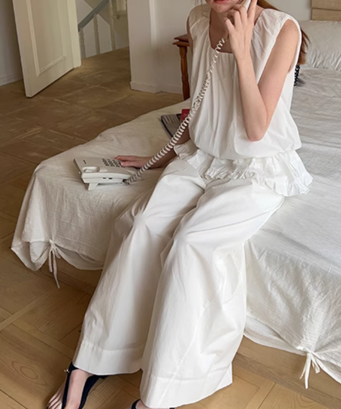 裾切り替えワイドストレートパンツ(セットアップ可)