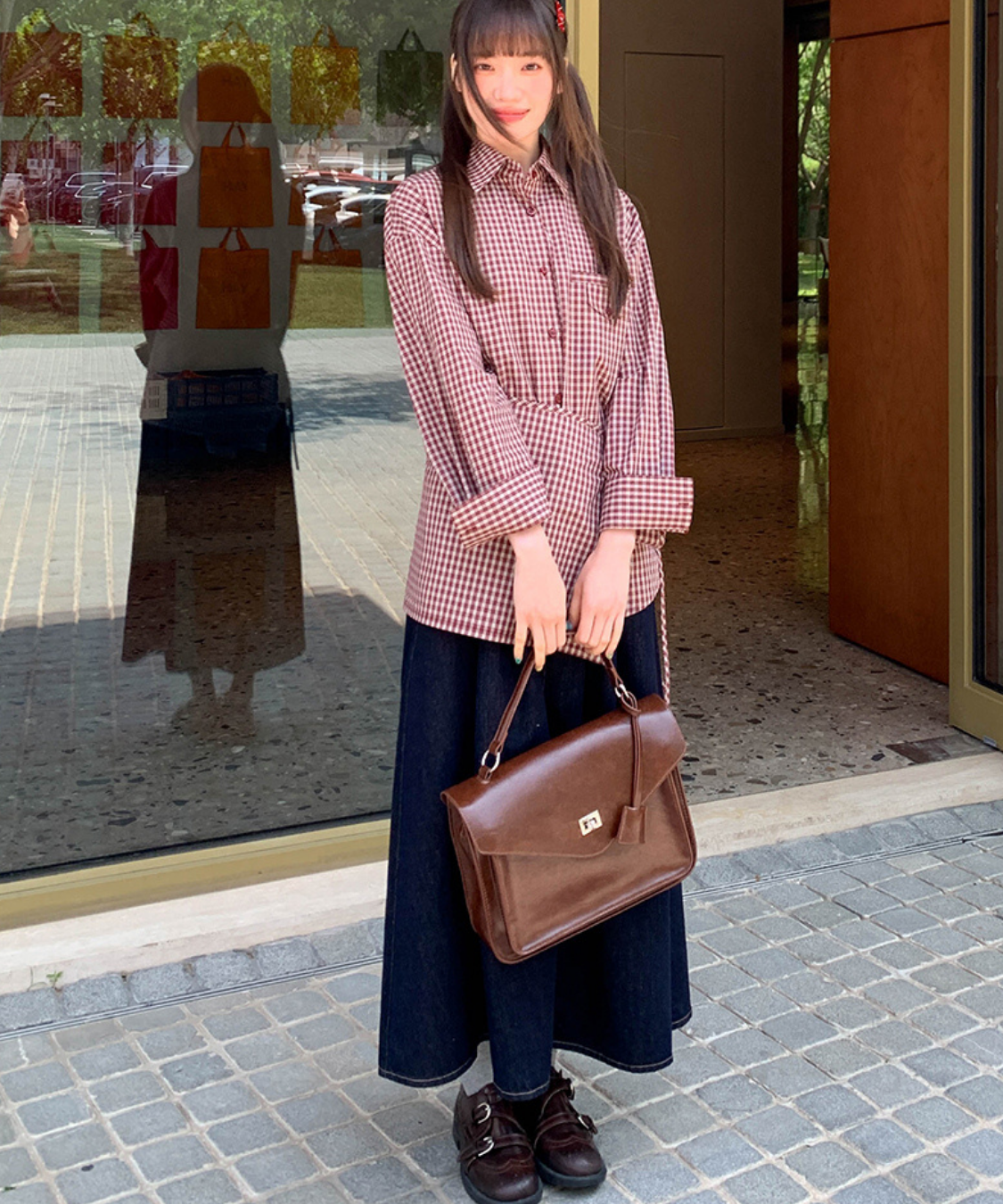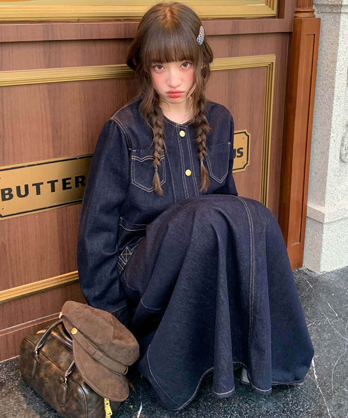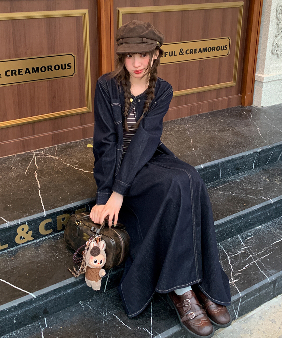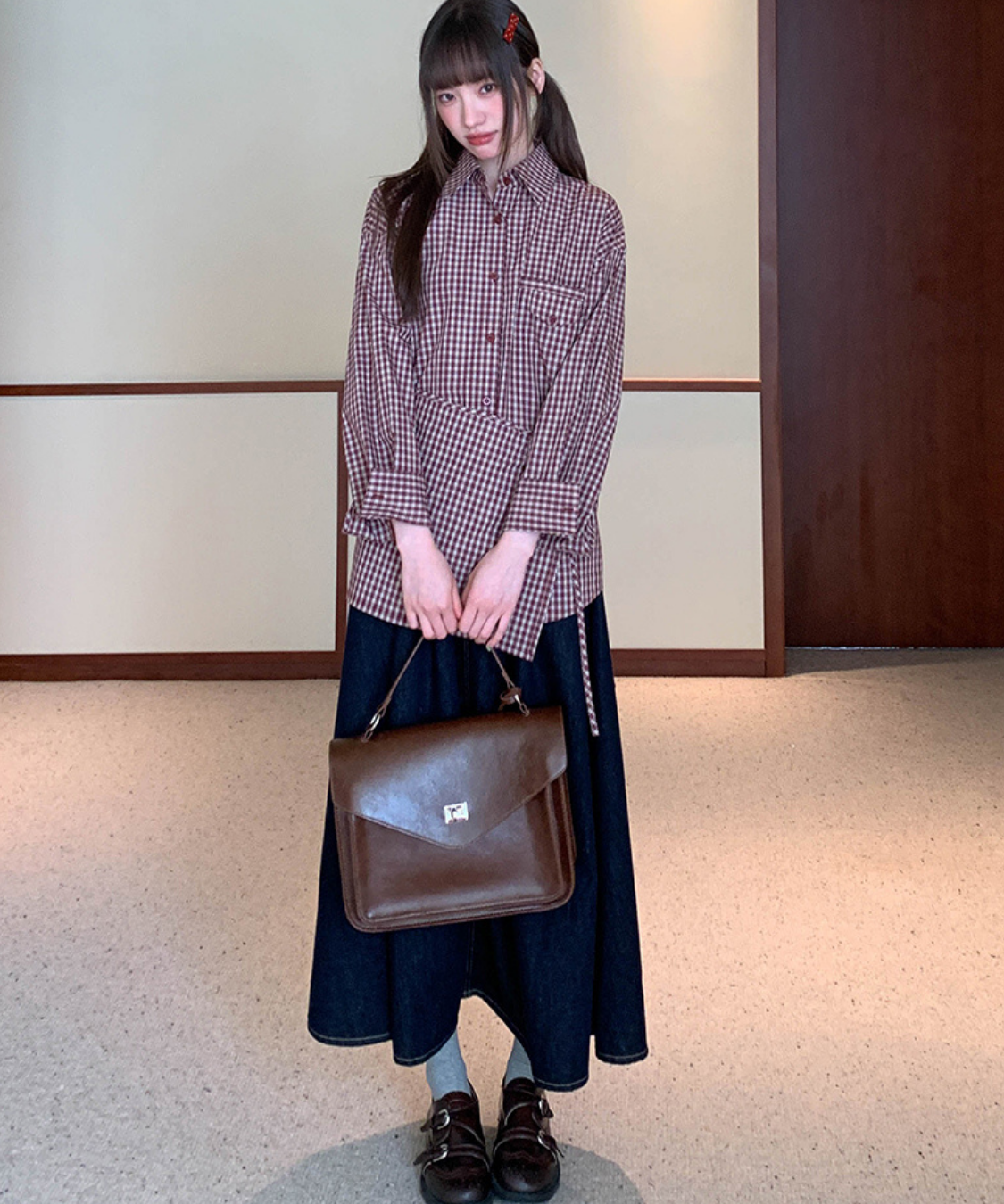 ステッチデザインAラインデニムスカート(セットアップ可)