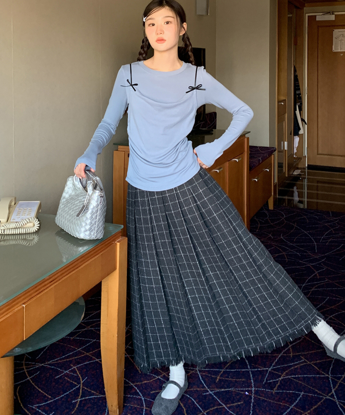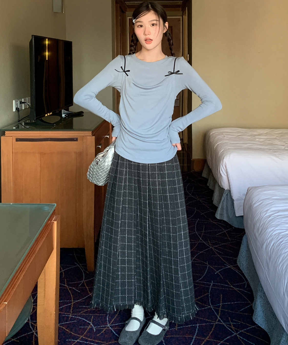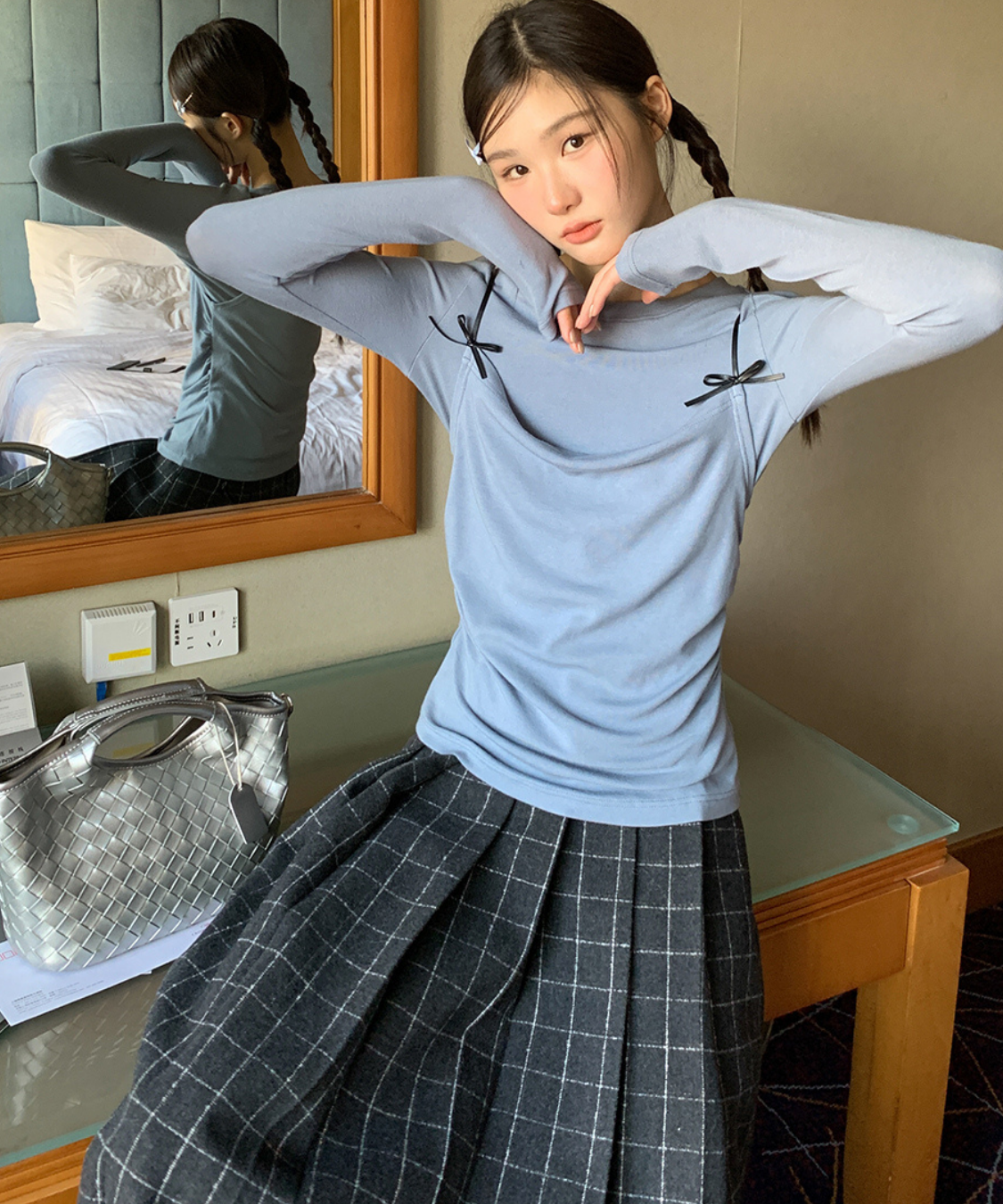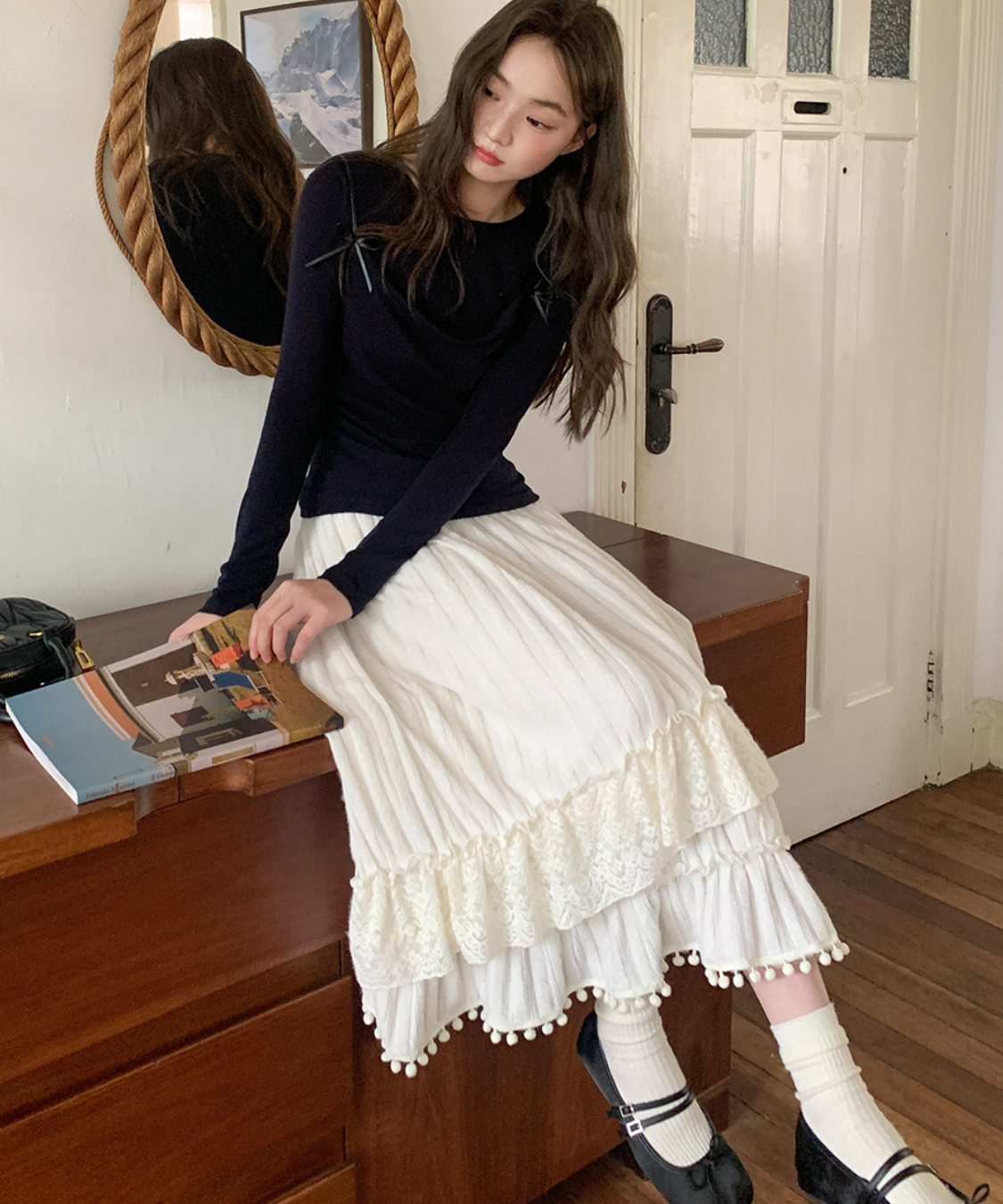 肩リボンが可愛いキャミ風トップスと、シンプルなカットソーのレイヤードセットです。