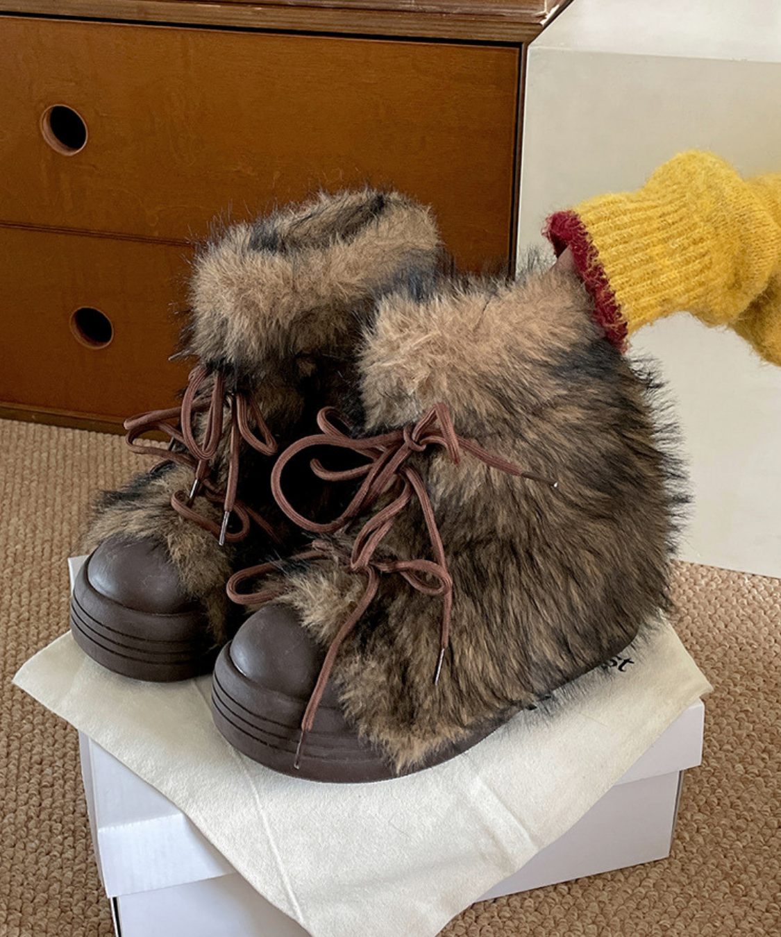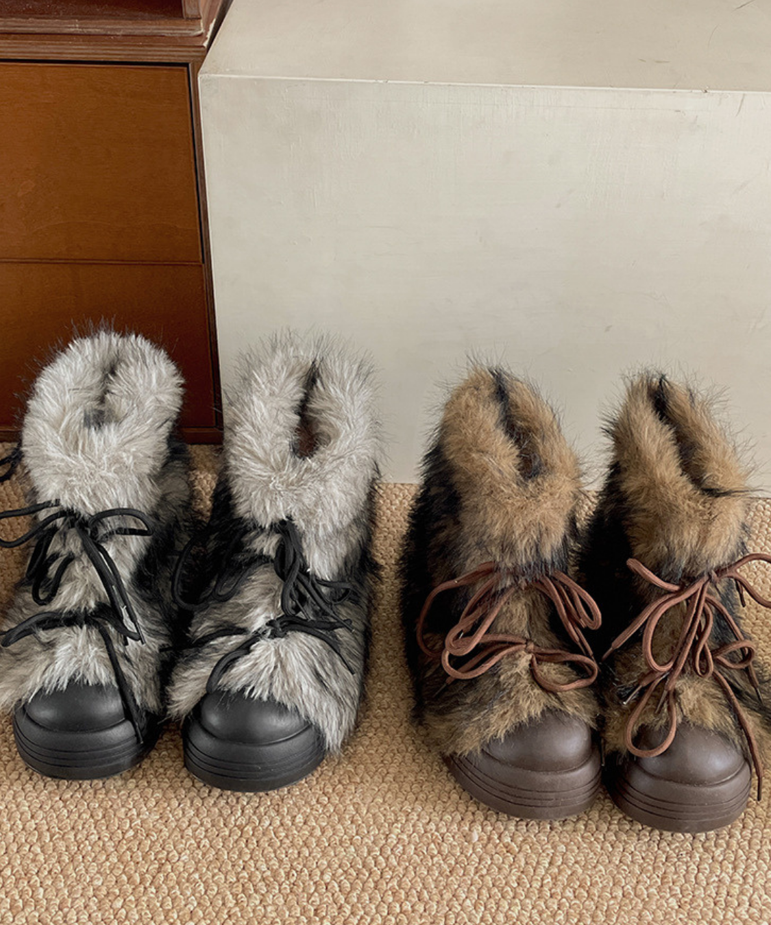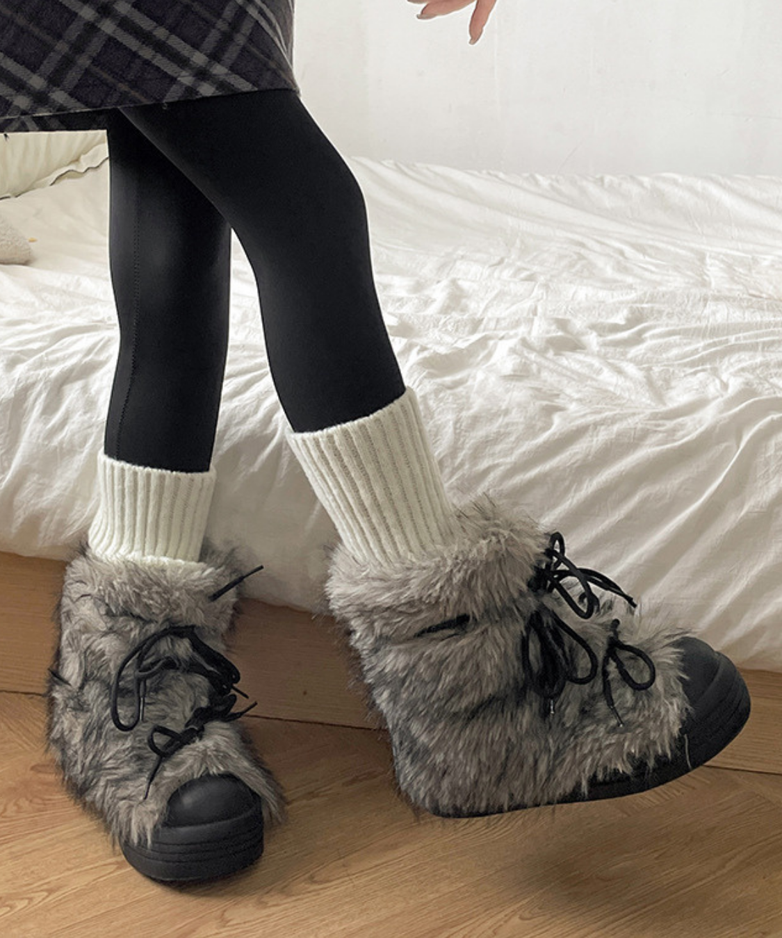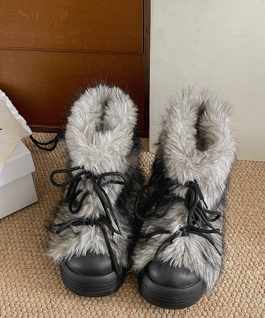 フェイクファーレースアップ厚底ショートブーツ
