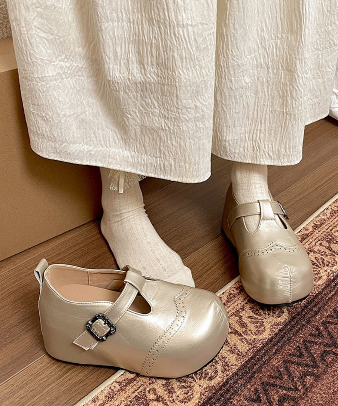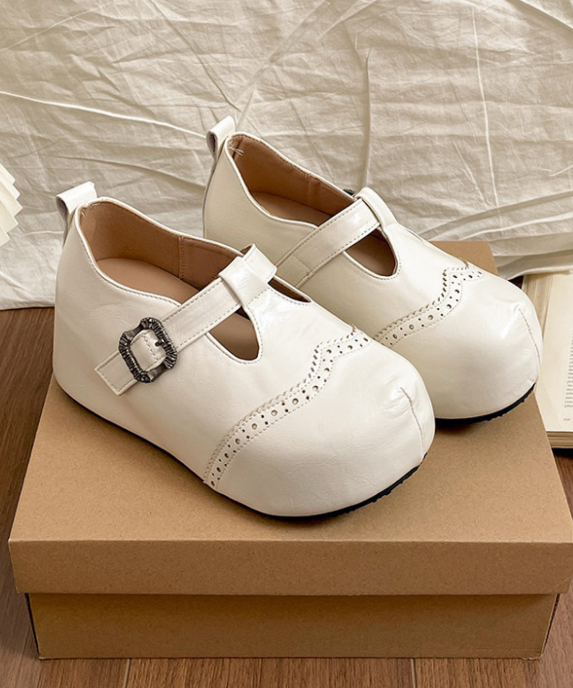 ころんと丸いフォルムにパンチングが映える、ガーリーな厚底シューズです。