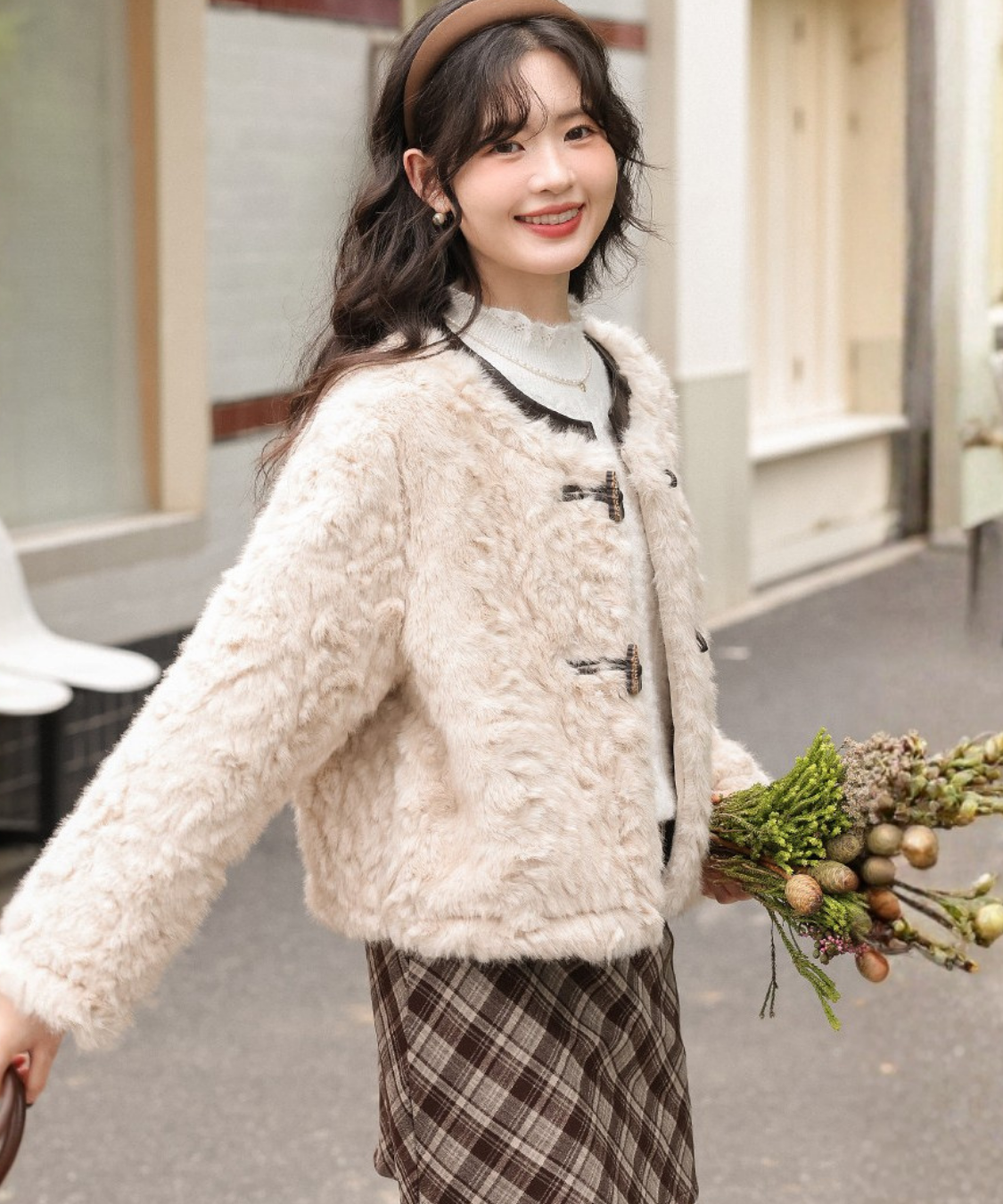 厳選したフェイクボア素材を使用し、ゆったりとしたシルエットで肌あたりも快適♡