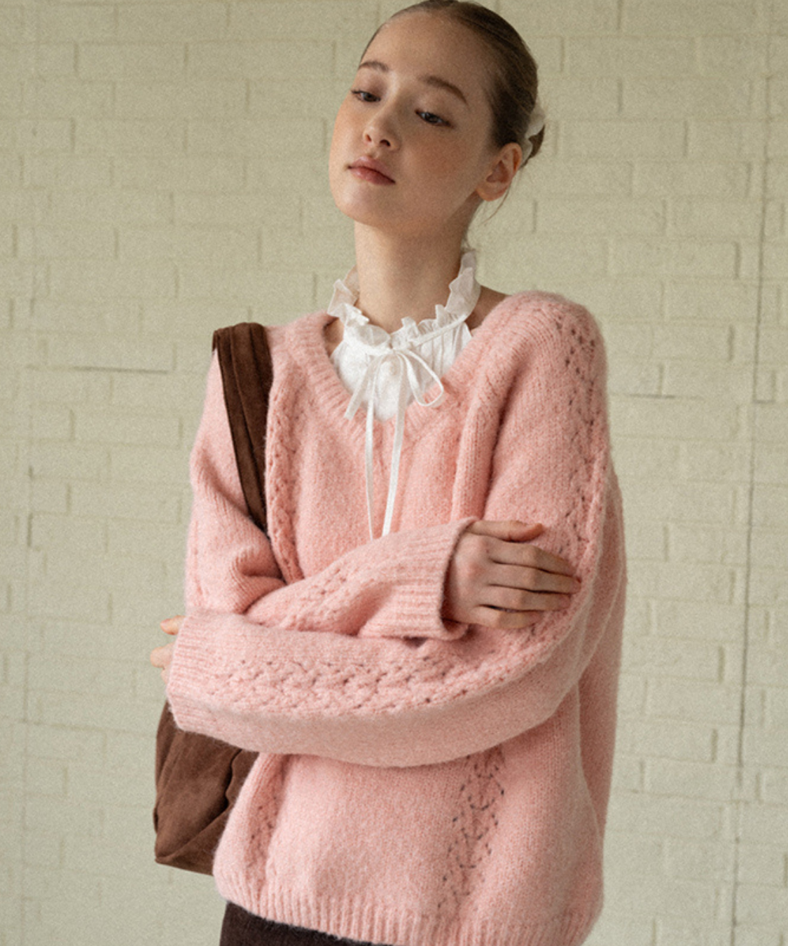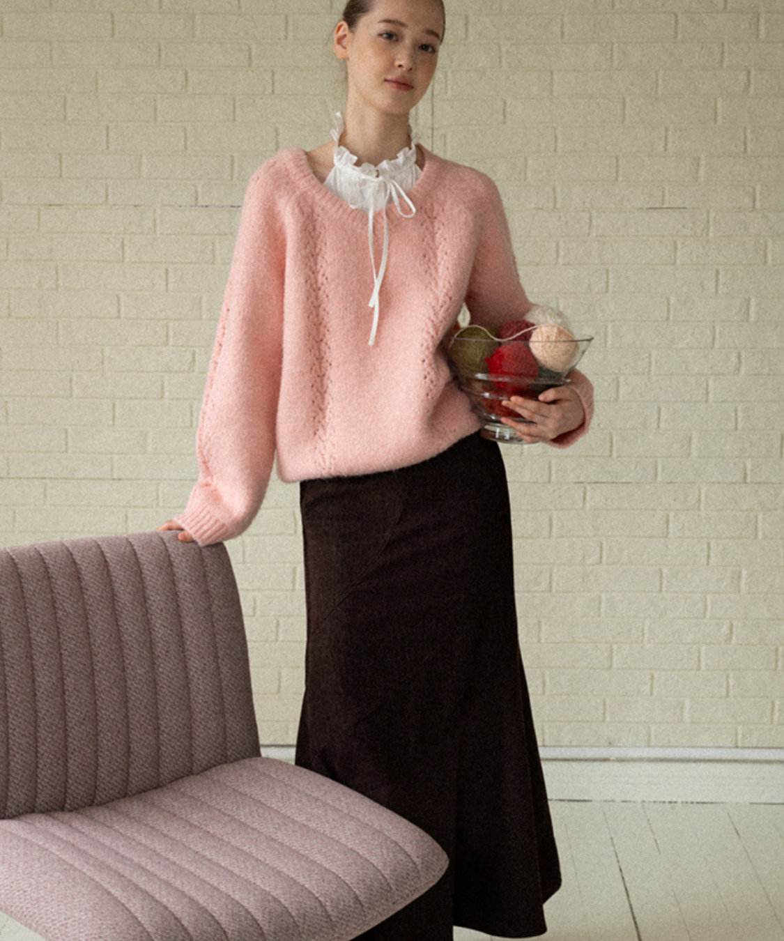 ニットやワンピのインに重ねるだけで、コーデの主役になる一点◎