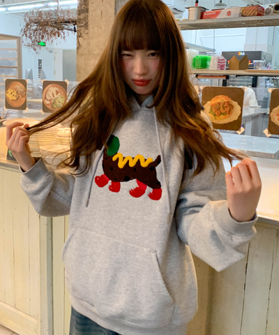 ホットドッグ風ダックスフンド裏起毛パーカー