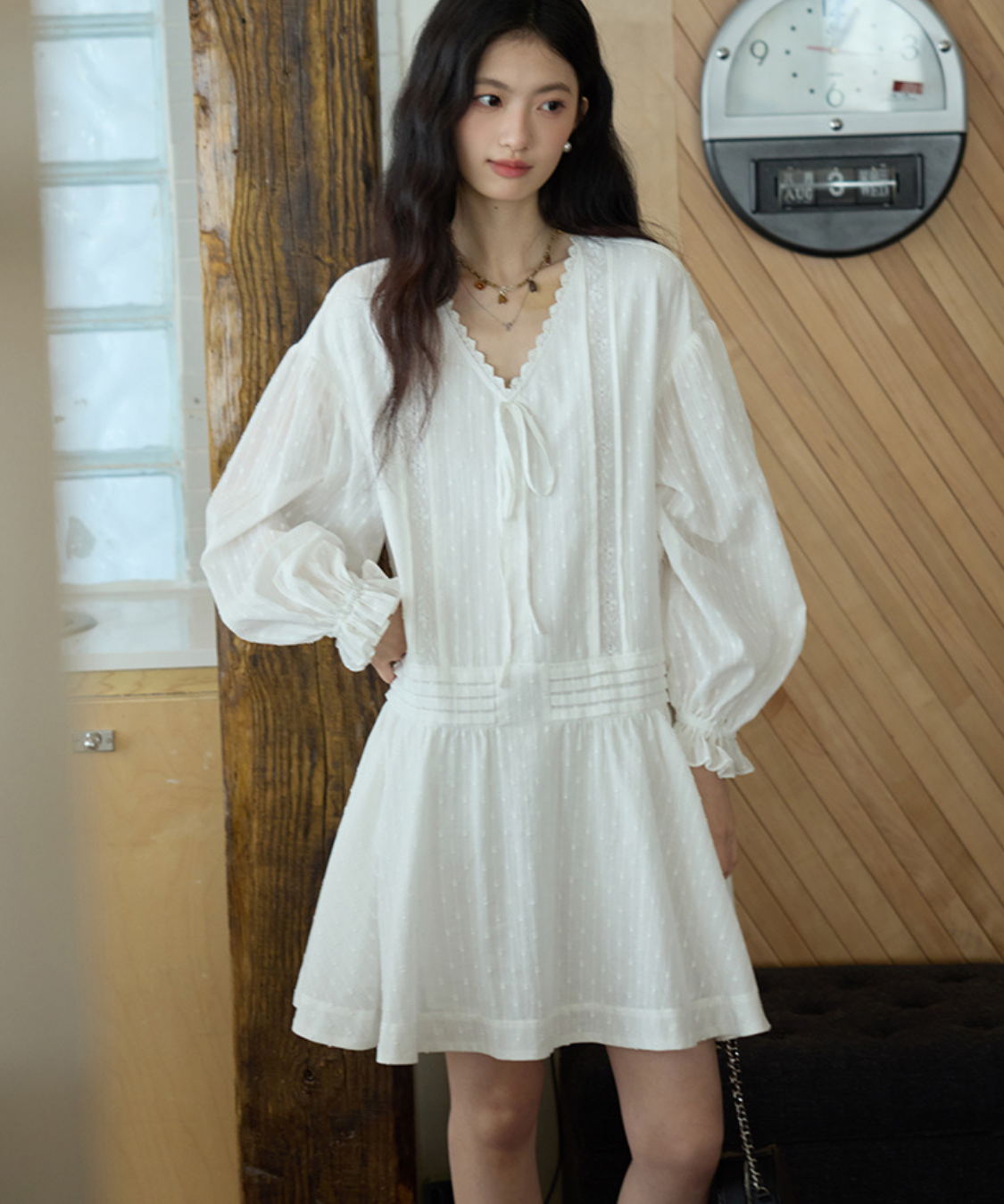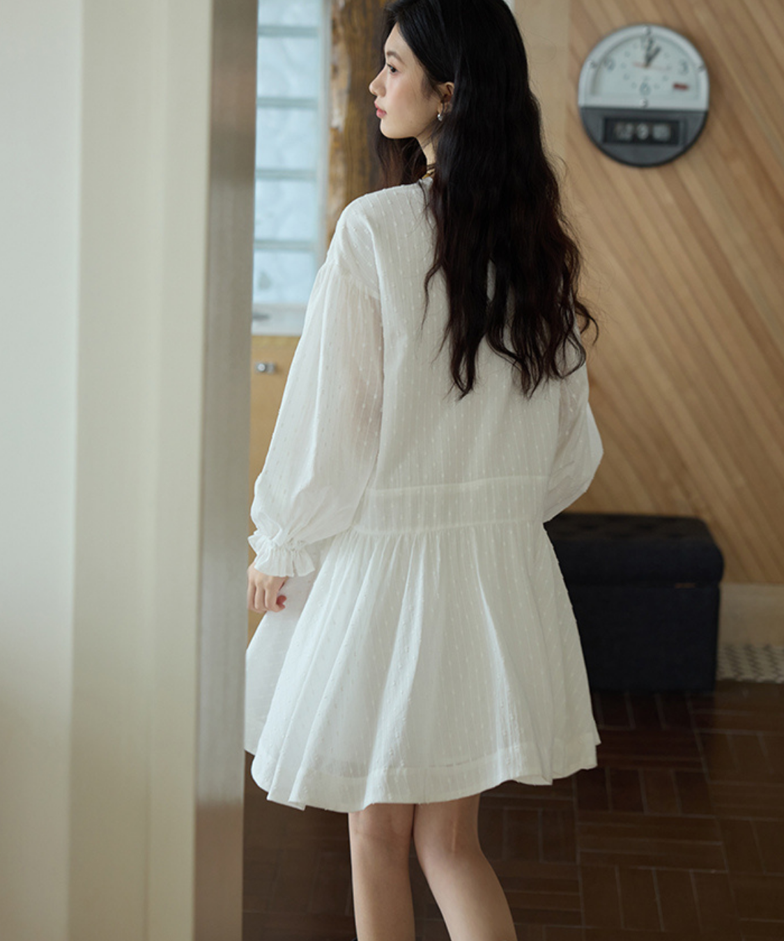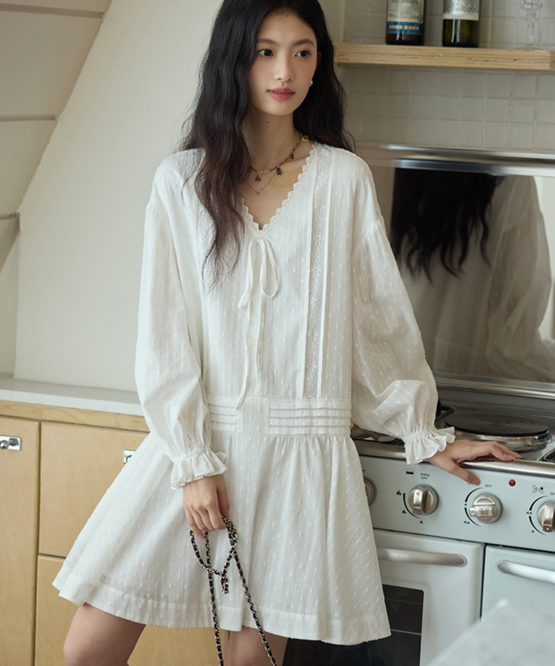 さりげないドット柄が可憐な印象を与えてくれるミニワンピースです。