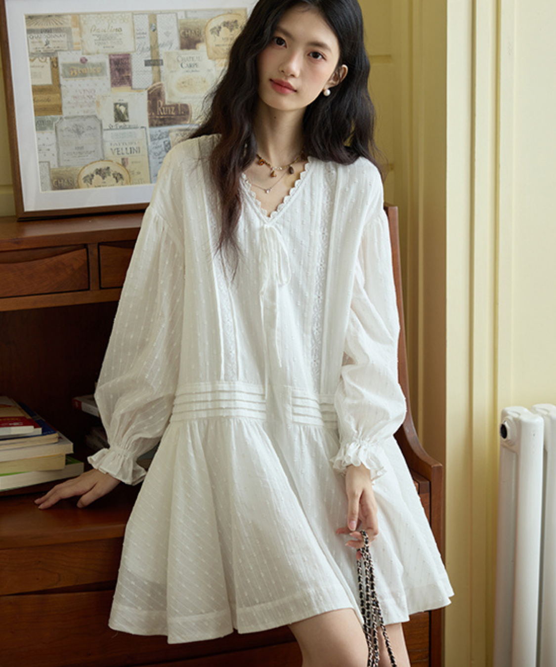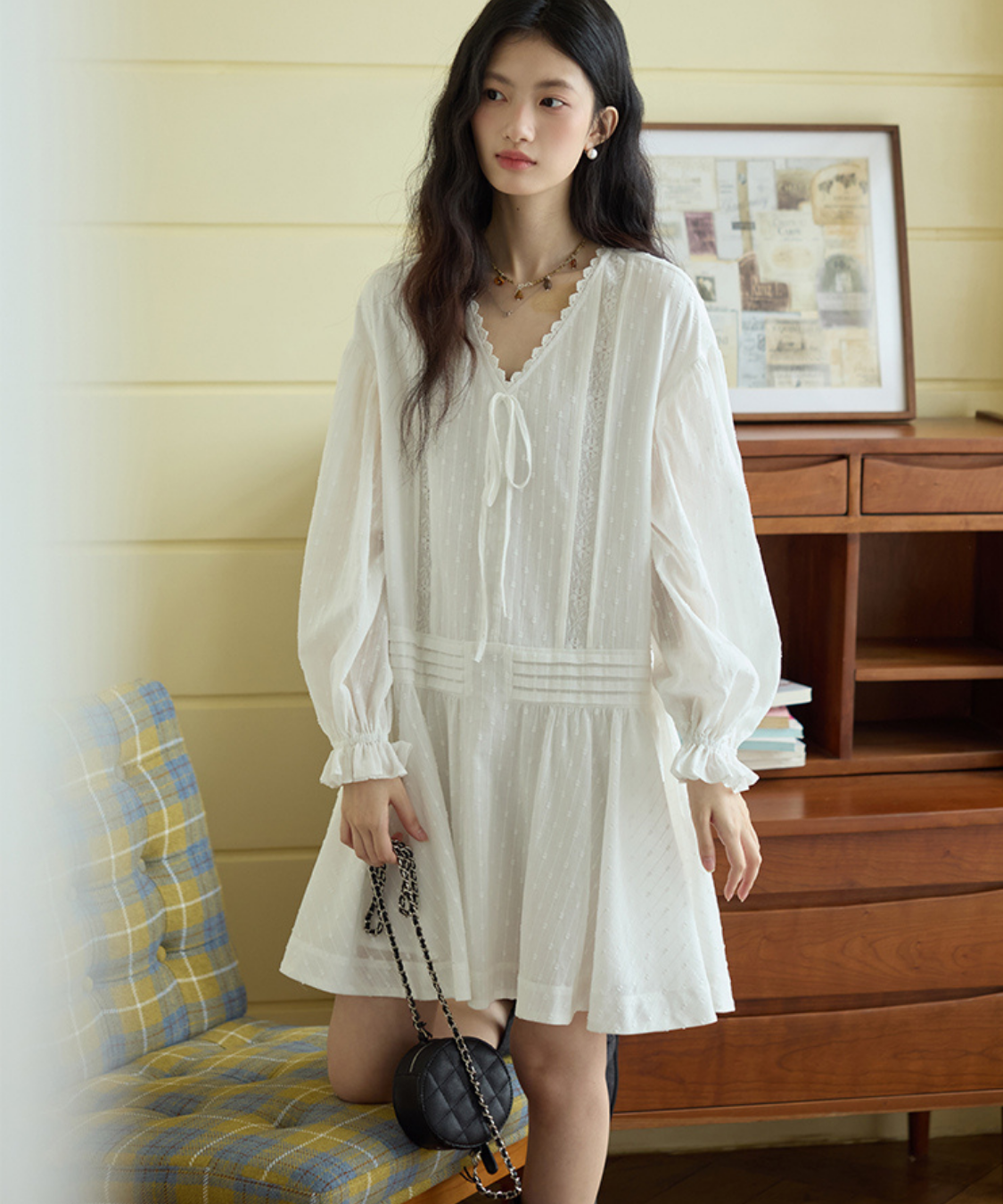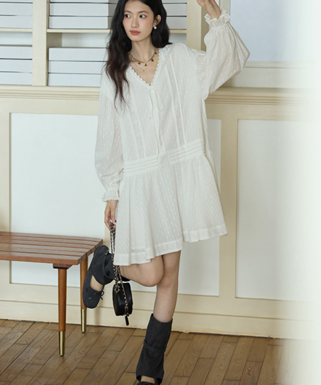 さりげないドット柄が可憐な印象を与えてくれるミニワンピースです。