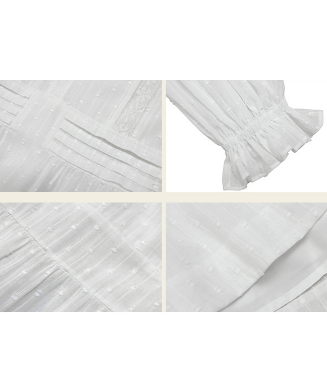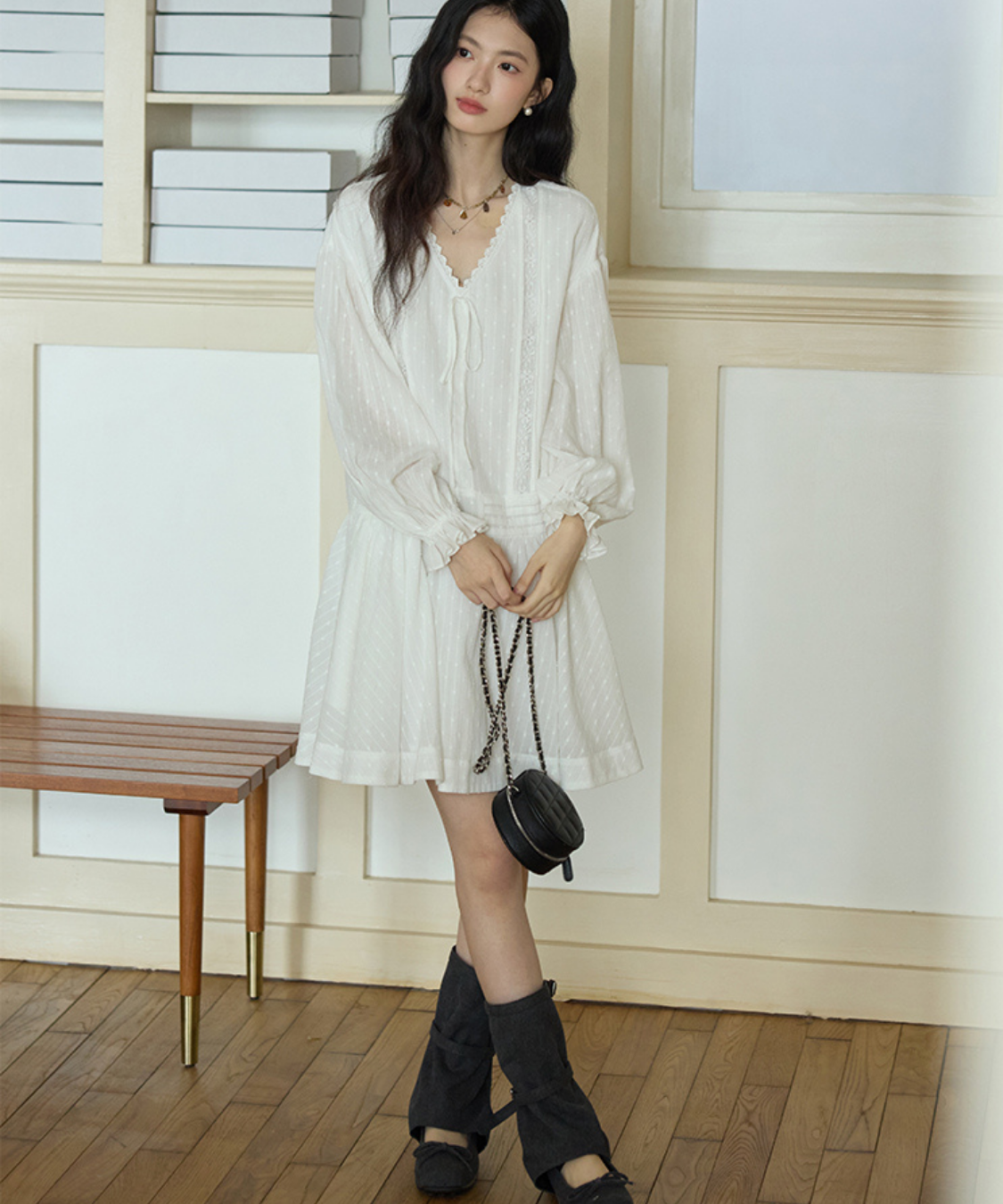 ギャザースリーブと胸元のリボンが、甘さを引き立てるアクセントに♡