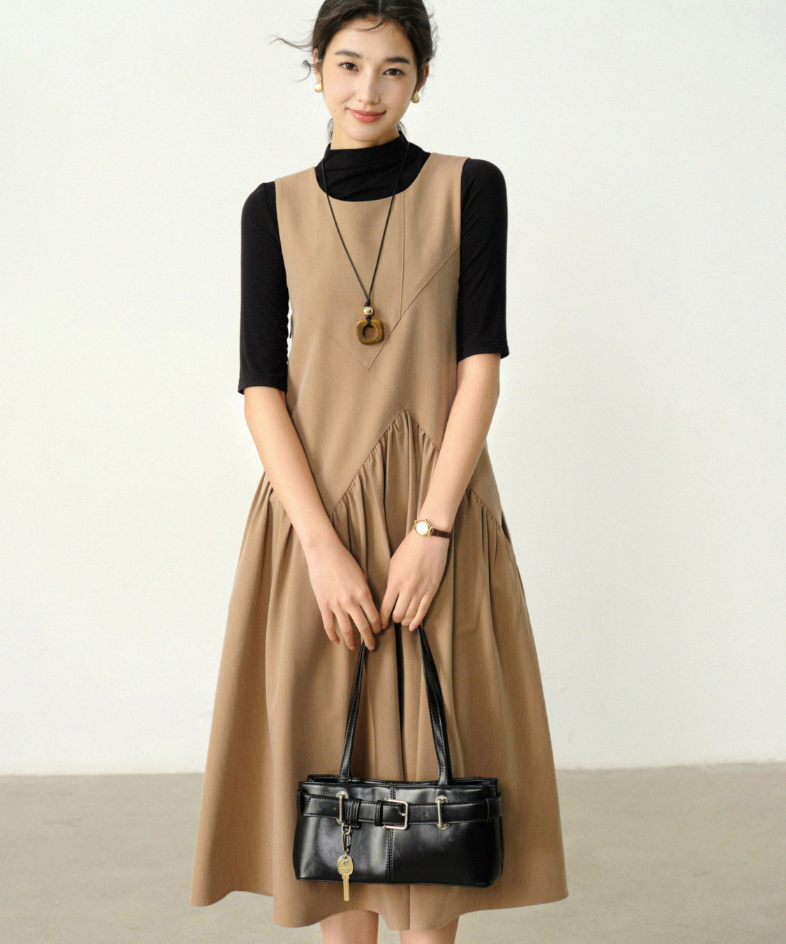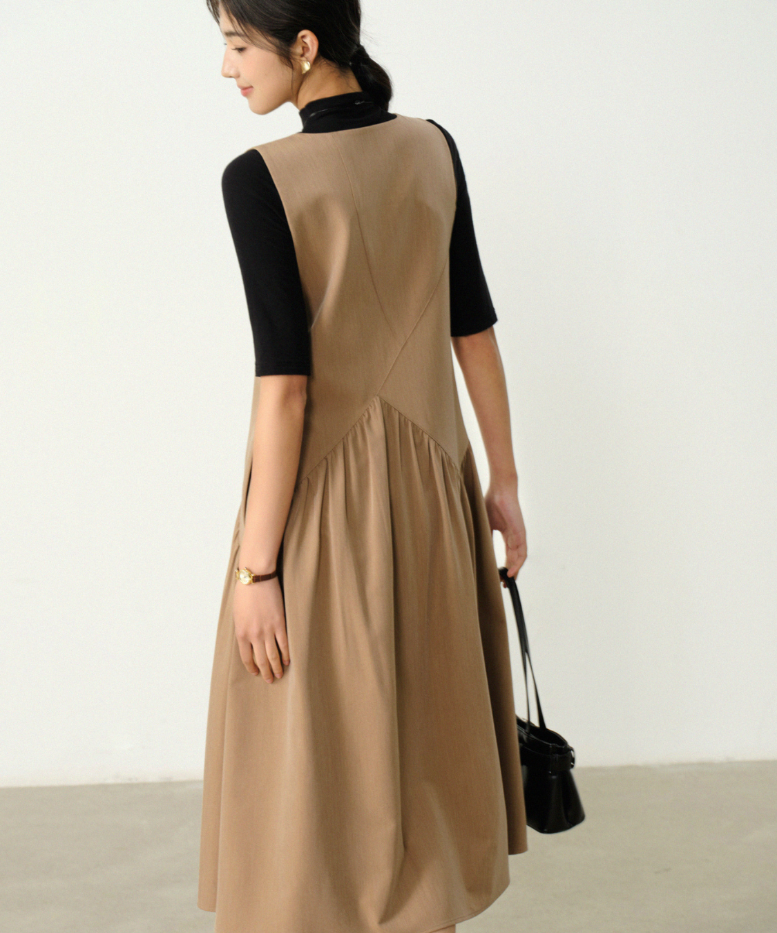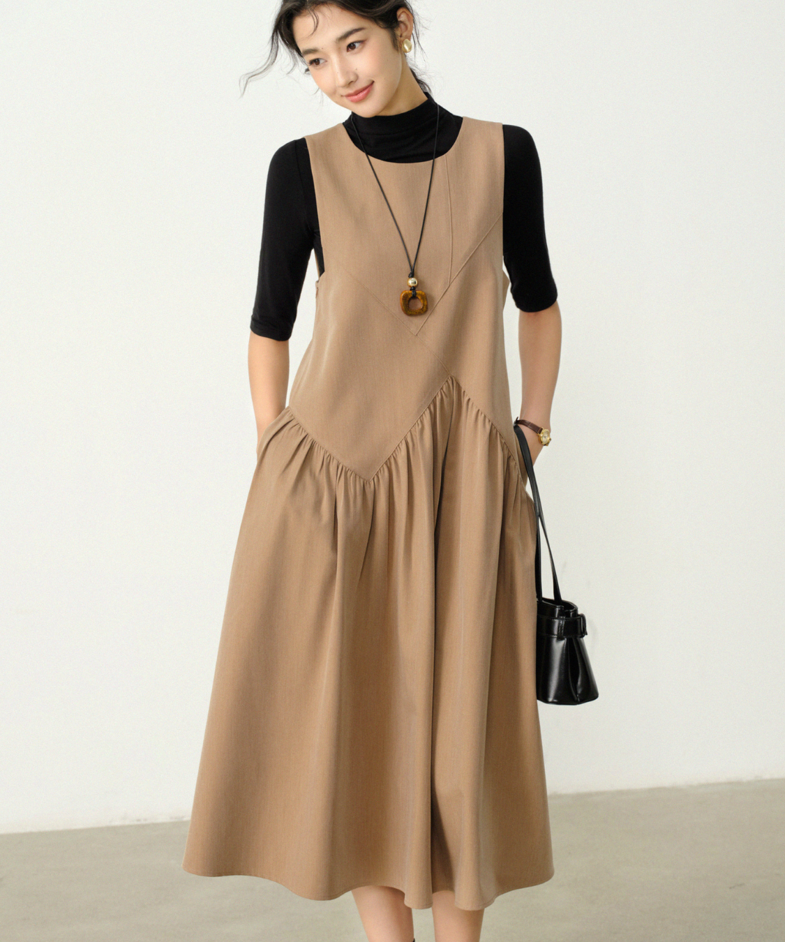 サイドから広がるギャザーが軽やかで、女性らしさを引き立てます♡