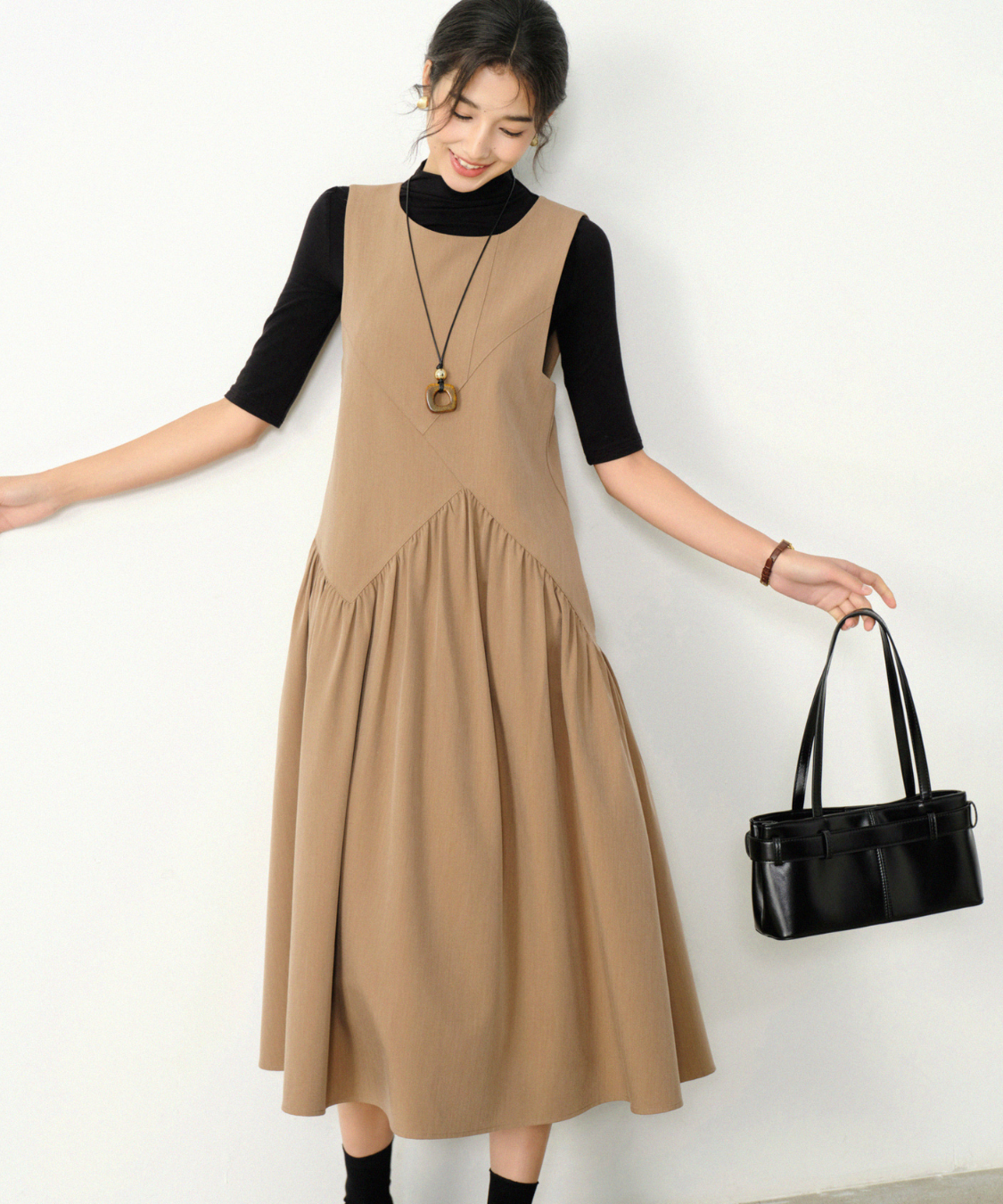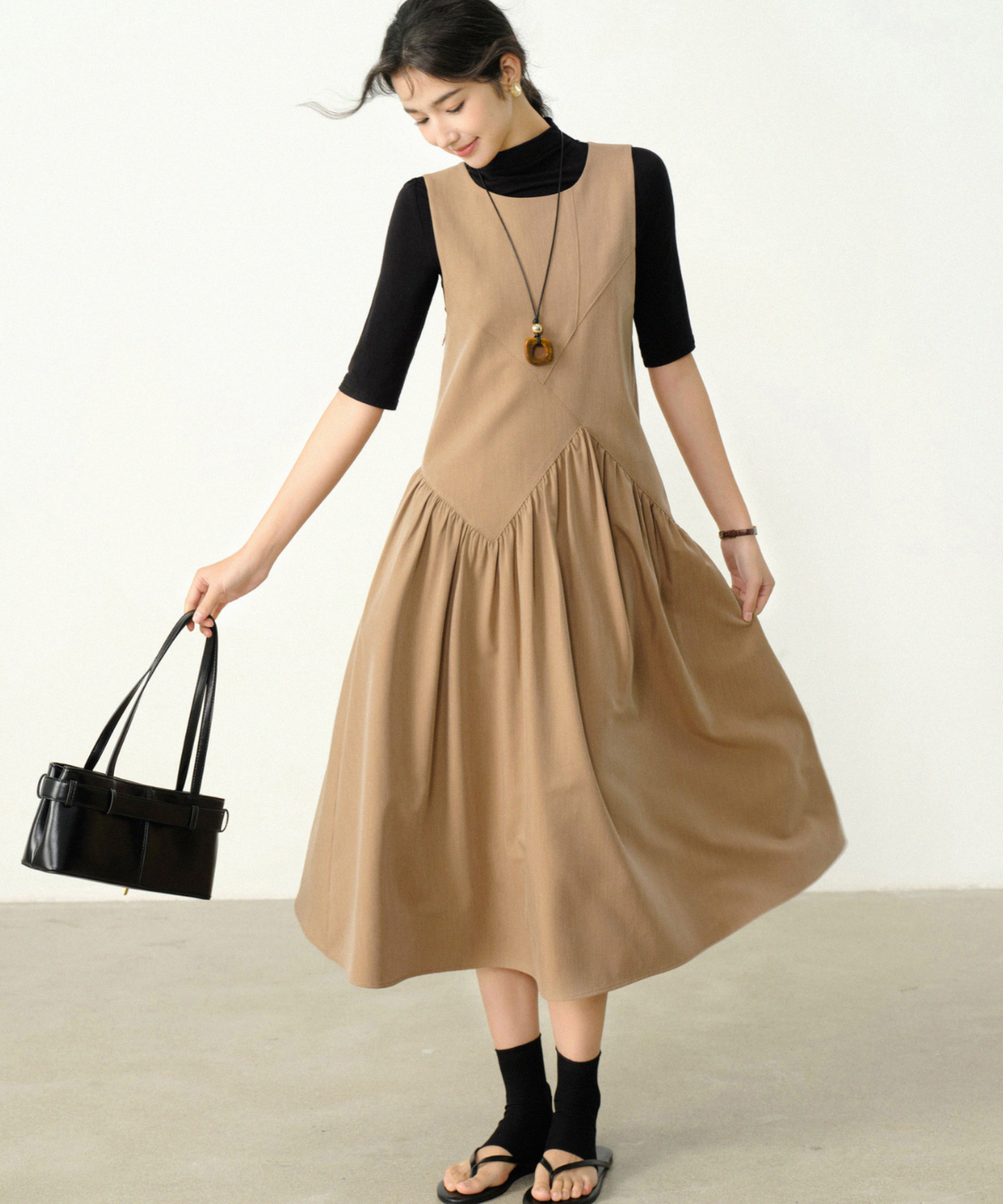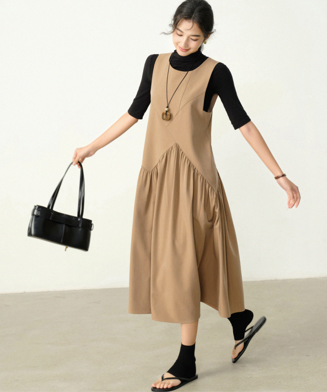 サイドから広がるギャザーが軽やかで、女性らしさを引き立てます♡
