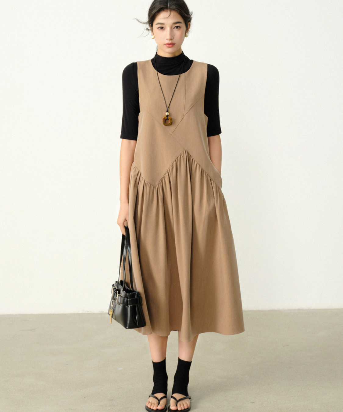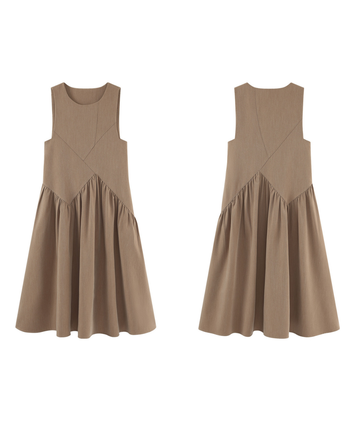 アシンメトリー切替ギャザーノースリーブワンピース