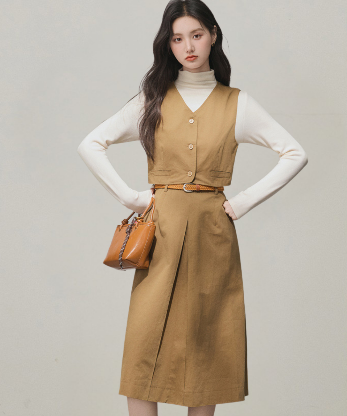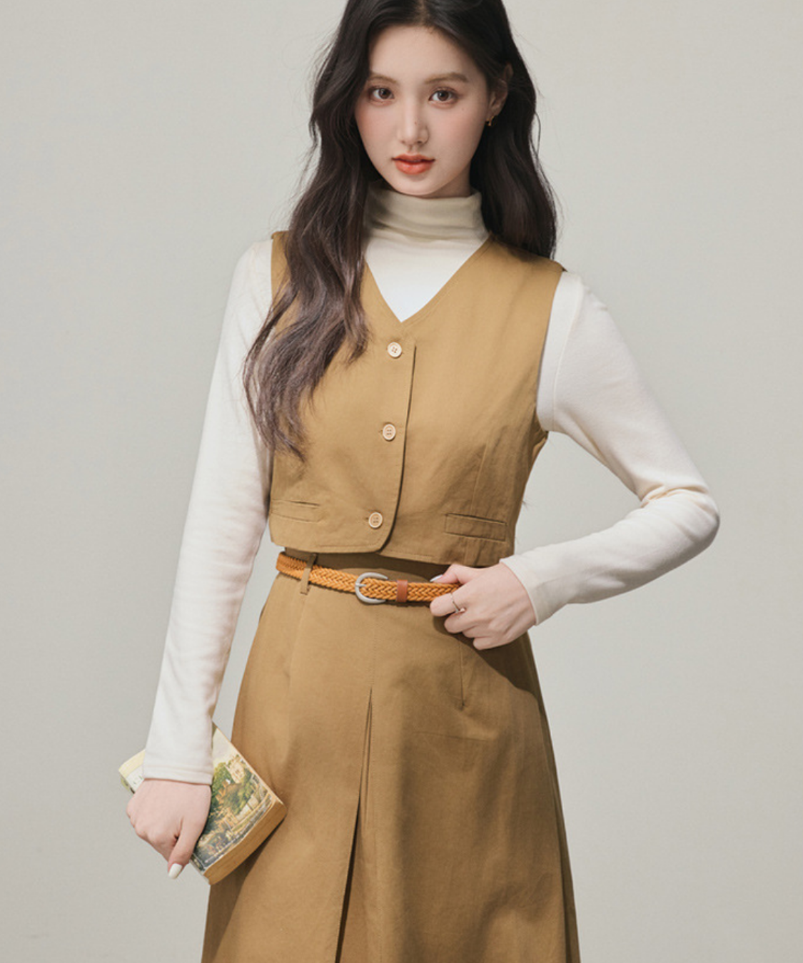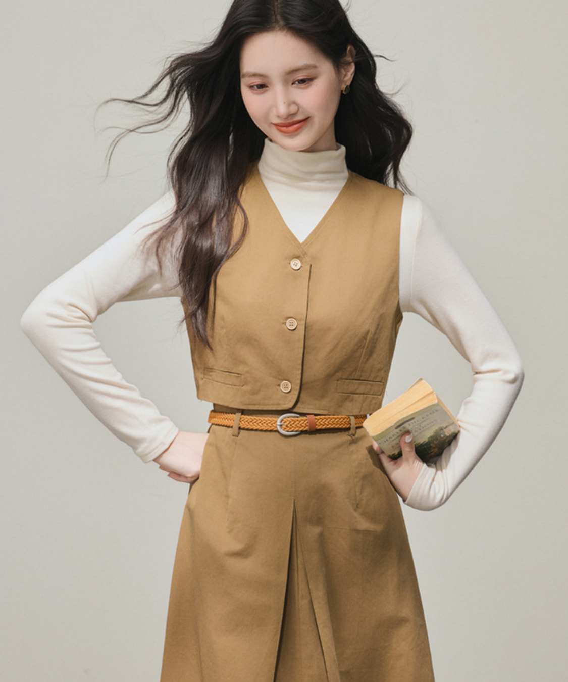 ショートベストがウエスト高めに見せてくれて脚長効果ばっちり!セットでも別々でも大活躍