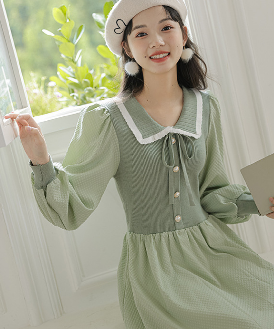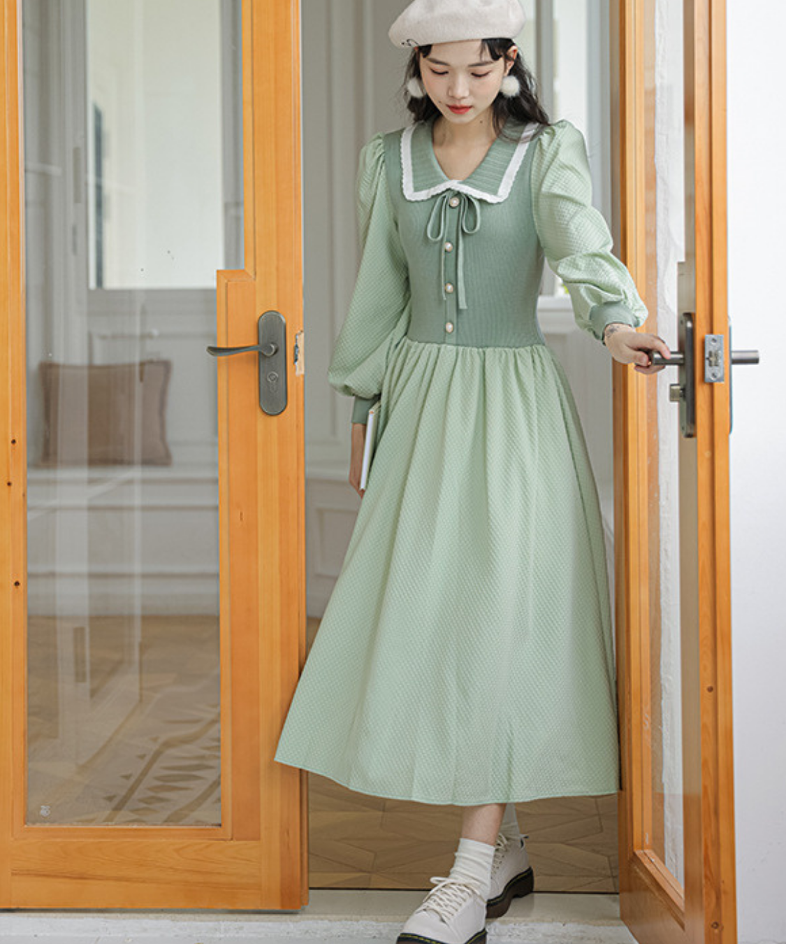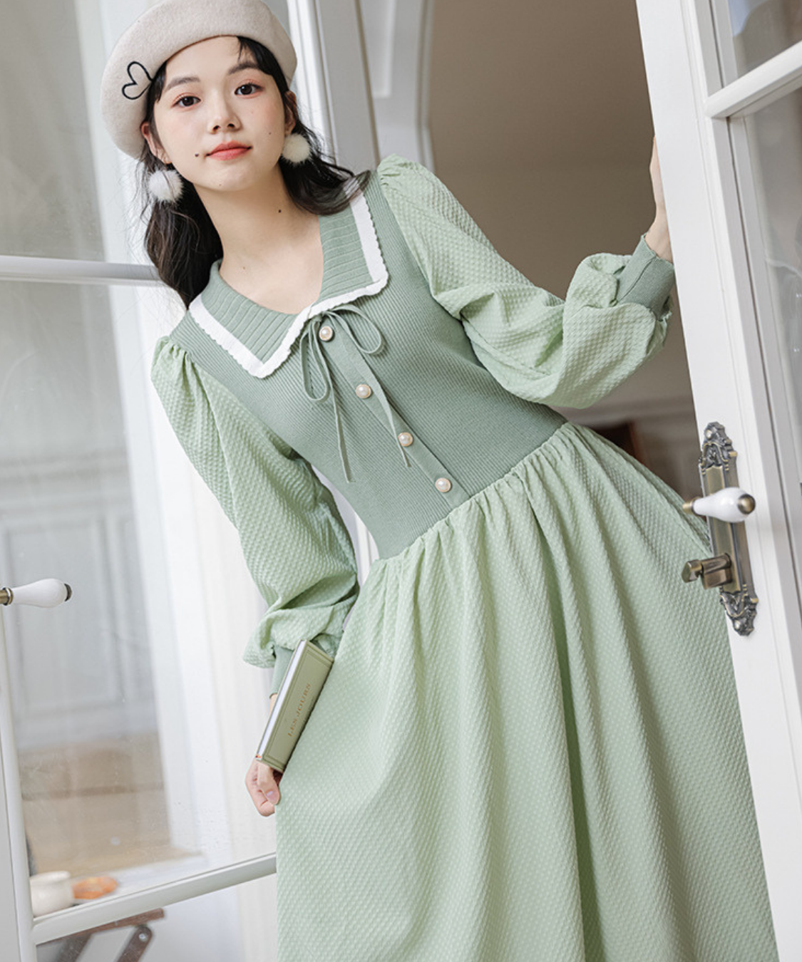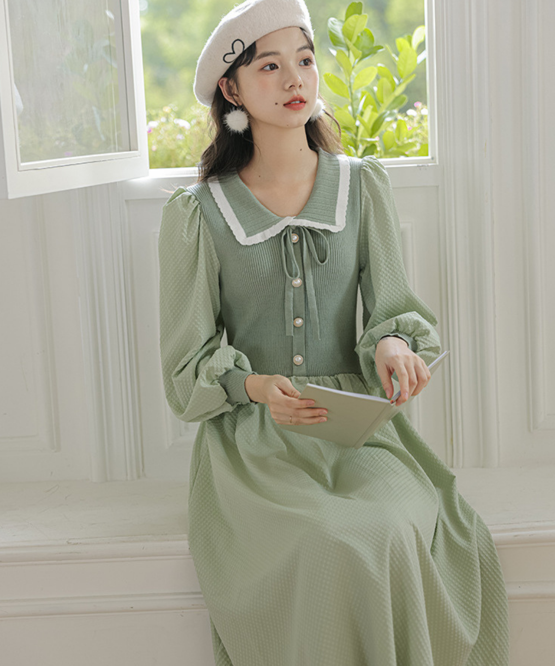 配色カラーとリブ切り替えが上品なアクセントになったワンピースです。