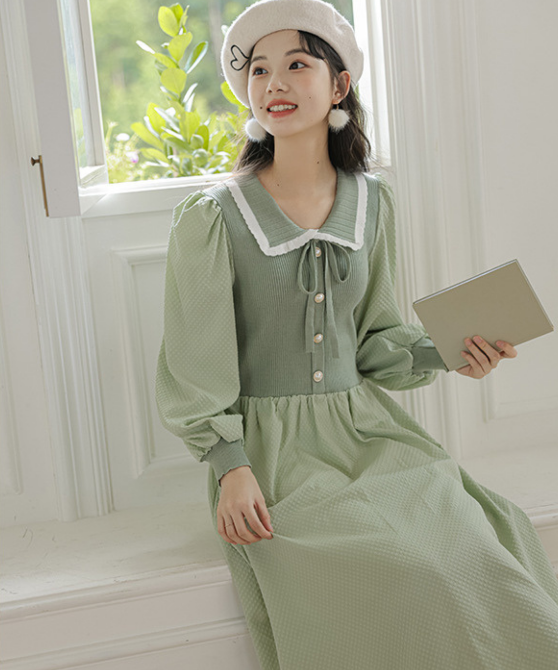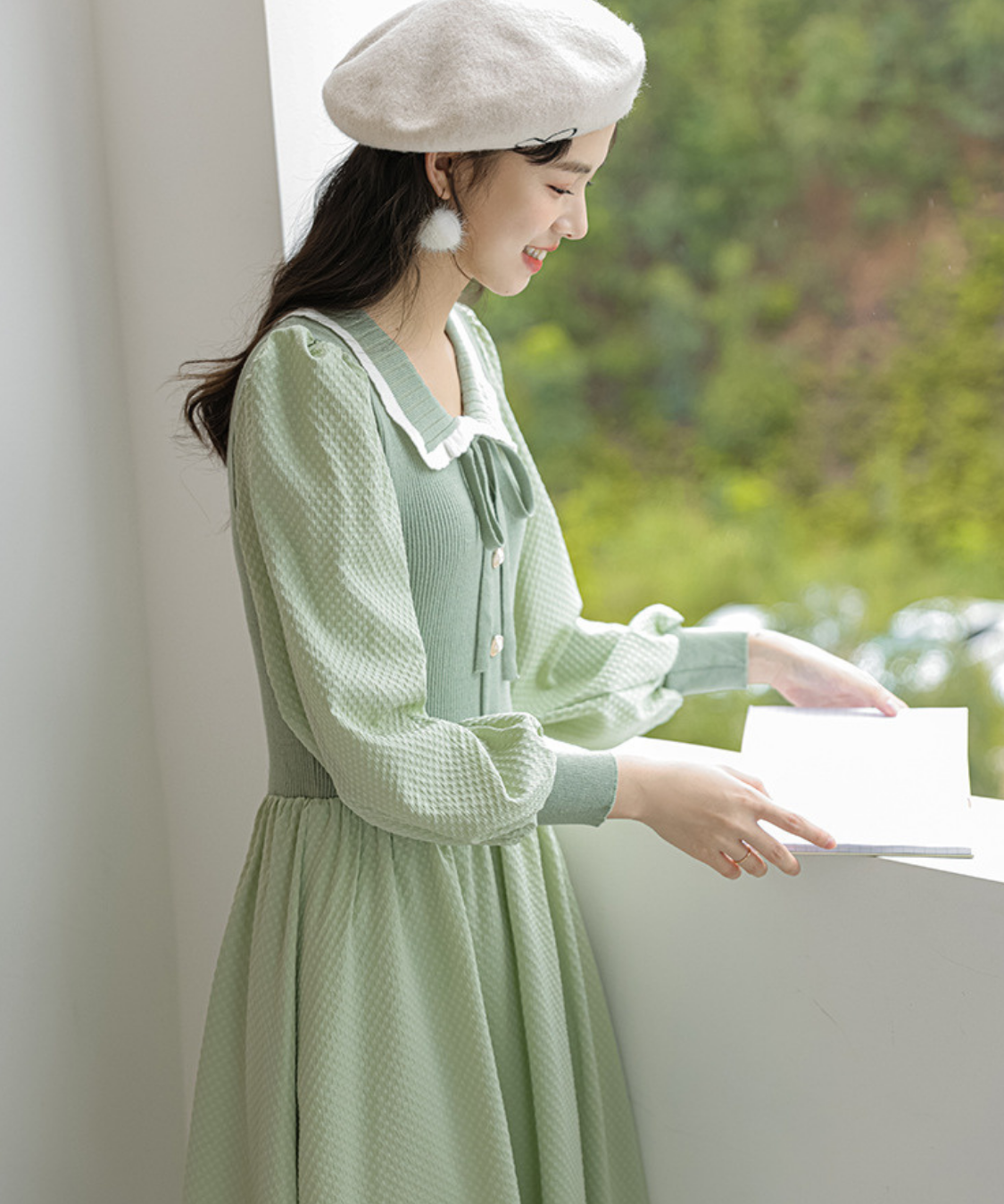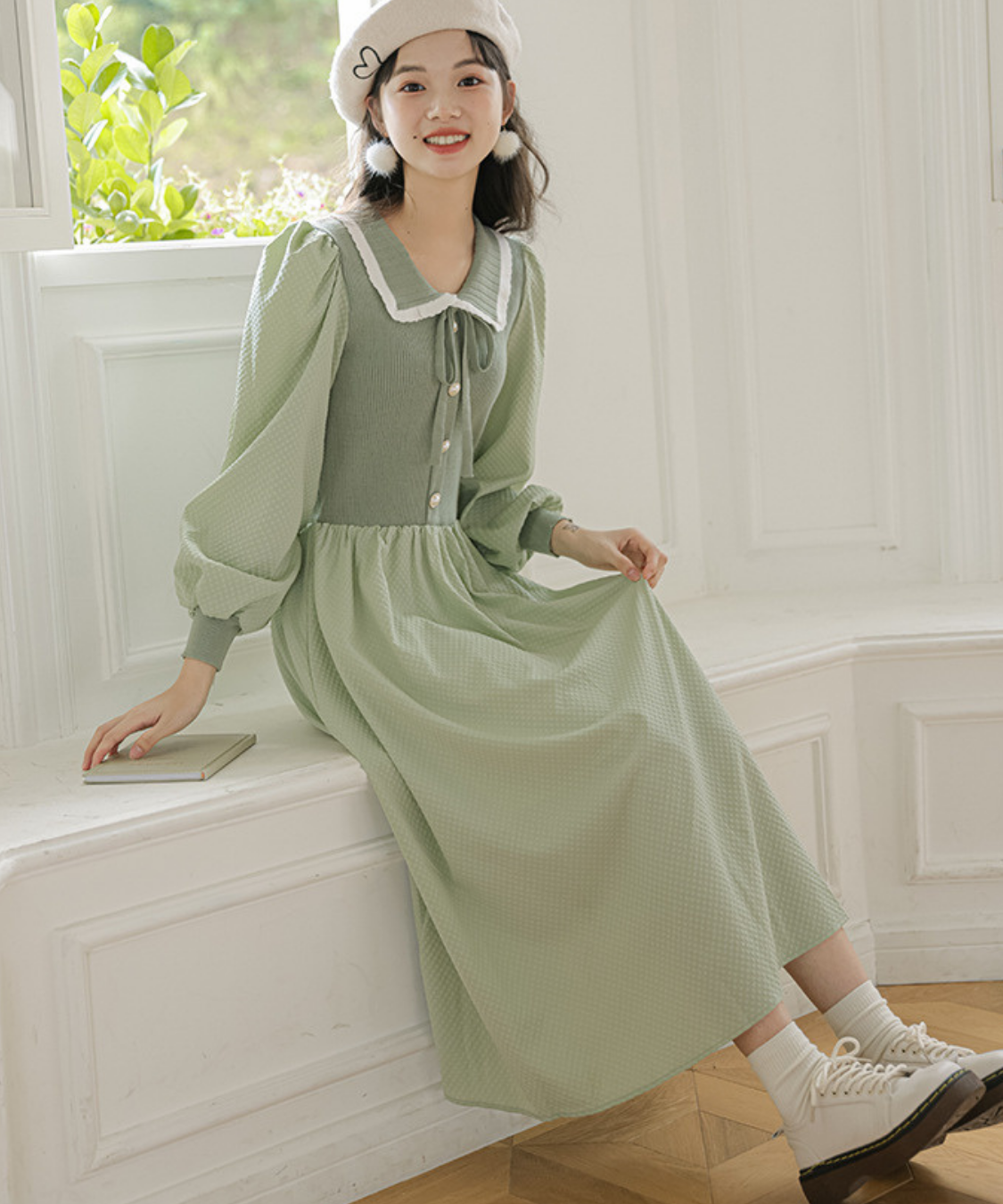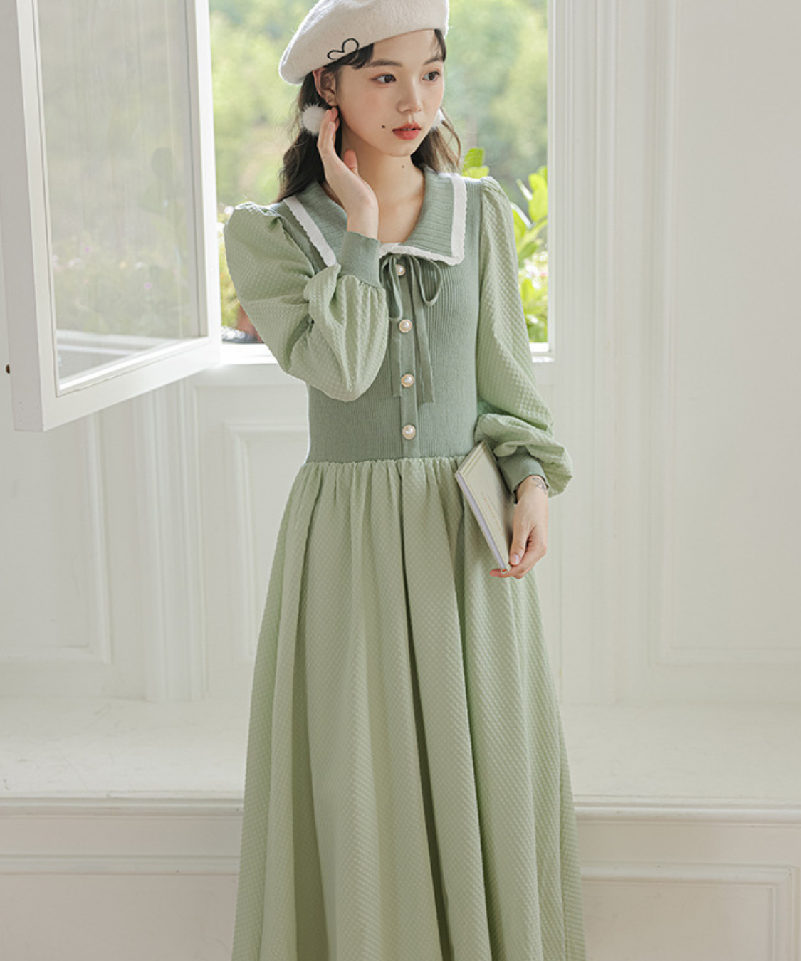 配色カラーとリブ切り替えが上品なアクセントになったワンピースです。