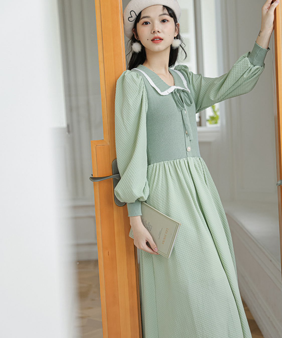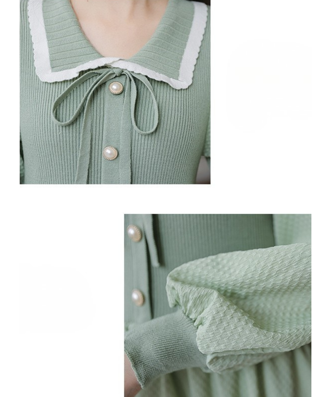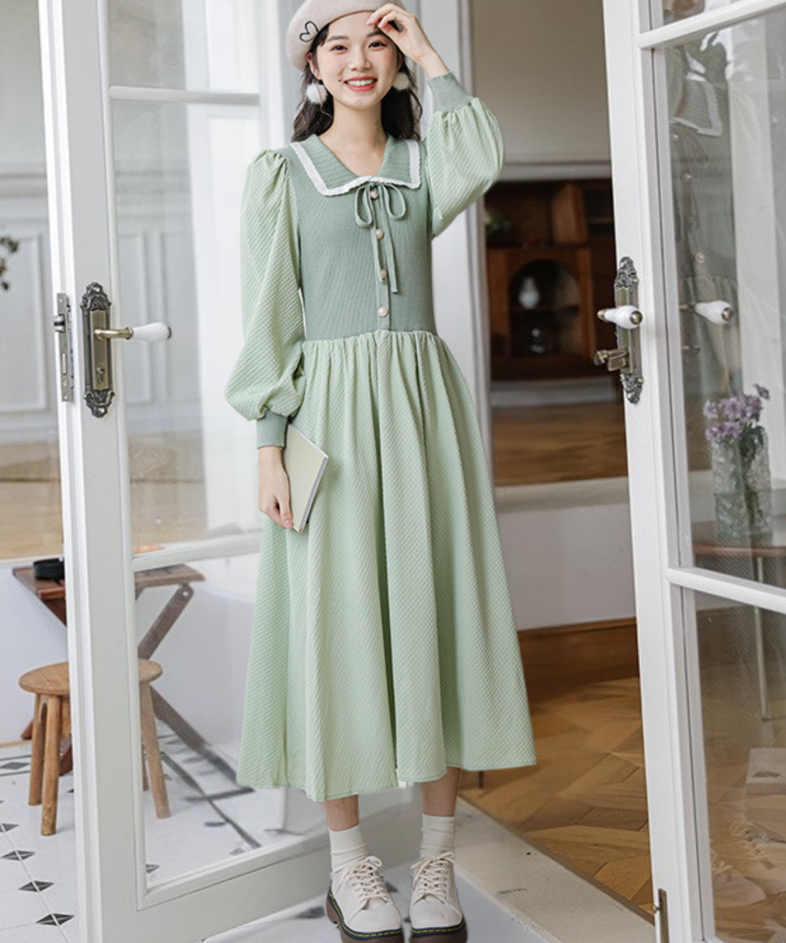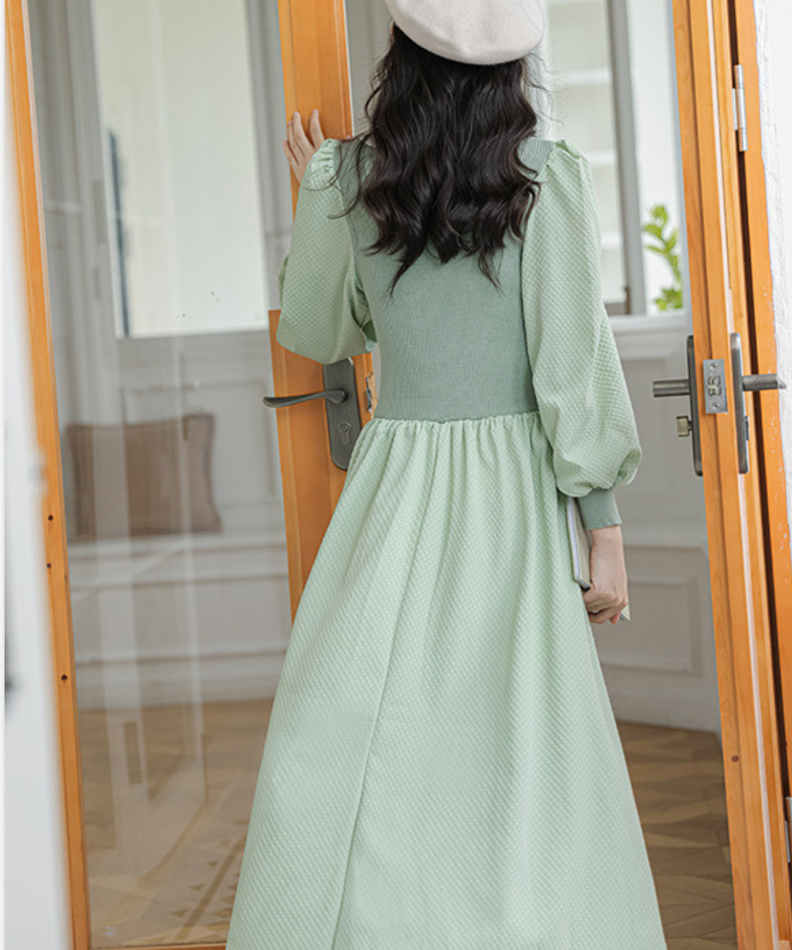 配色カラーとリブ切り替えが上品なアクセントになったワンピースです。