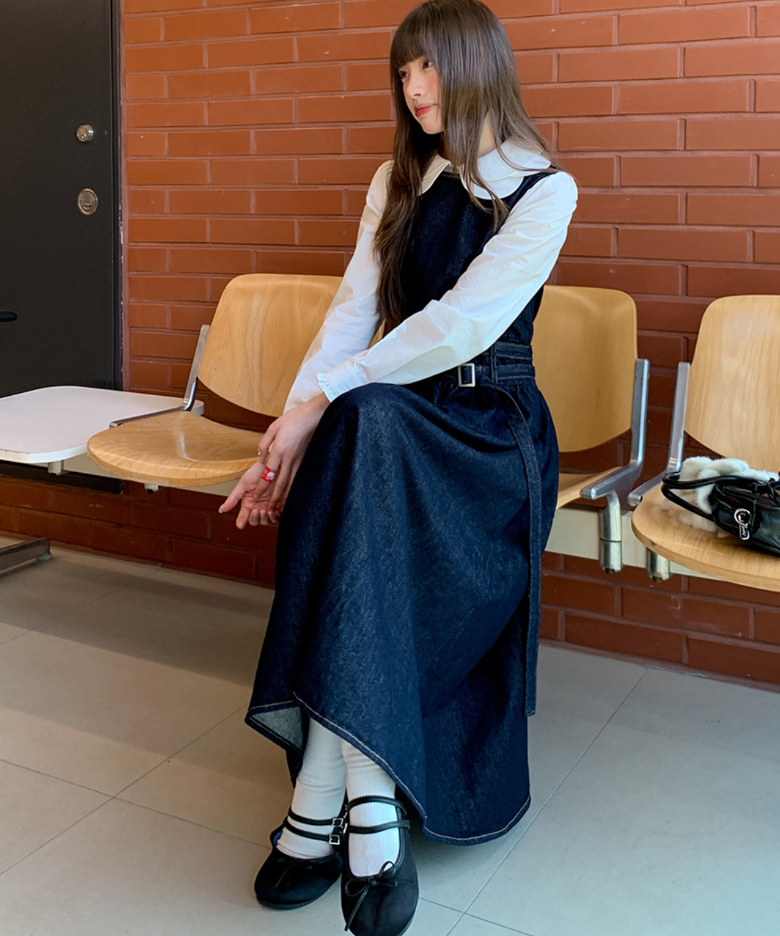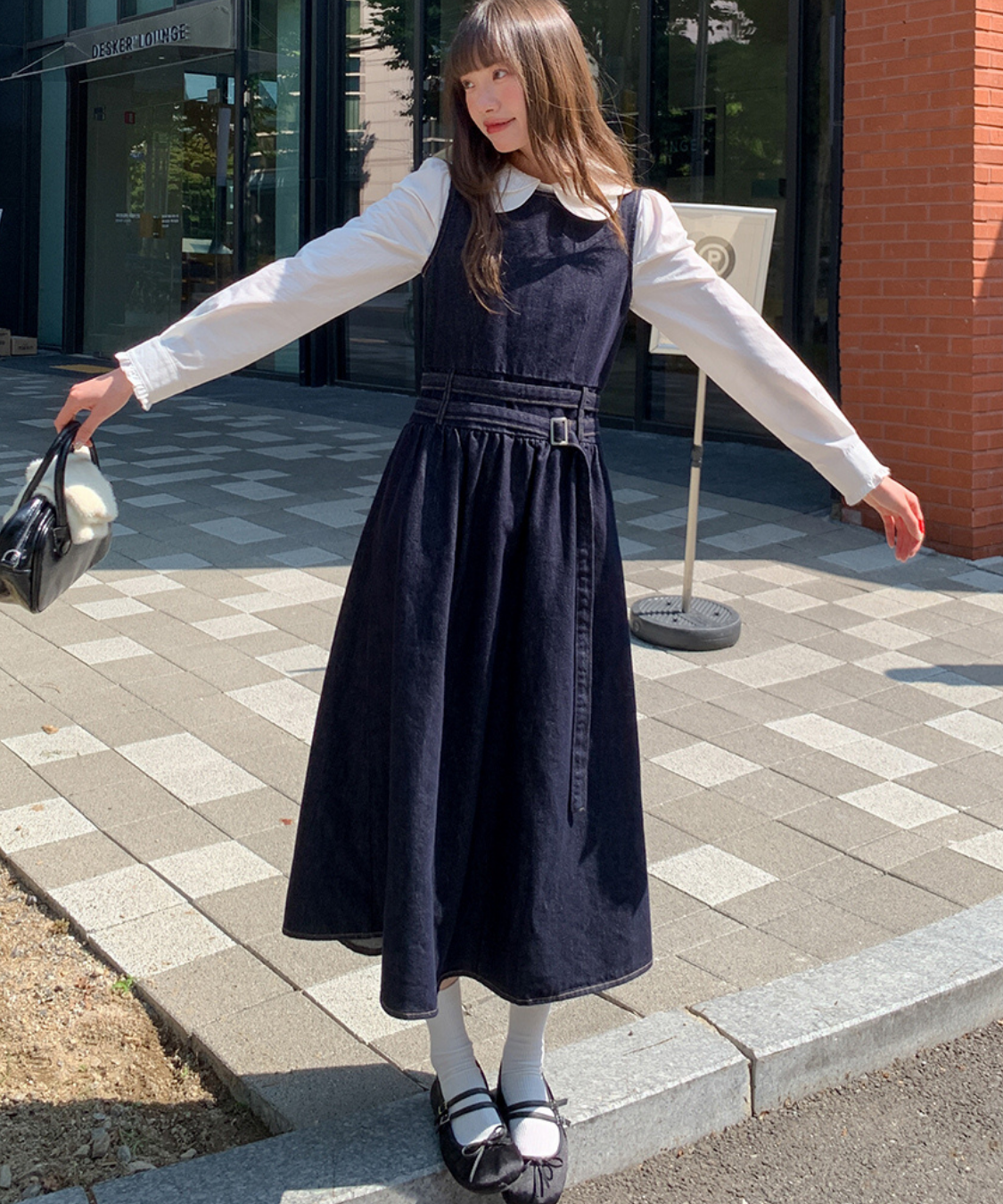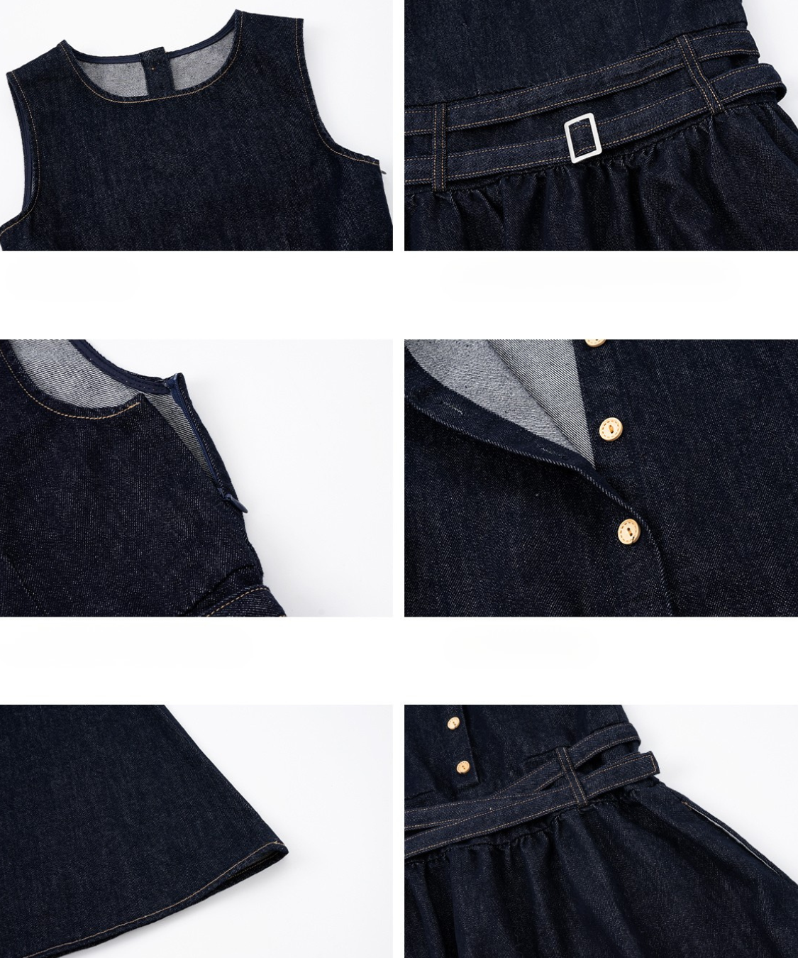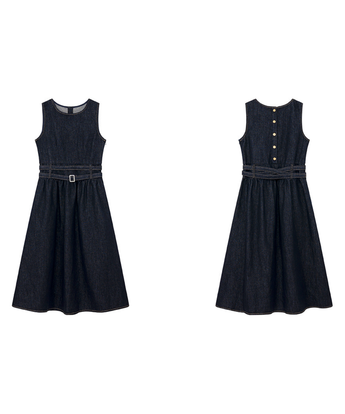 ウエストのベルトデザインがアクセントになったデニムワンピースです。