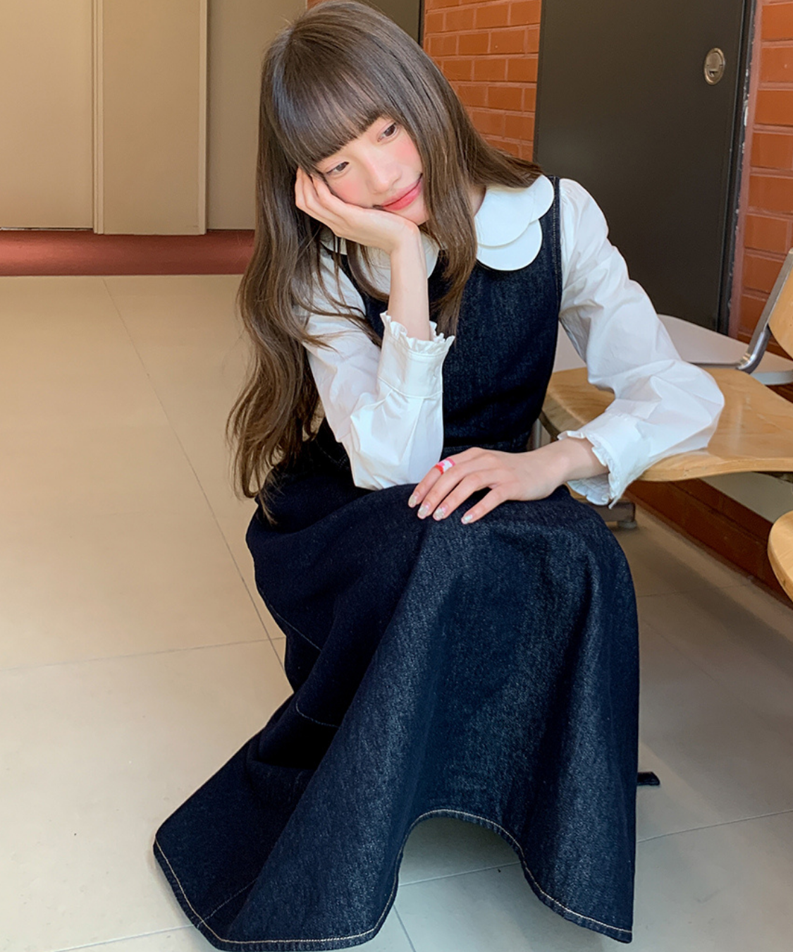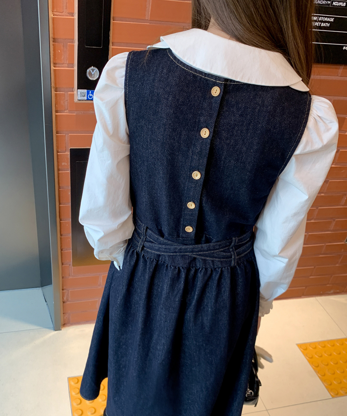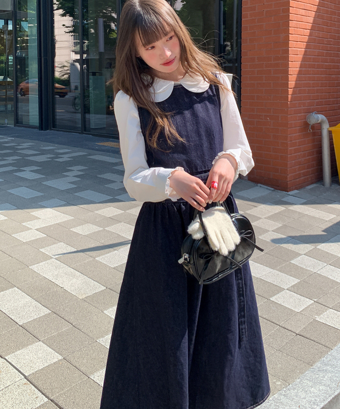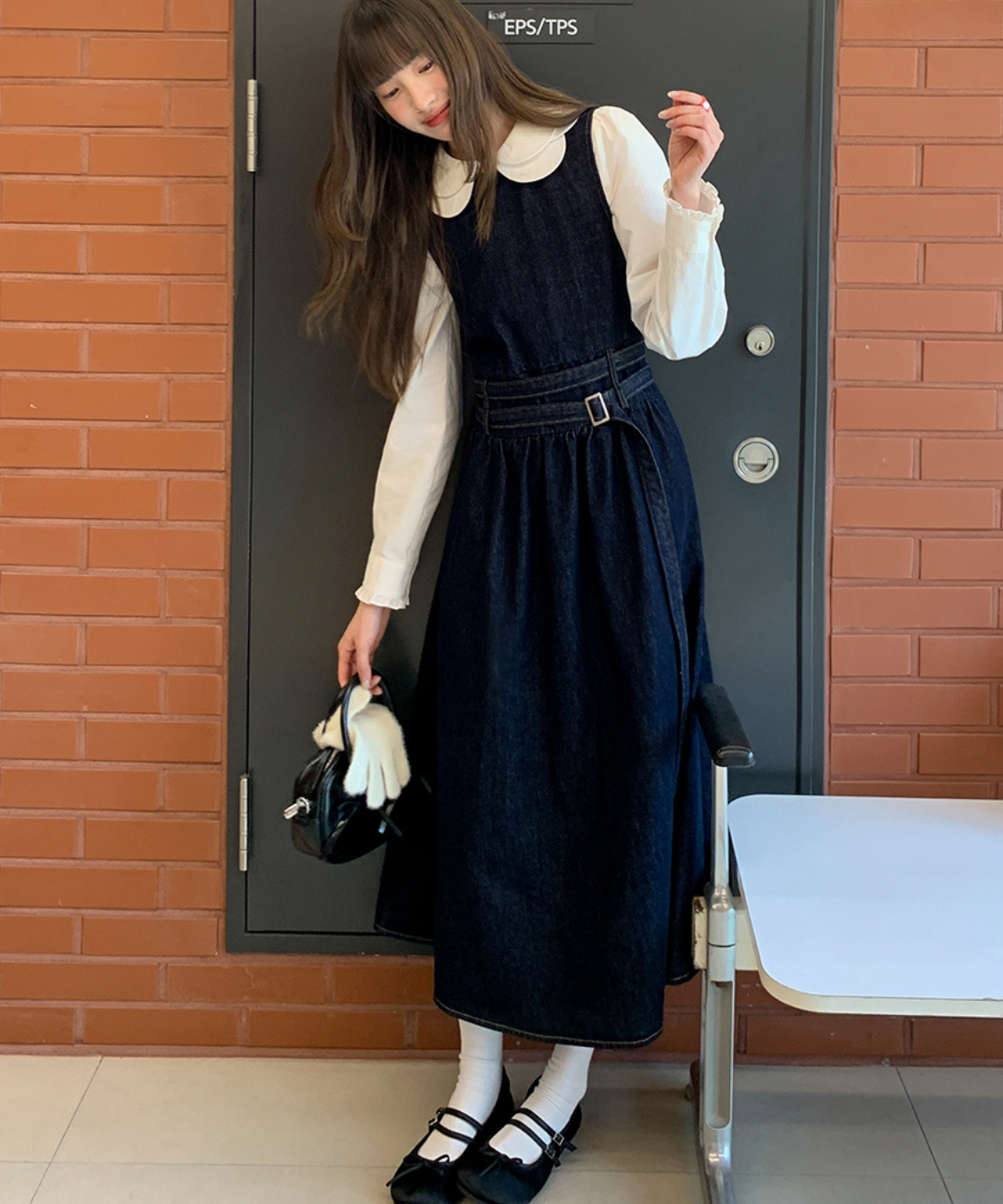ウエストのベルトデザインがアクセントになったデニムワンピースです。