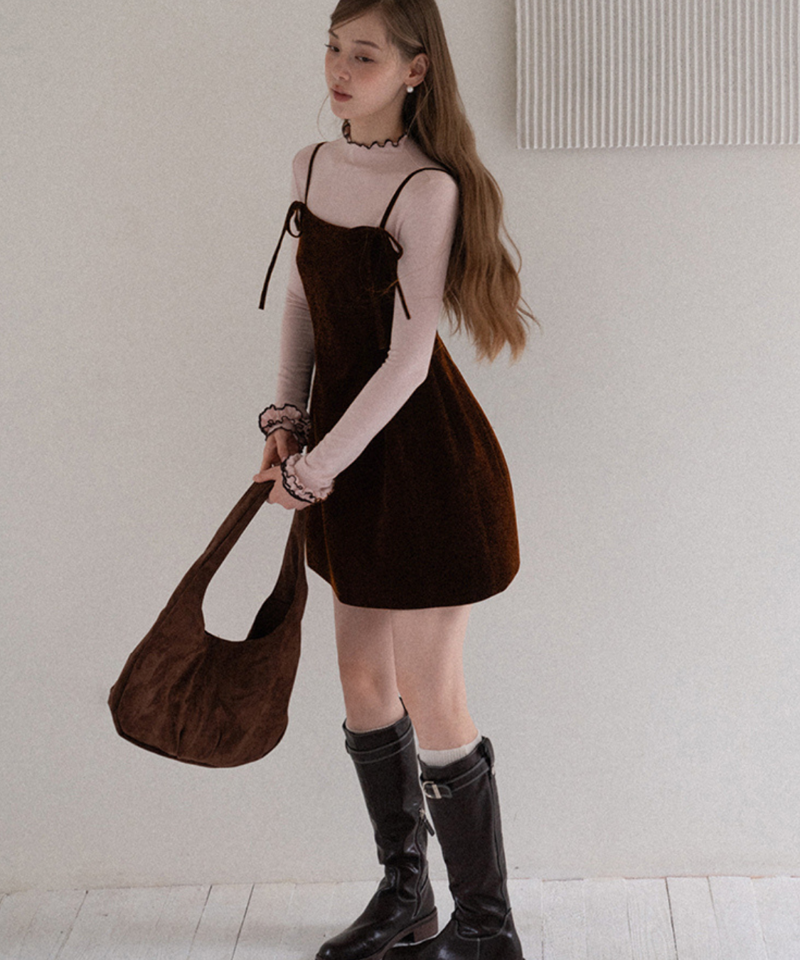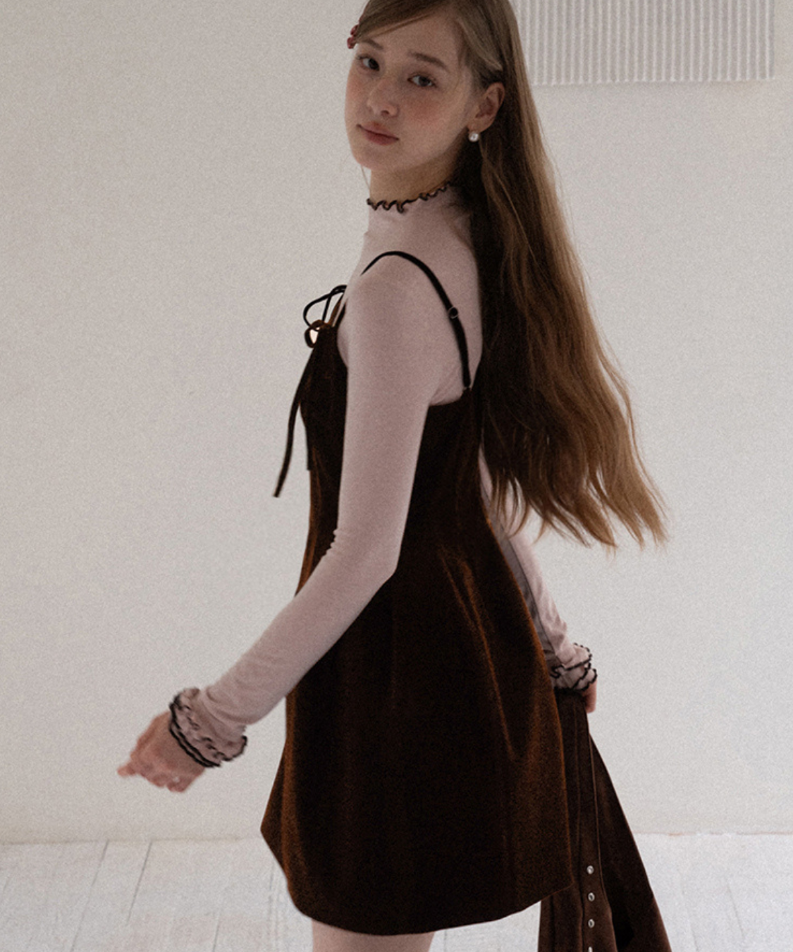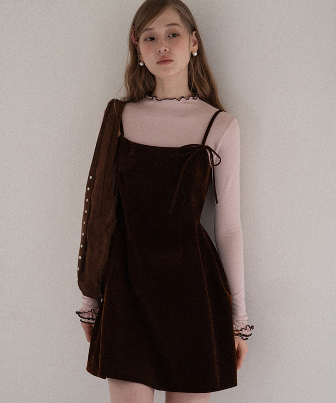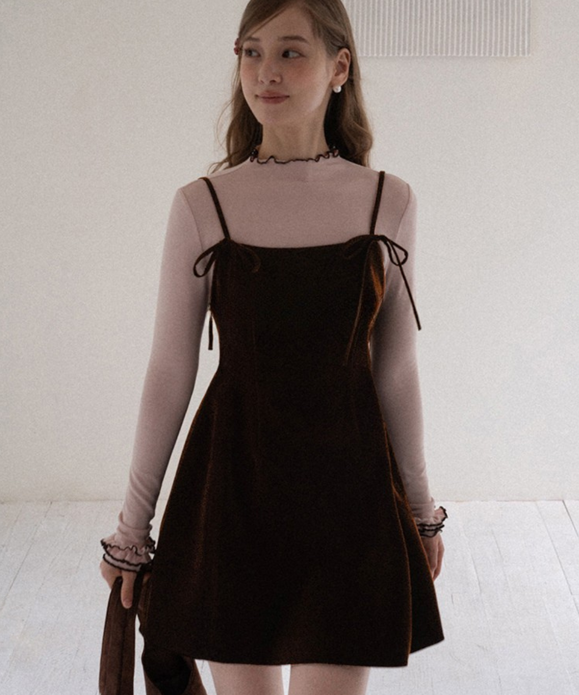 リボンストラップベロアキャミワンピース