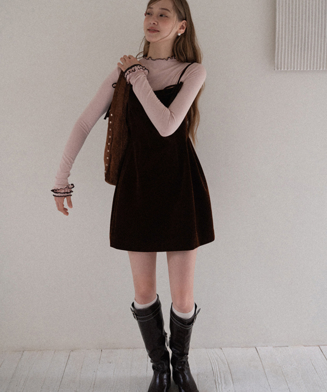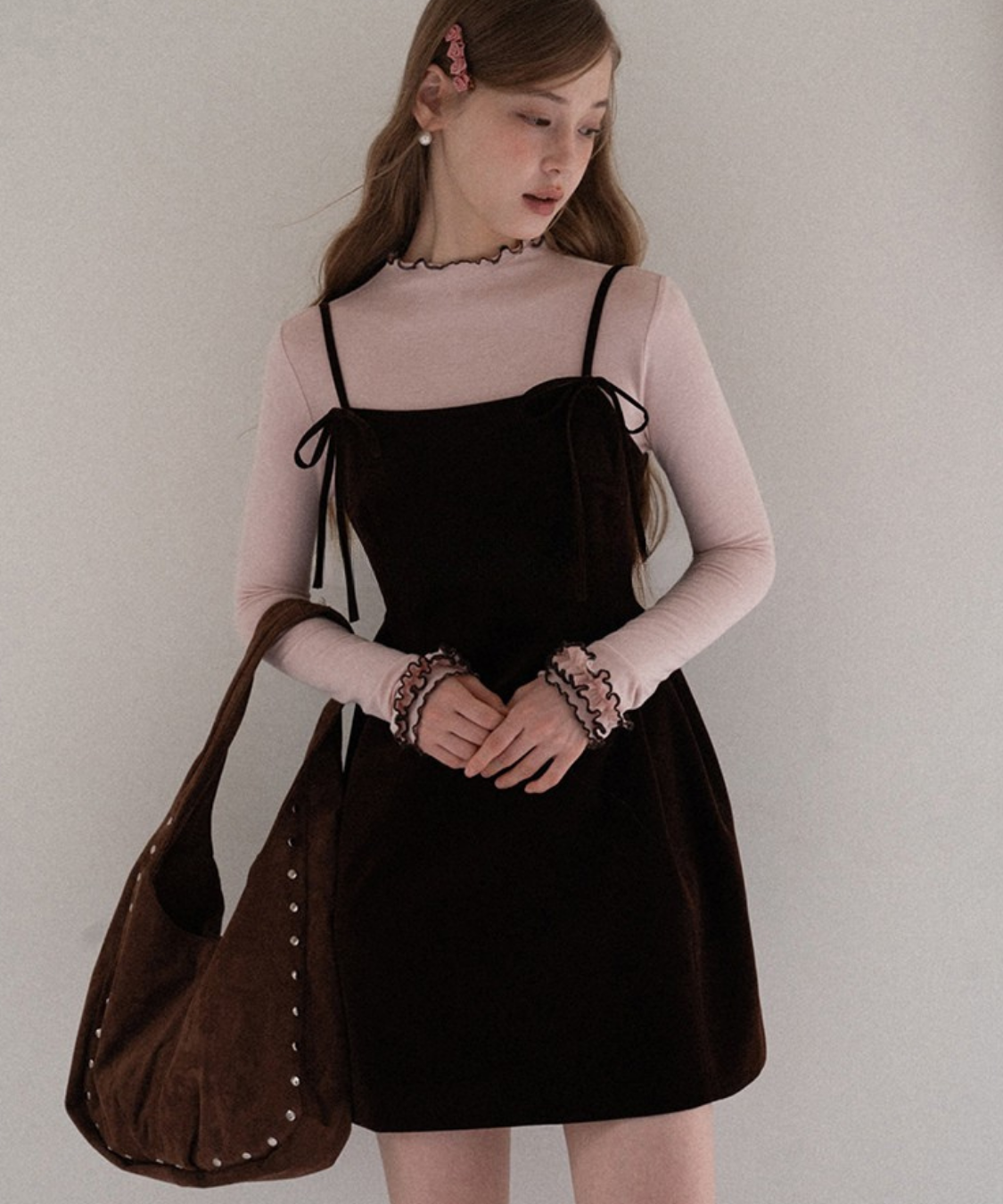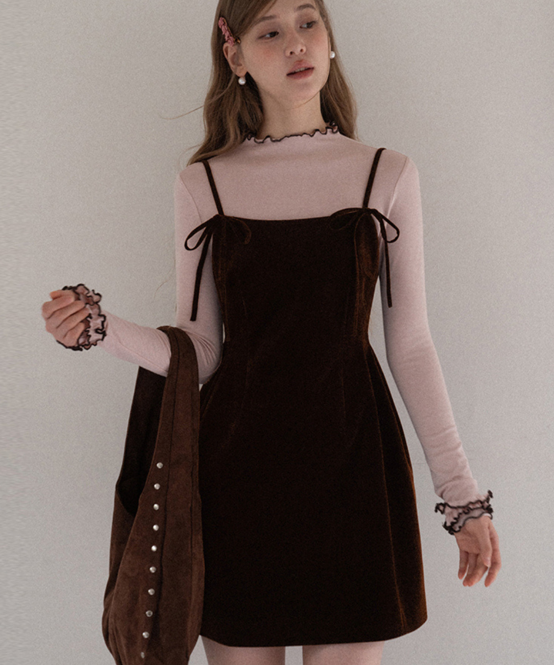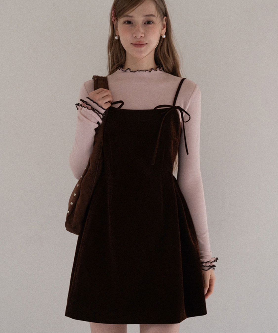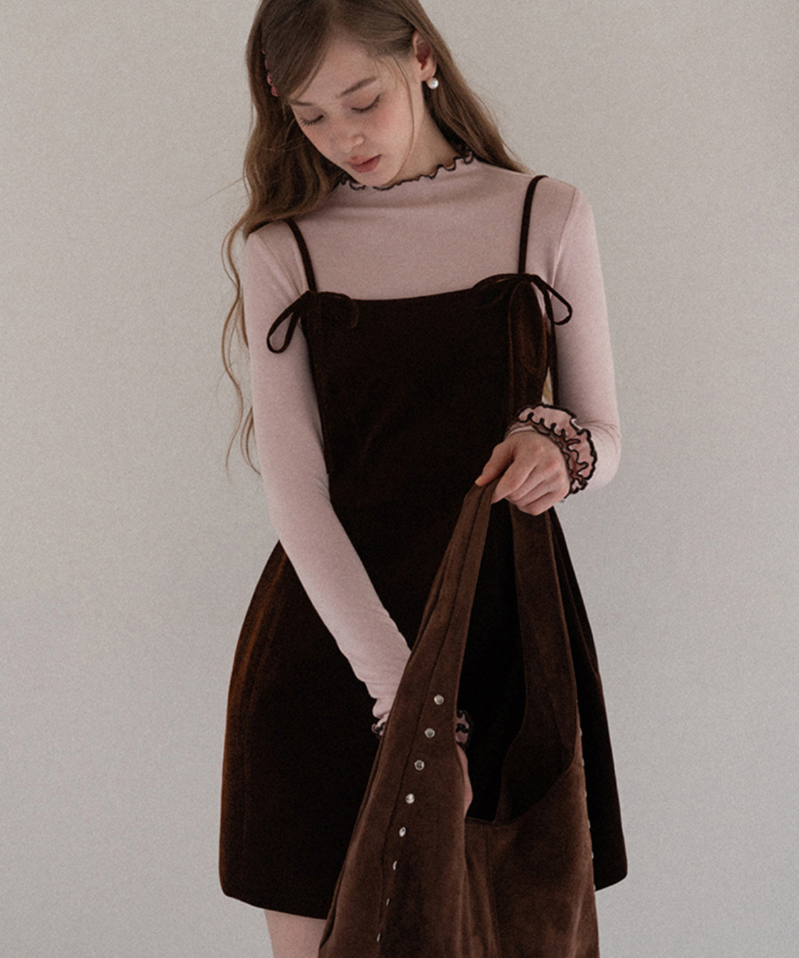 リボンストラップベロアキャミワンピース