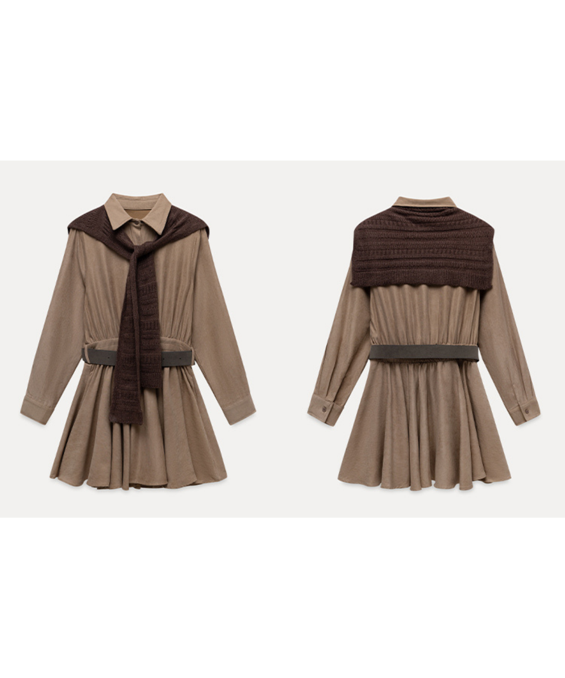 肩掛けニット風デザインシャツワンピース