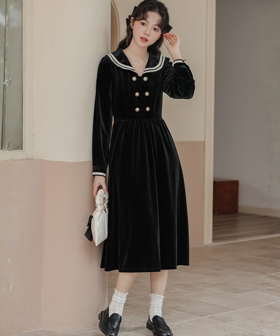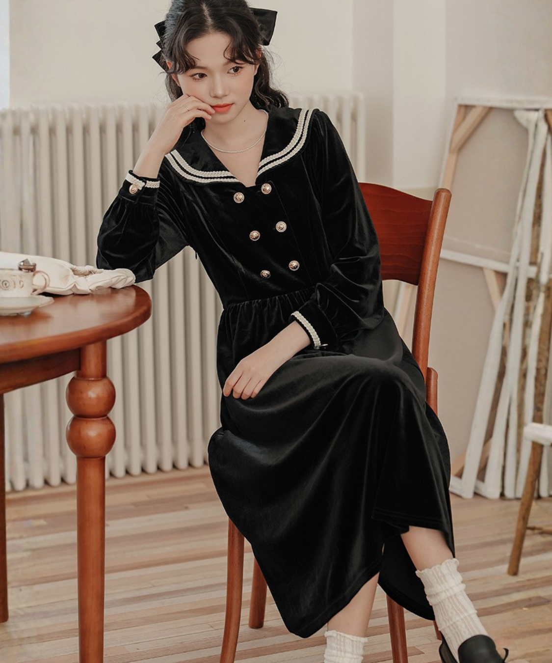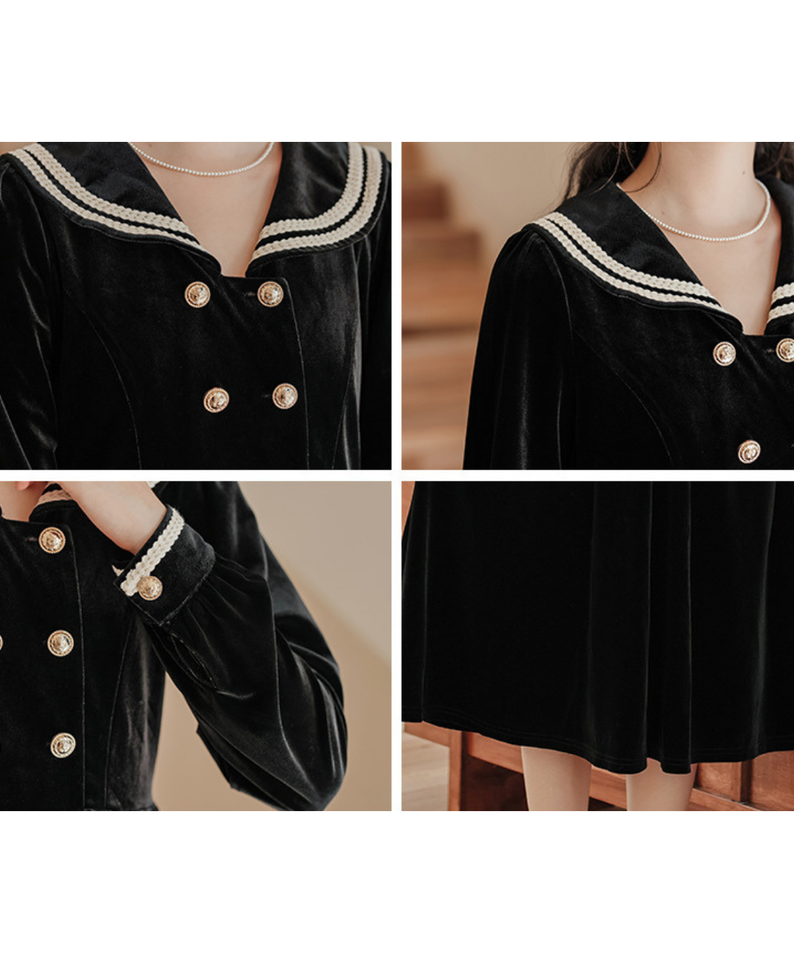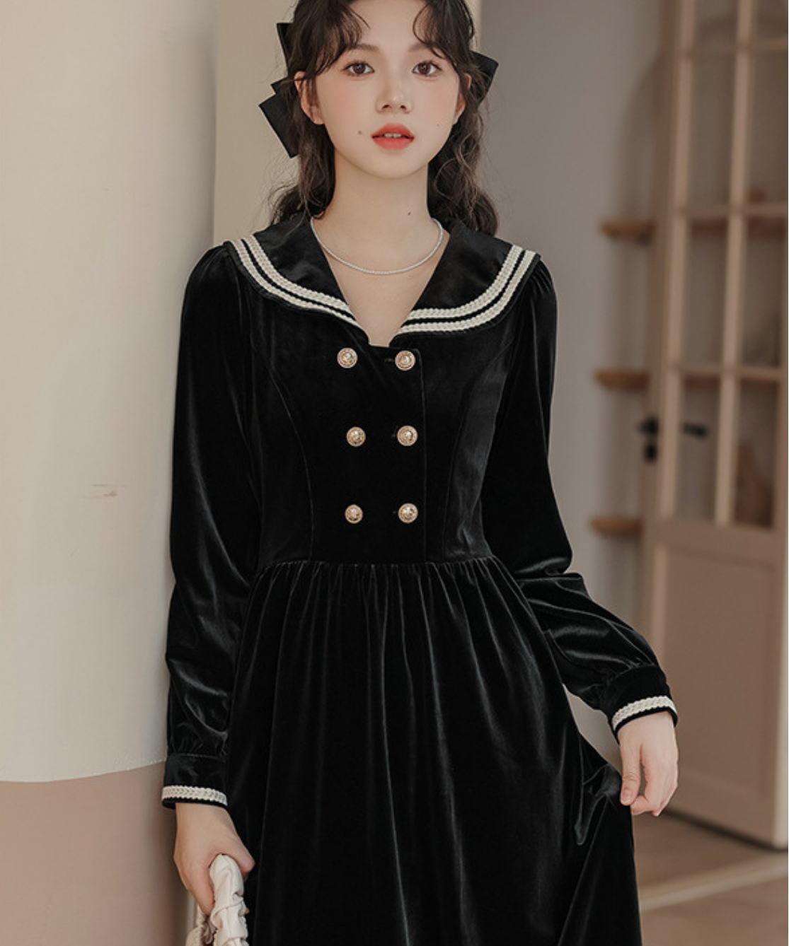 上品な光沢感が魅力のベロア素材を使用した、セーラーカラーワンピースです。