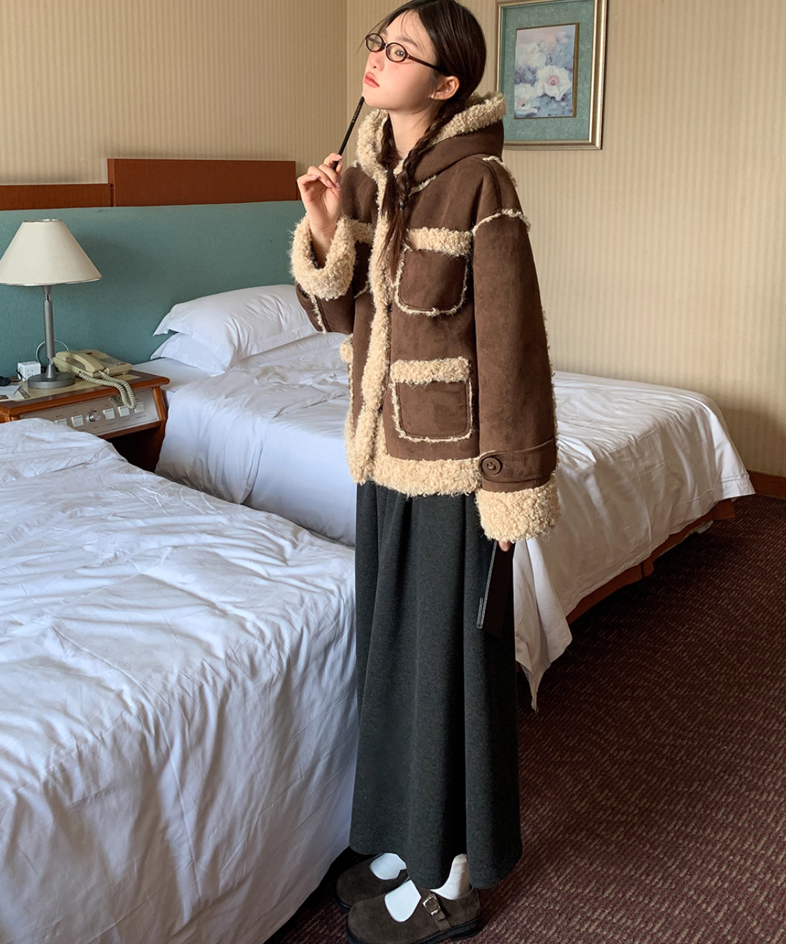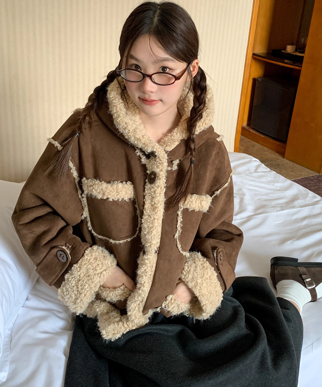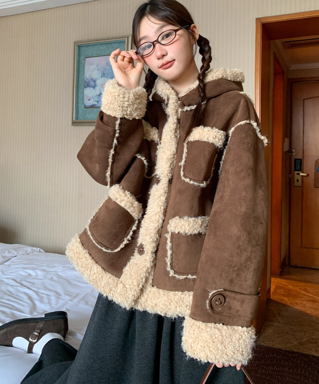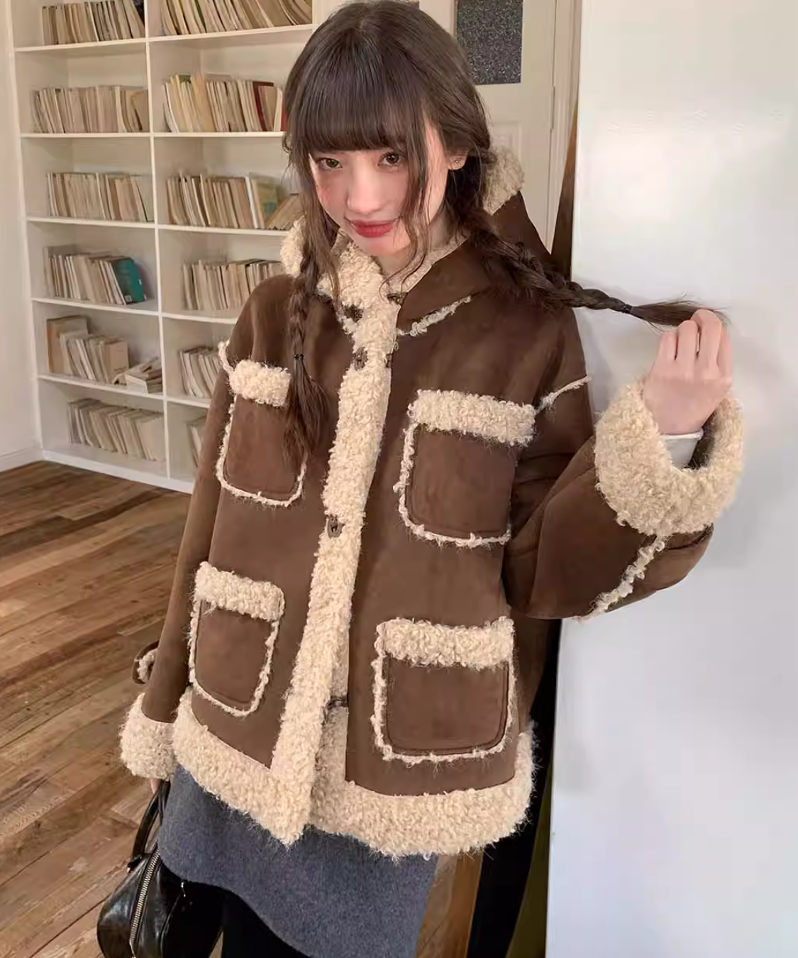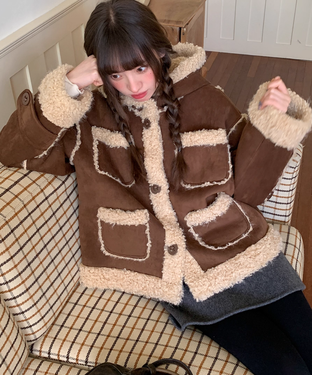 フェイクムートンボアフードジャケット