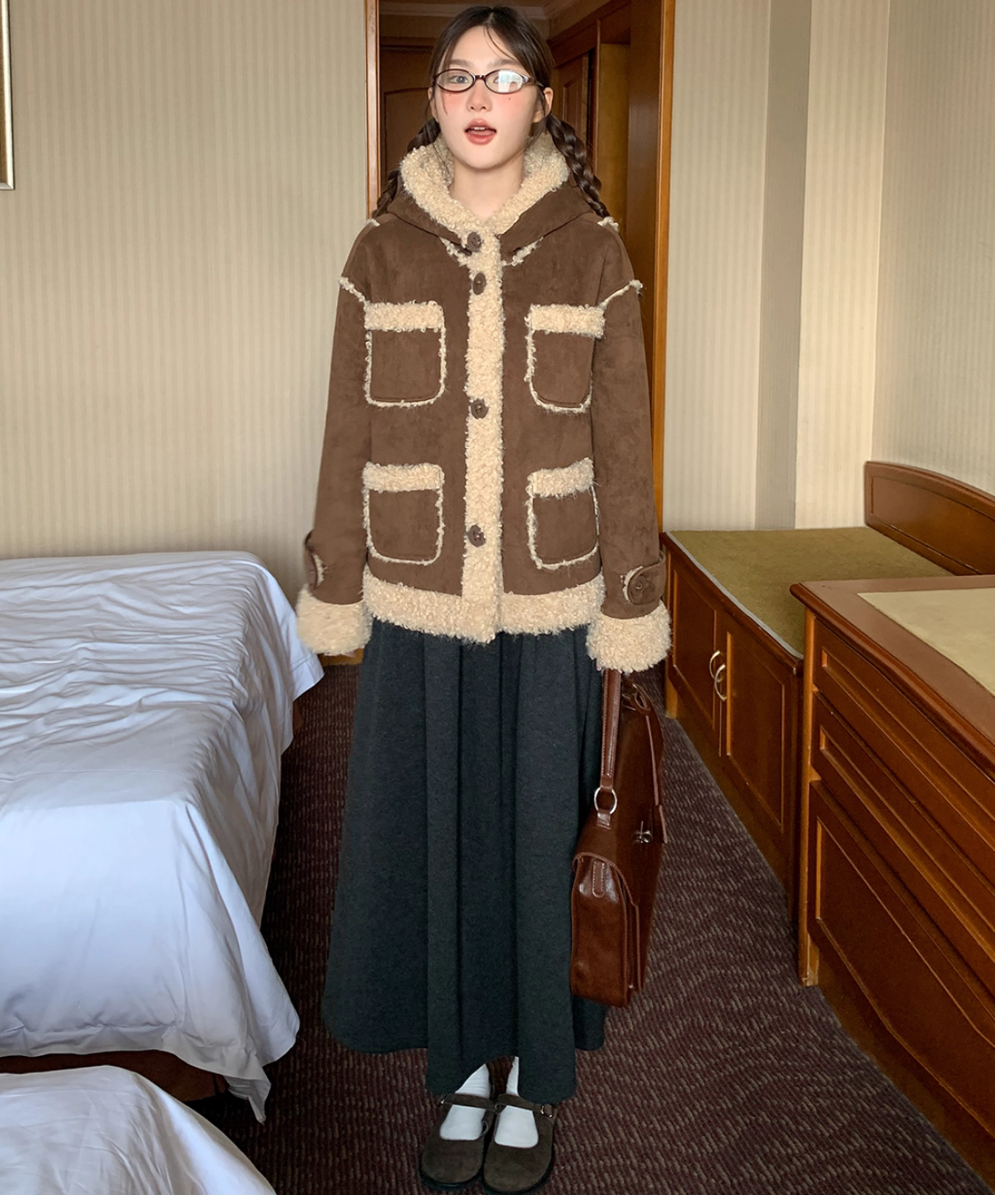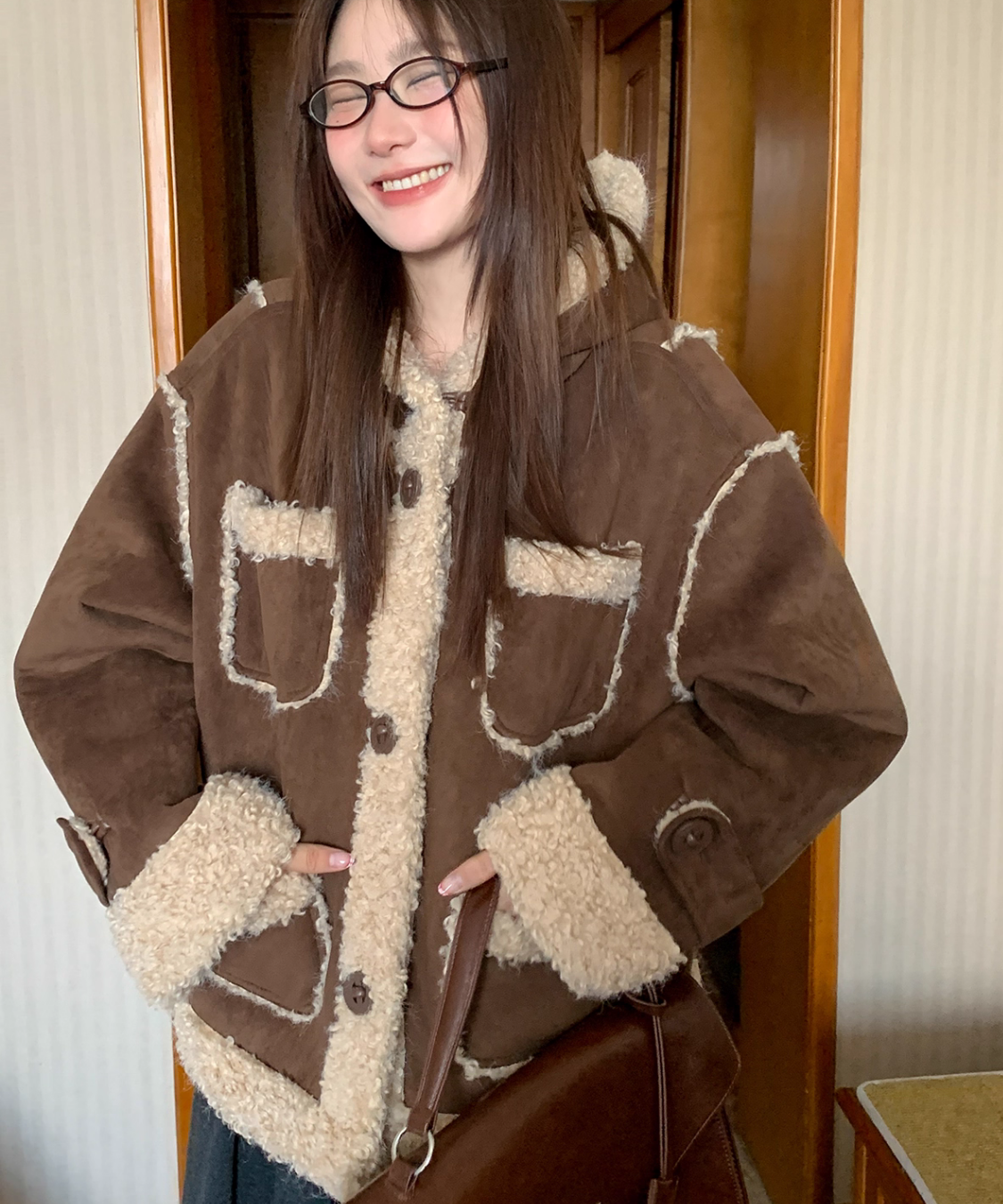 フェイクムートンの素材感がシーズンムードをぐっと高めてくれます♡