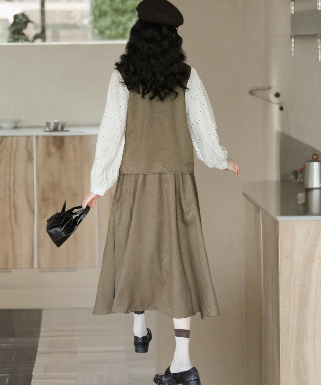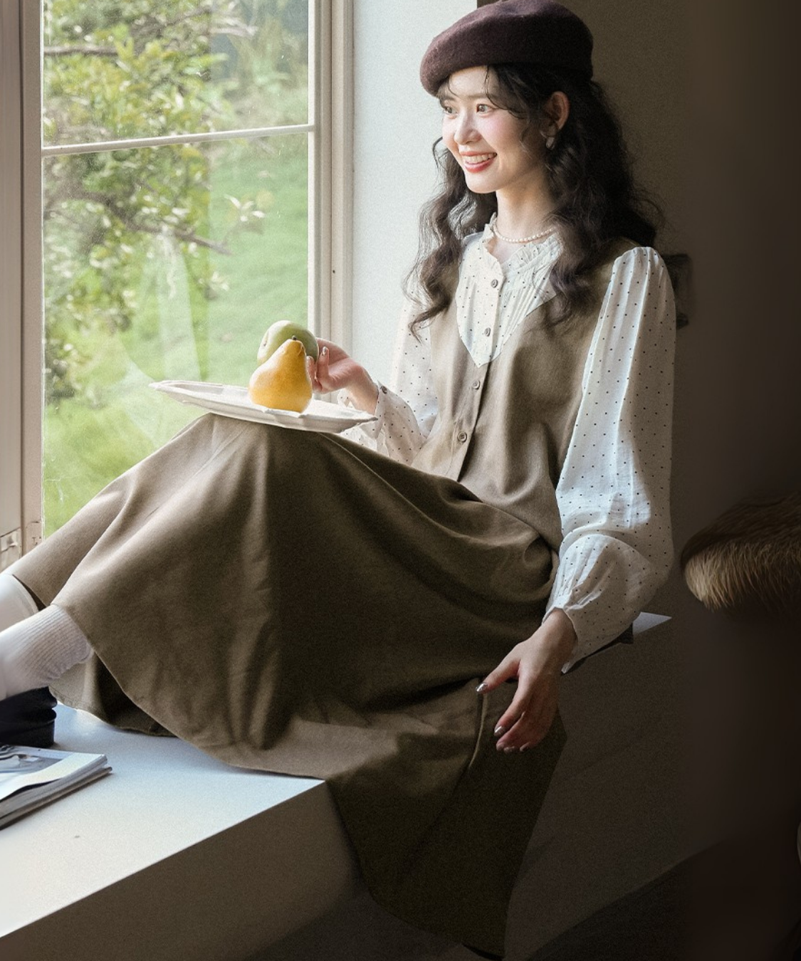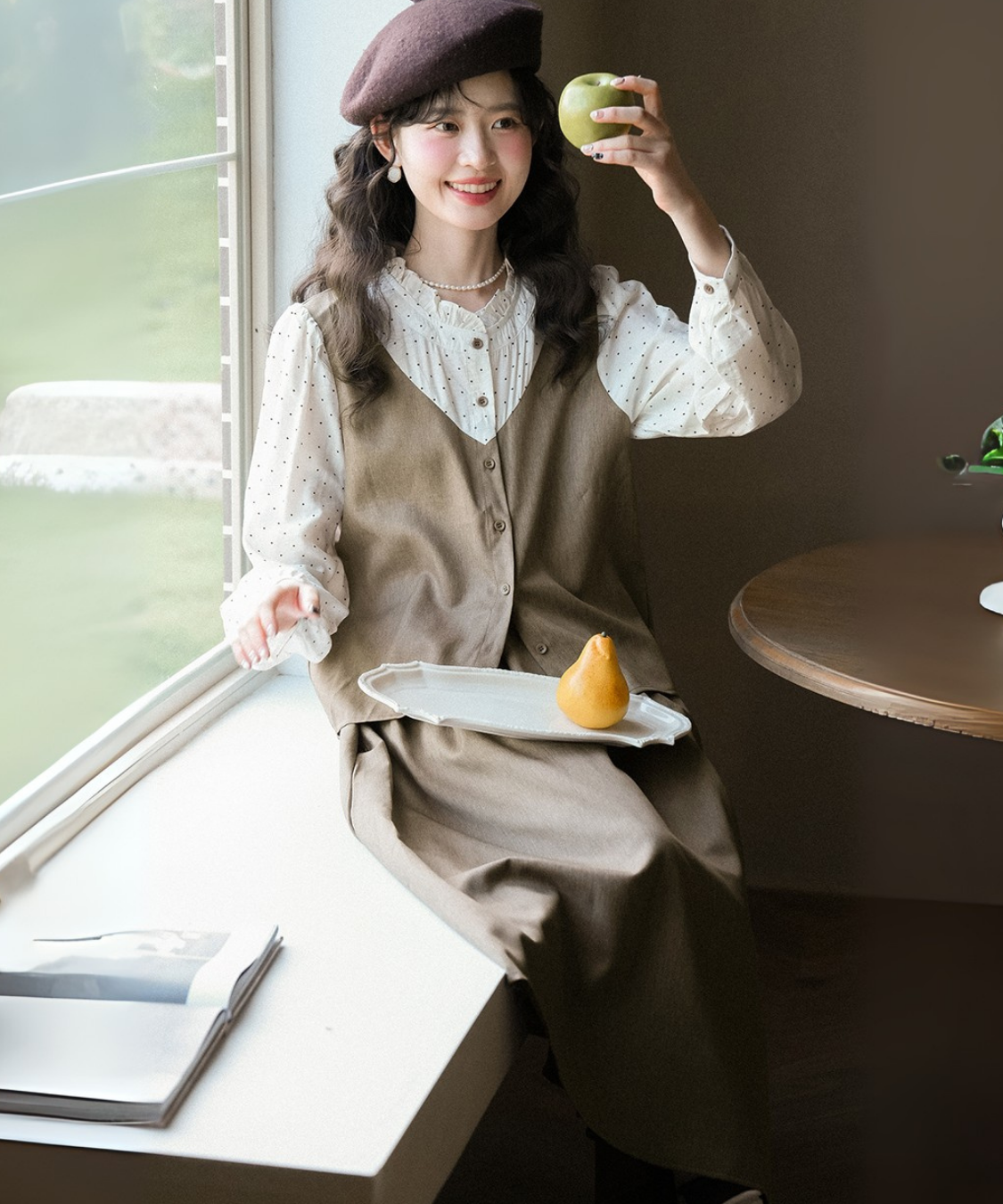 レトロ感があってすごくかわいい♡ベストとブラウスがドッキングだから、着るだけで一気にこなれ見え!