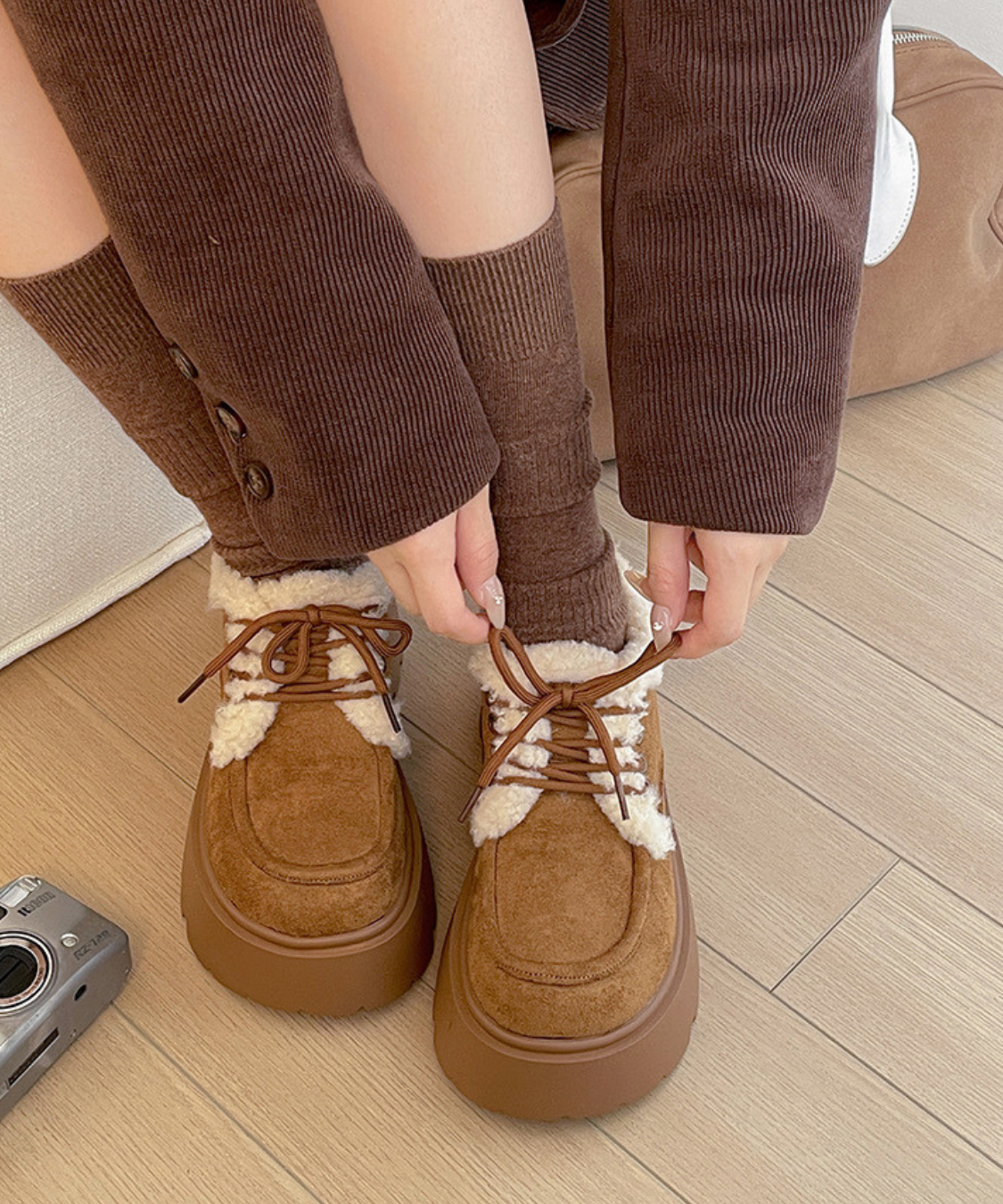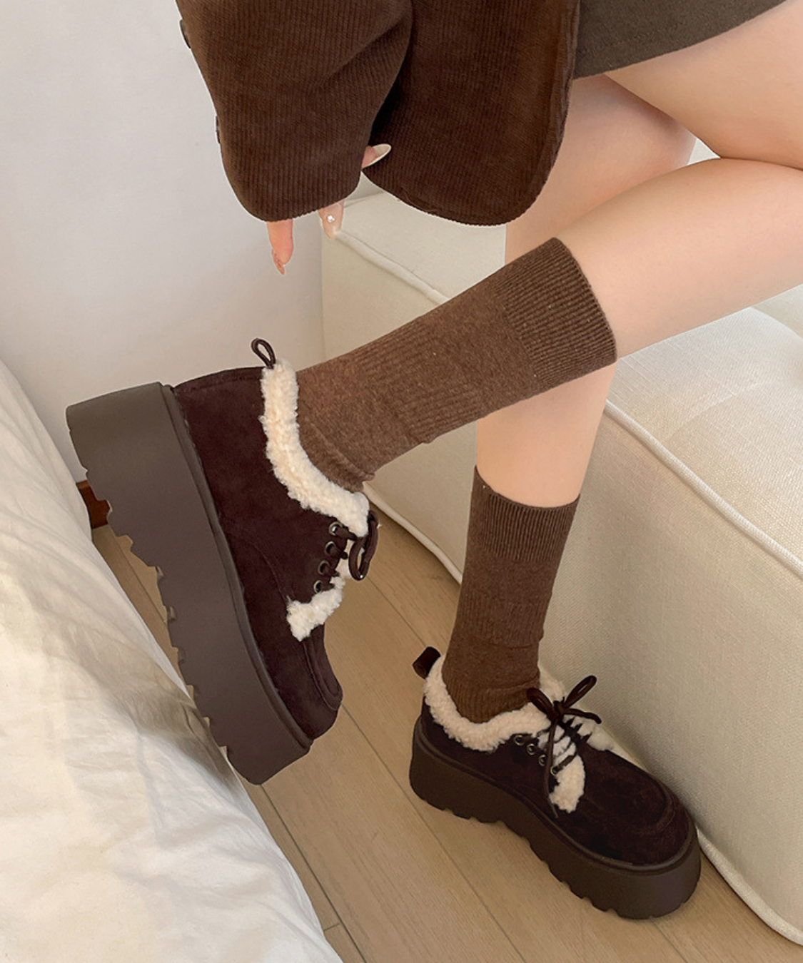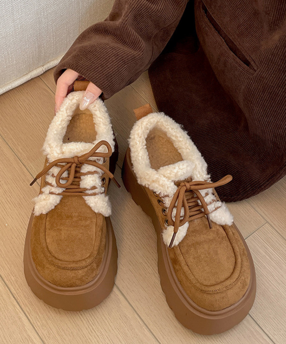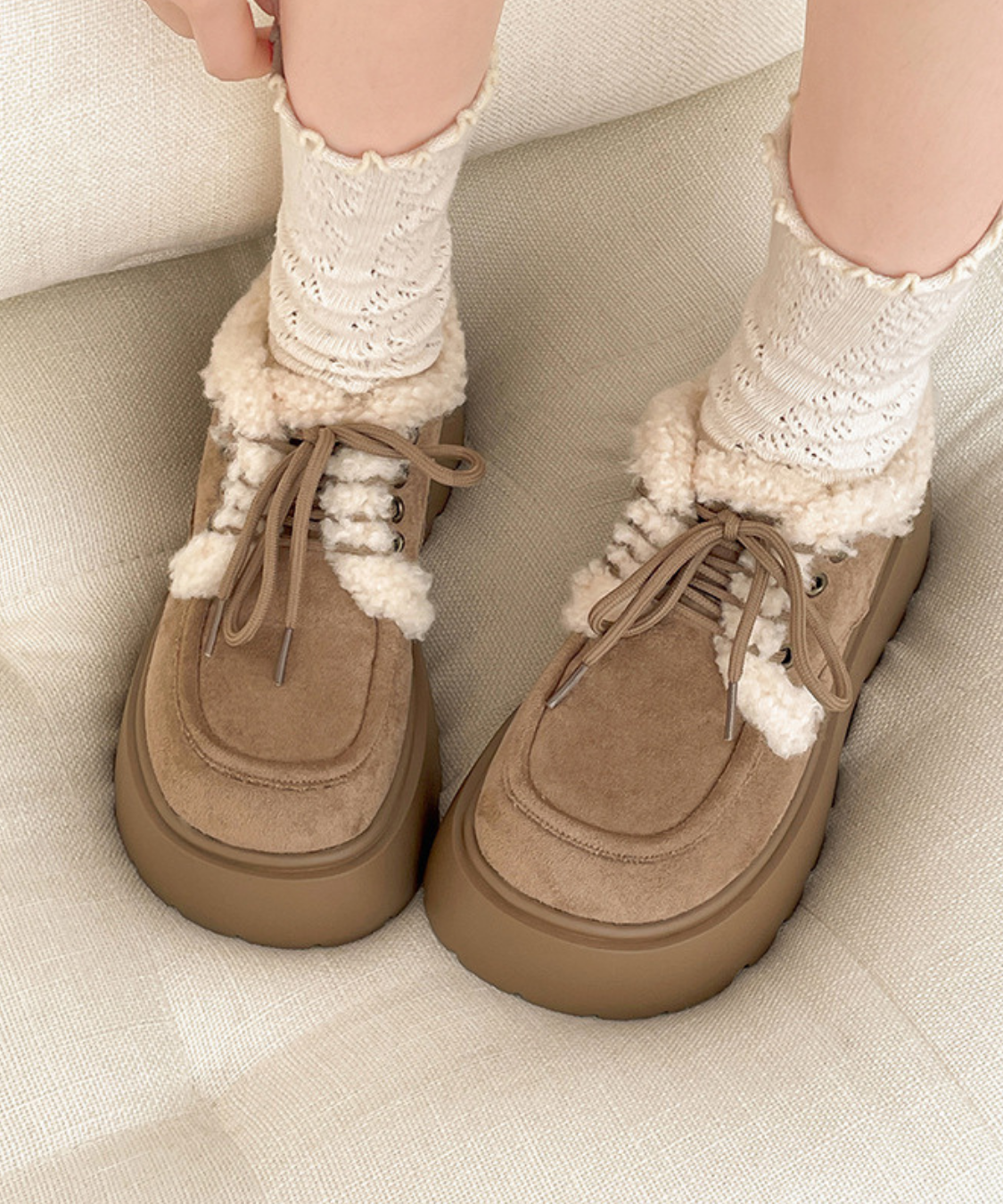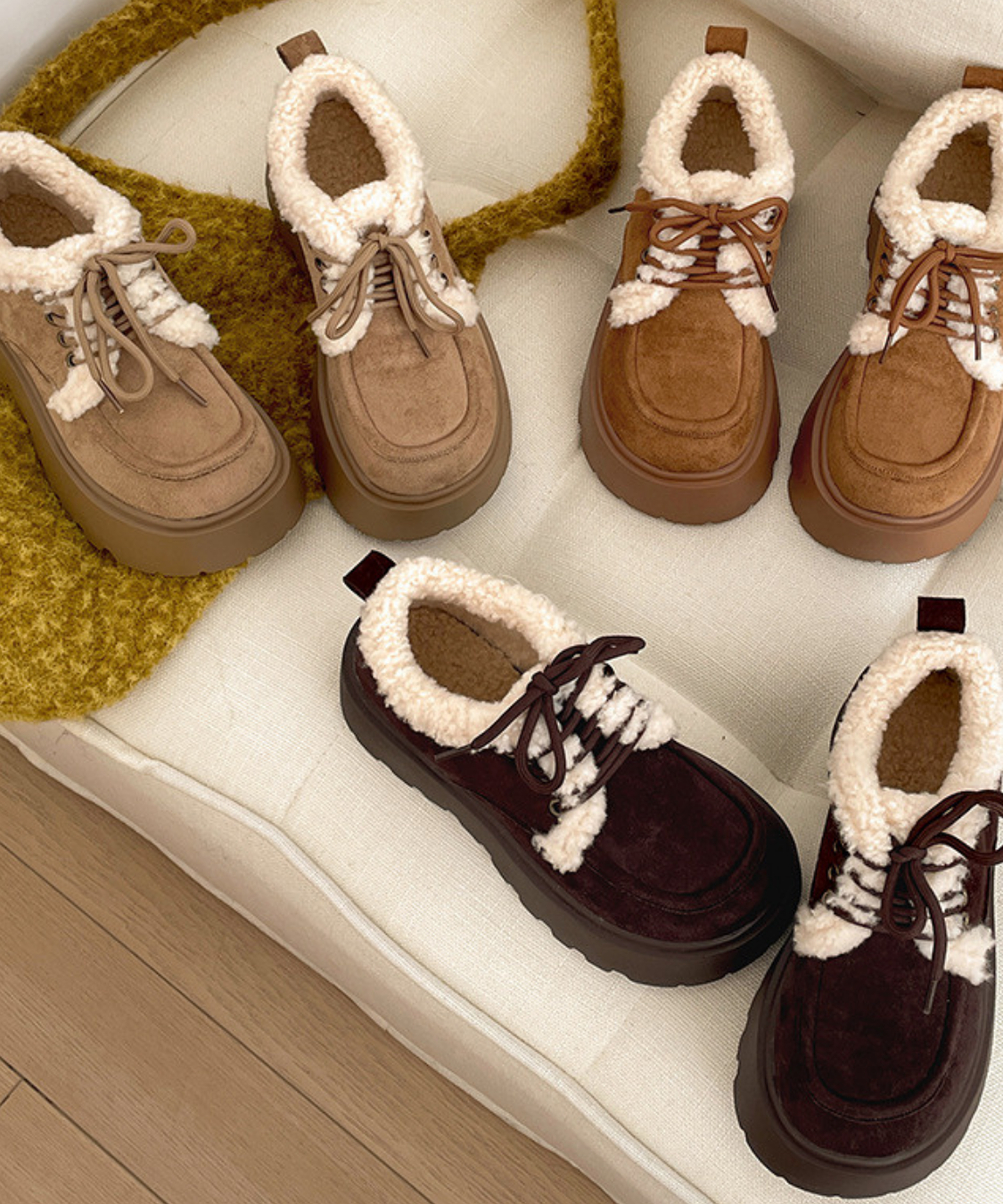 ふわふわのボアが足元を包み込む、見た目にも暖かなスエード調シューズです。