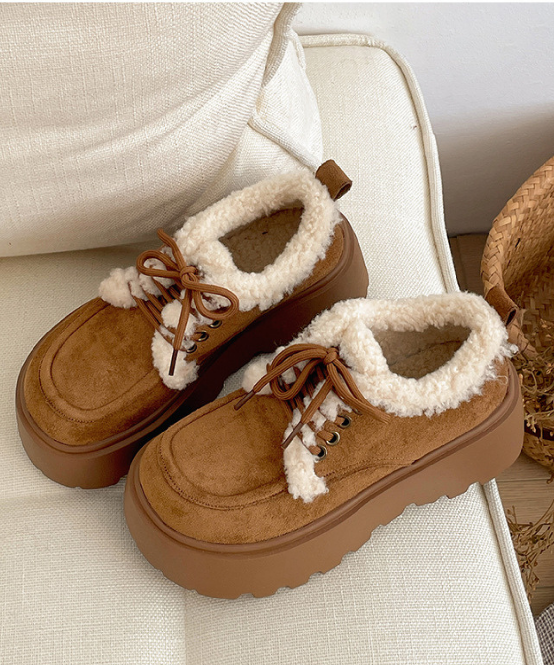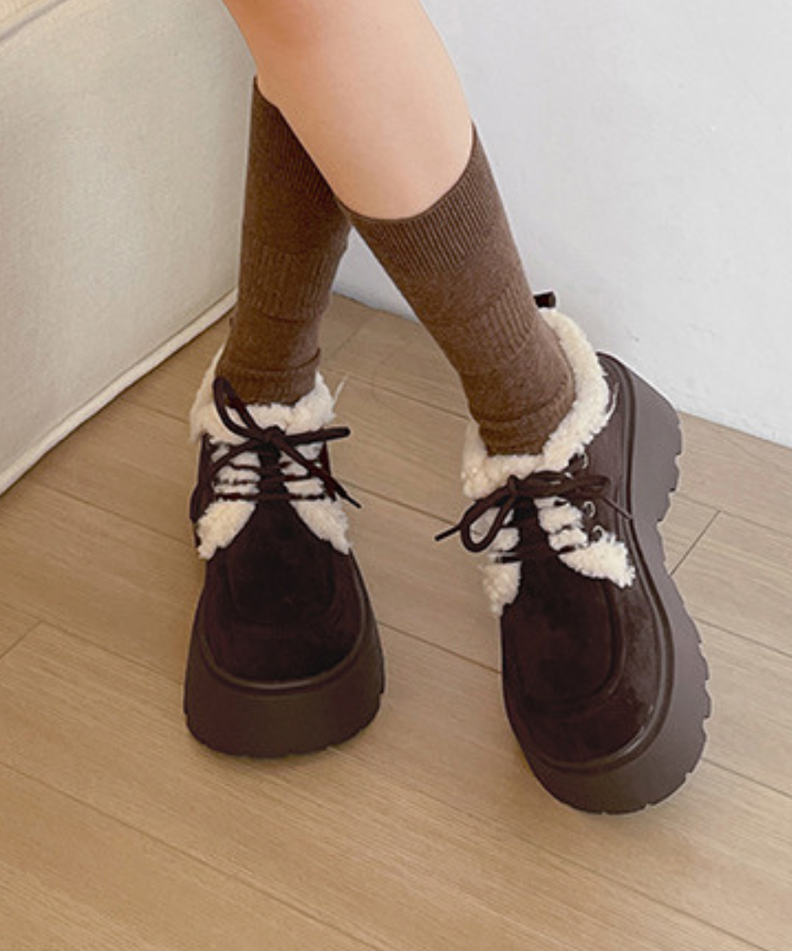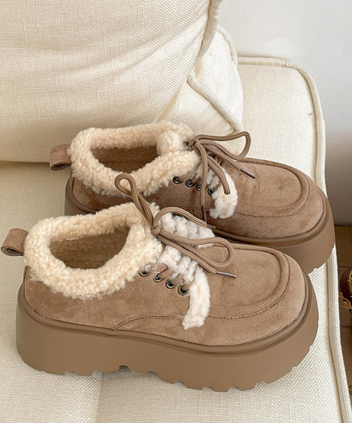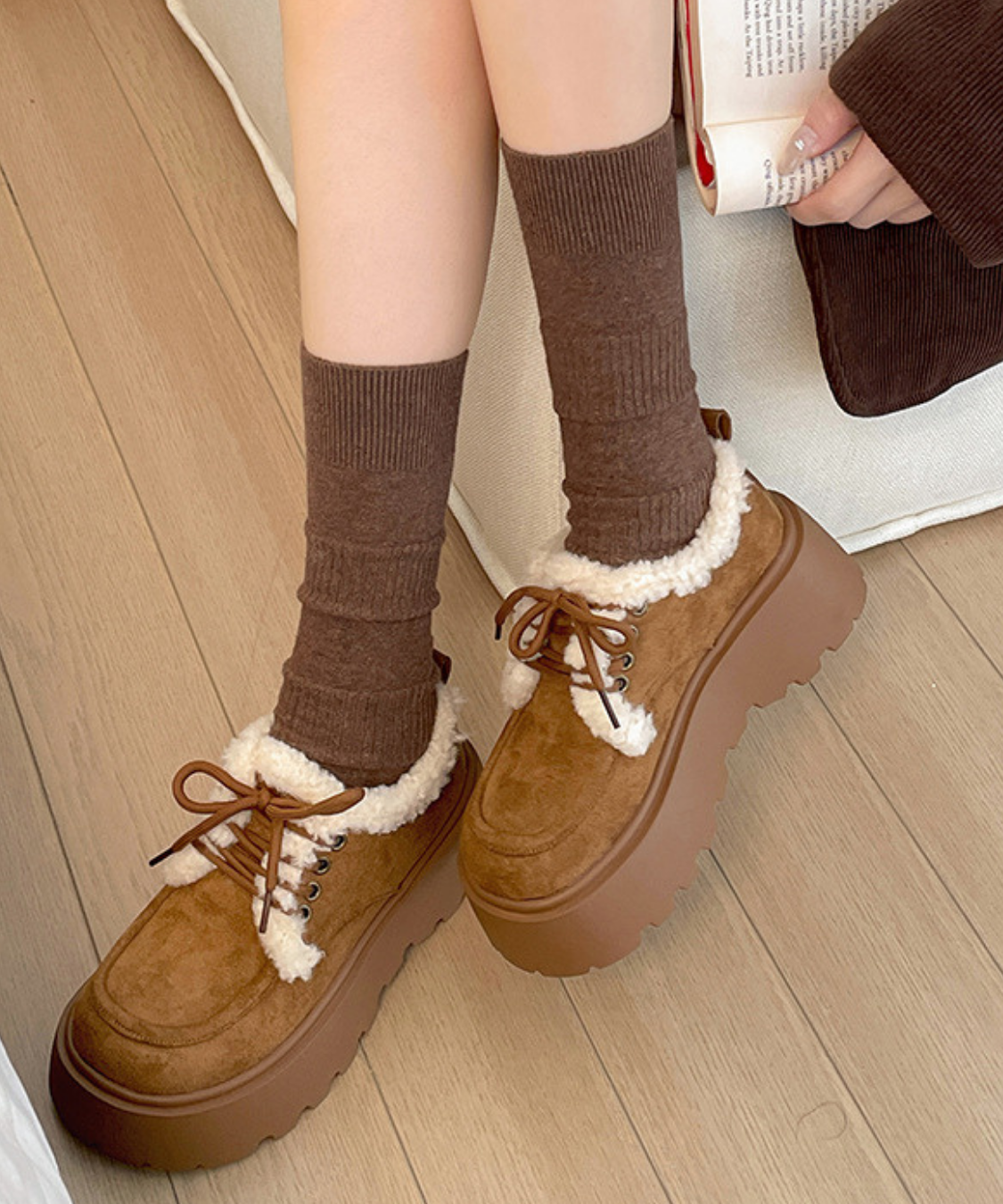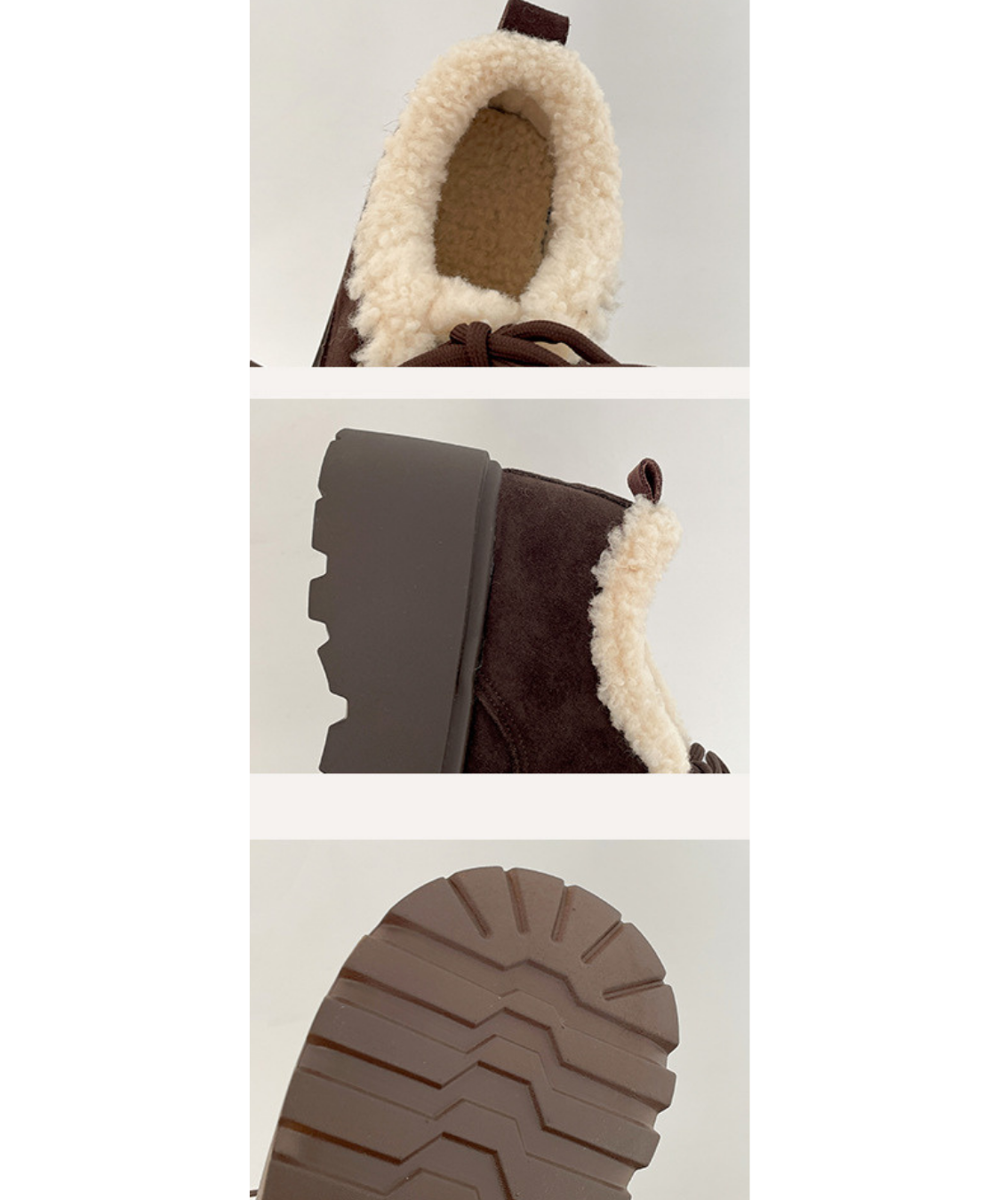 ふわふわのボアが足元を包み込む、見た目にも暖かなスエード調シューズです。