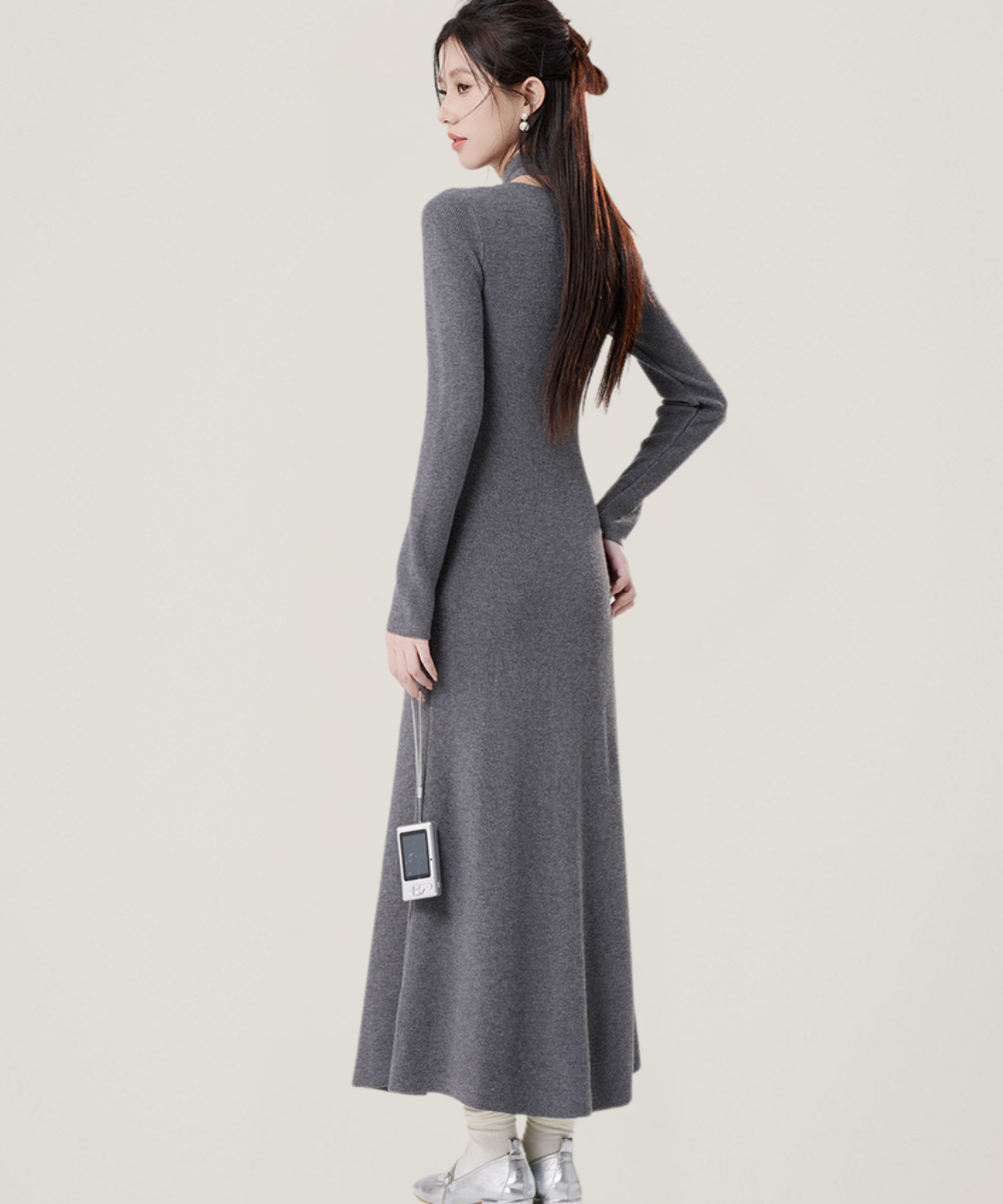ラップ風クロスデザイン長袖ワンピース