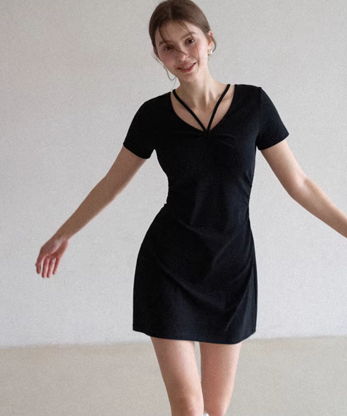 Vネックダブルチョーカーベルトワンピース