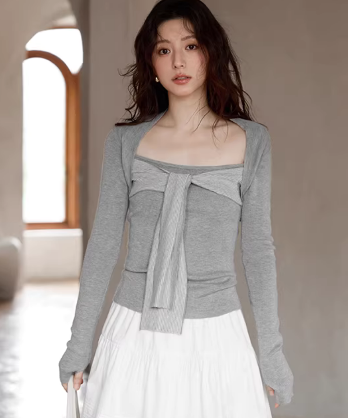 合わせるボトムスは無地などのシンプルなものを選ぶと、上半身に視線が集まりスタイルアップします♡