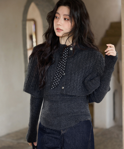 ベロアリボンカーデ+ペプラムキャミ 2点セット