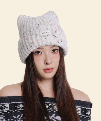 ポンポンリボンワンピース+リブフリルニット 2点セット