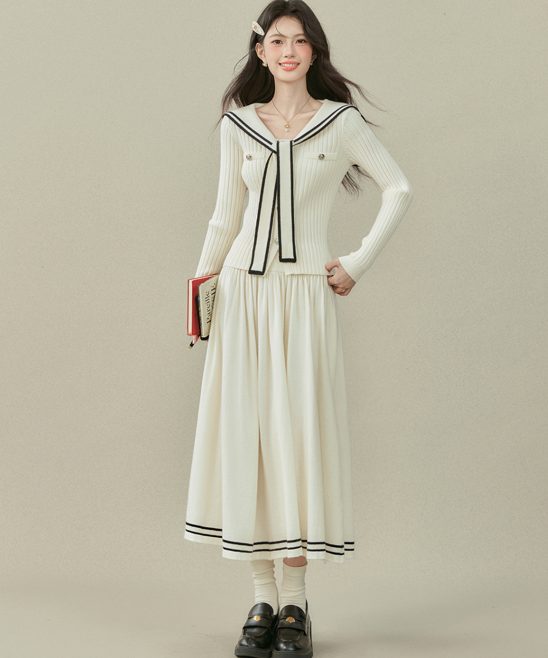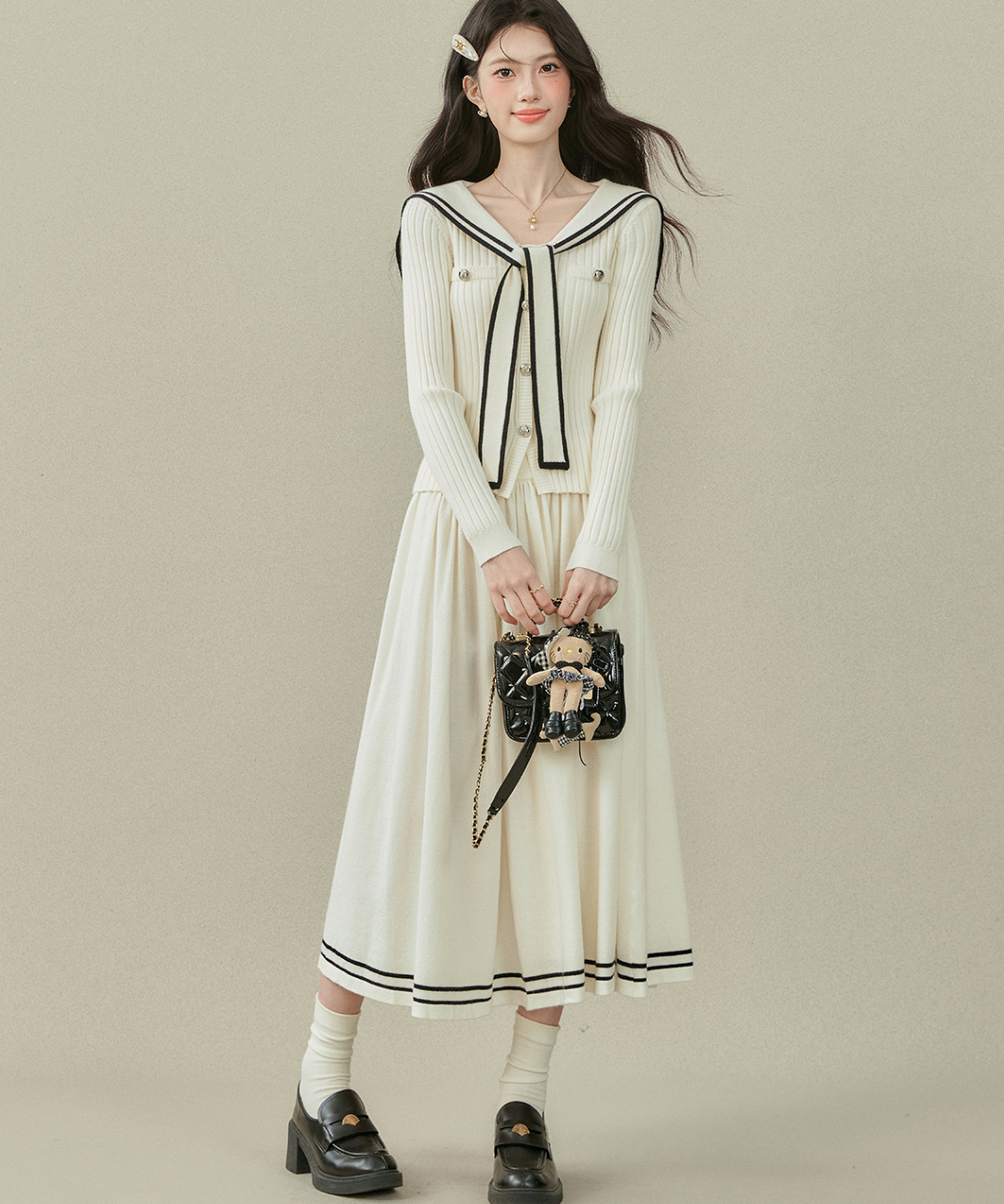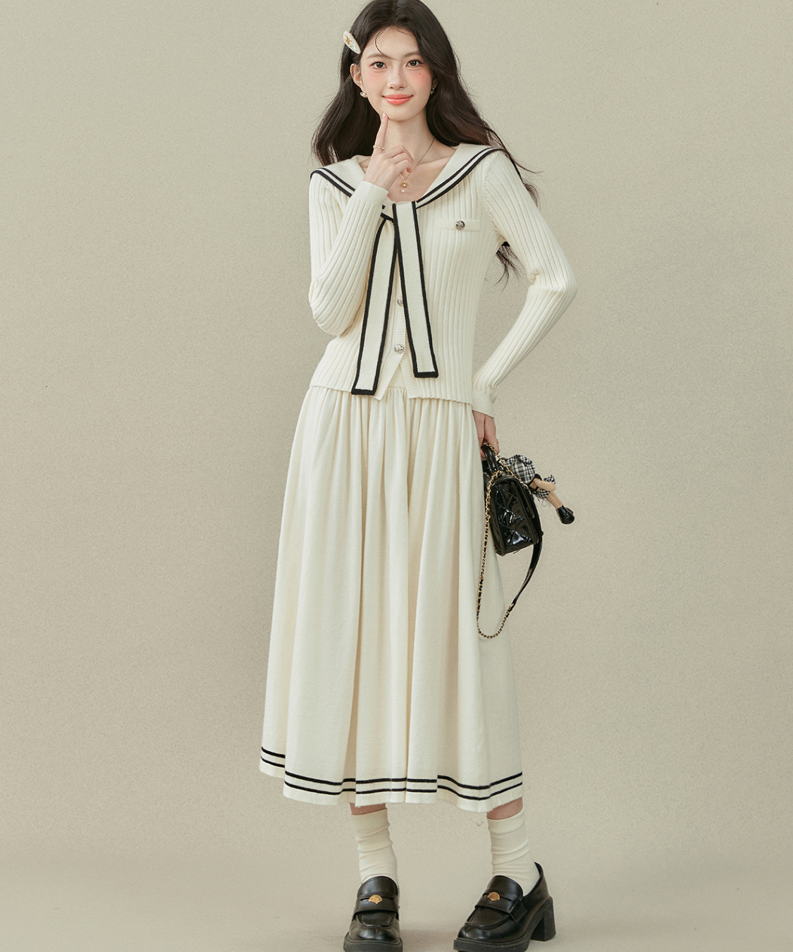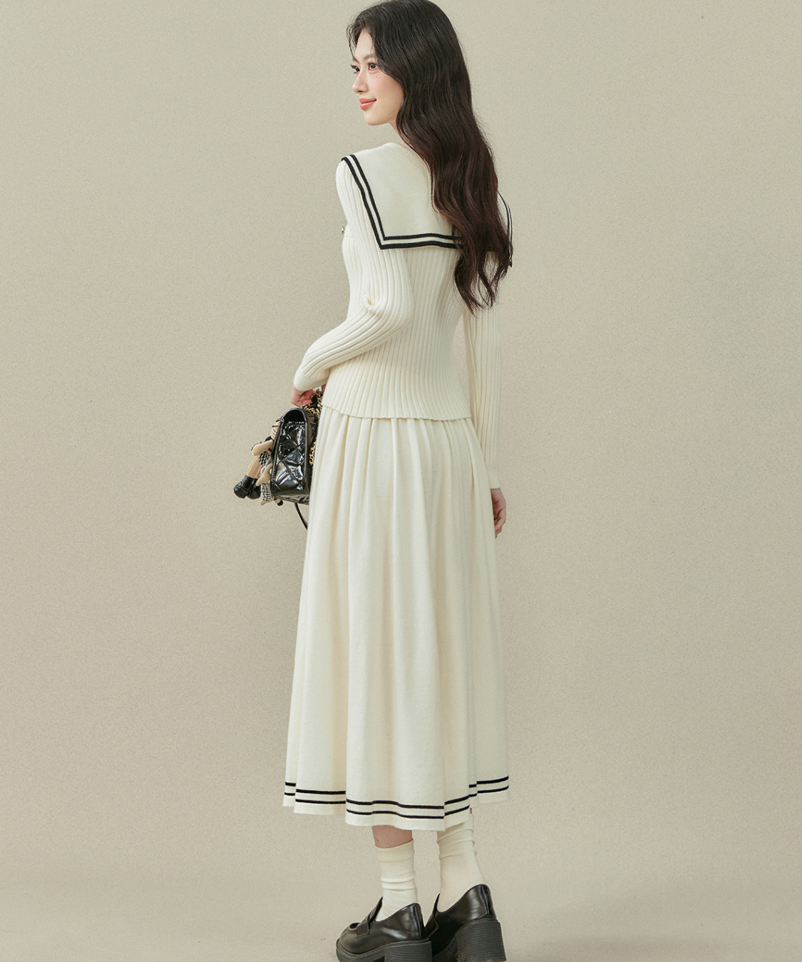 セーラーカラーが上品で、甘すぎない絶妙なバランス◎スカートのWラインもアクセントになっていて、セットで着ると完成度高め♡